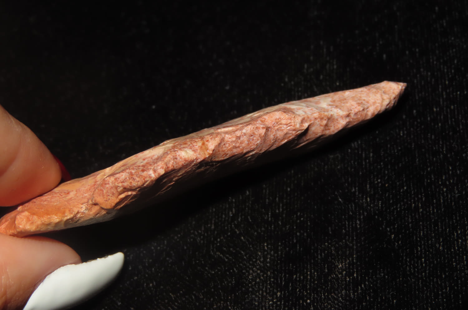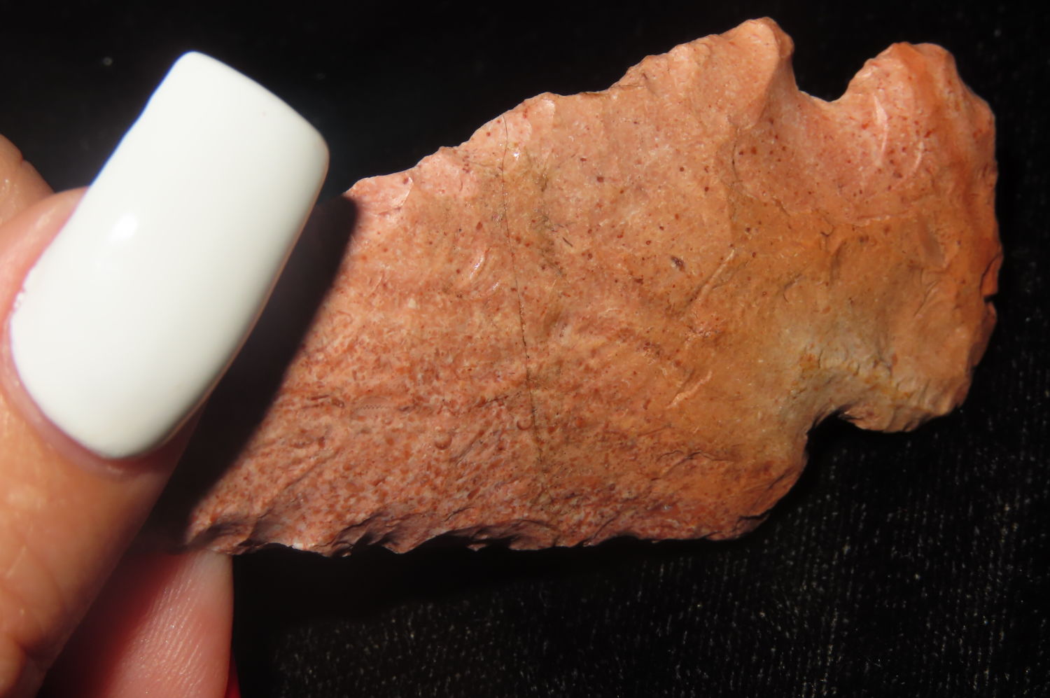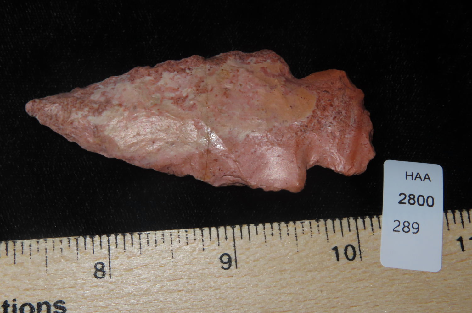 2 7/8″ Very Colorful Hopewell Point Broken and Glued Out of the Steve Mccabe Collection found in Milan Mo, Sullivan Co