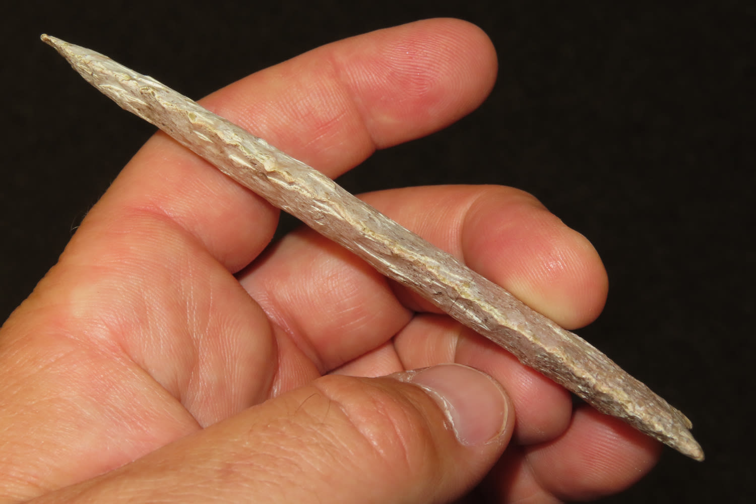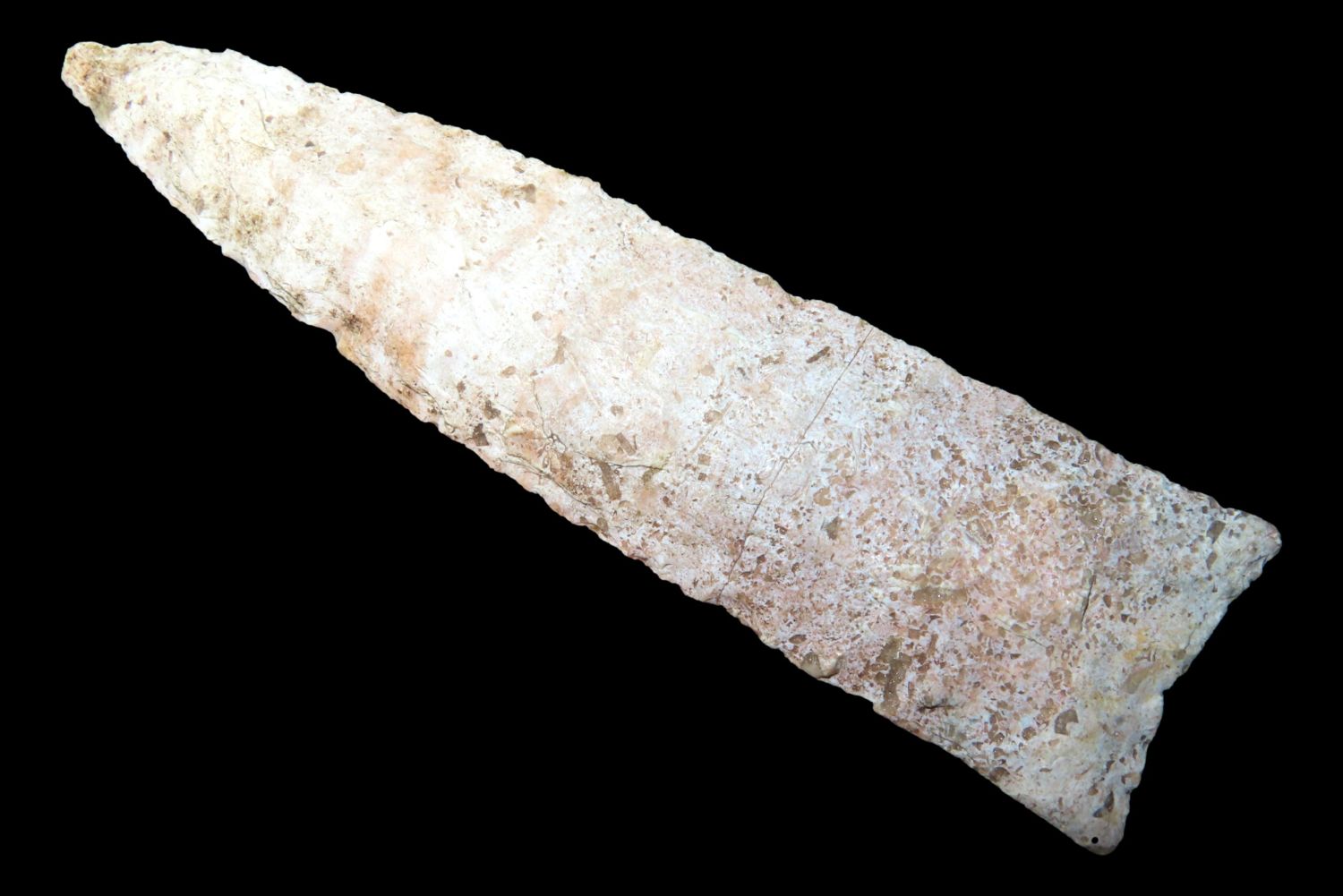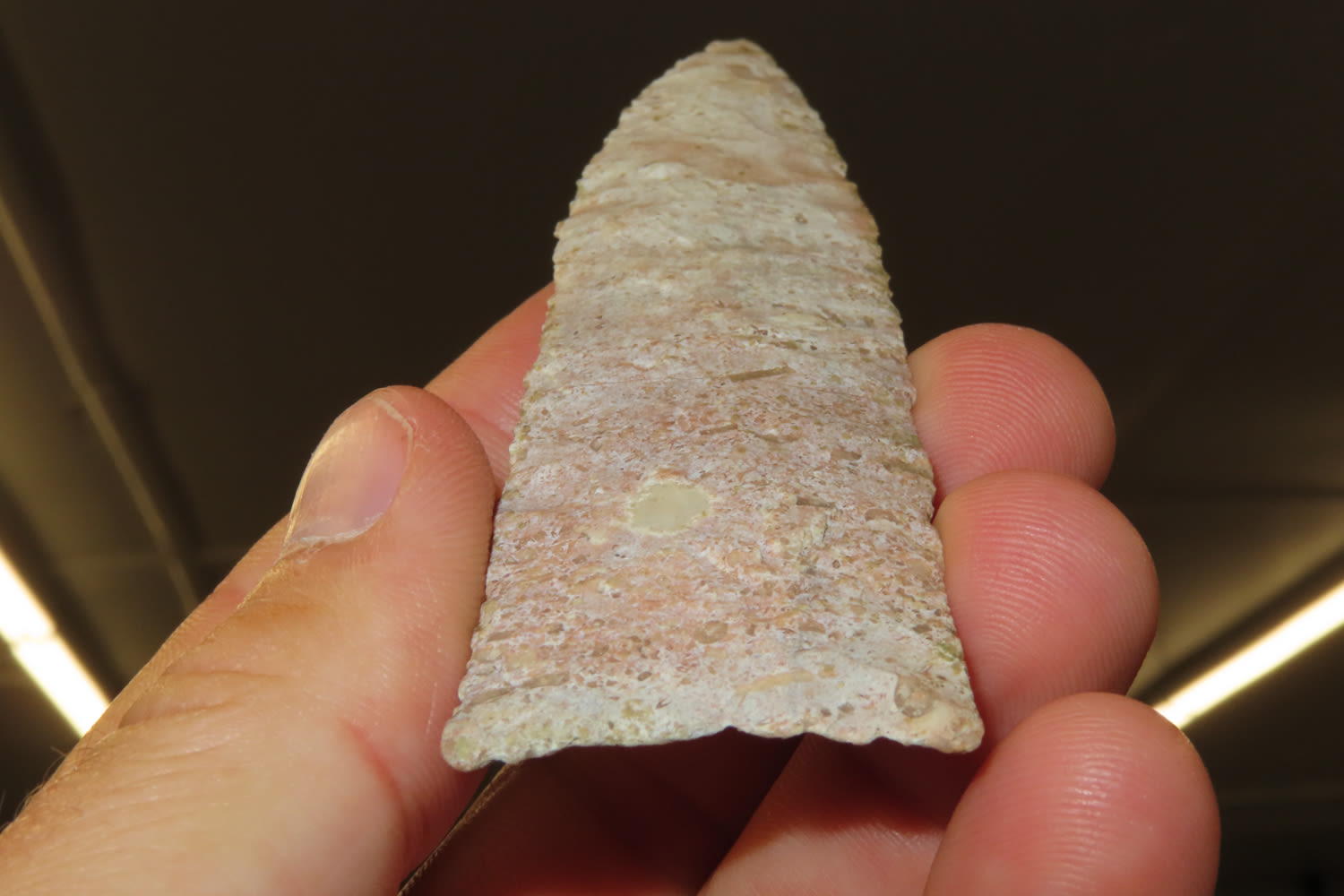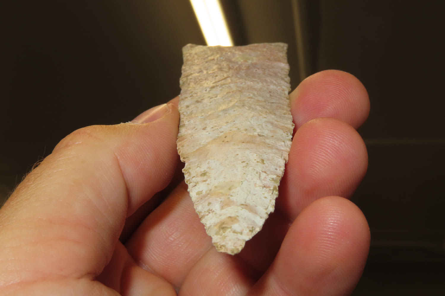 4 1/2″ Dalton. 2x COA’s Motley/Keele. From the Steve McCabe Collection, Milan, Sullivan County Missouri. Made of Creek Stained Burlington Chert