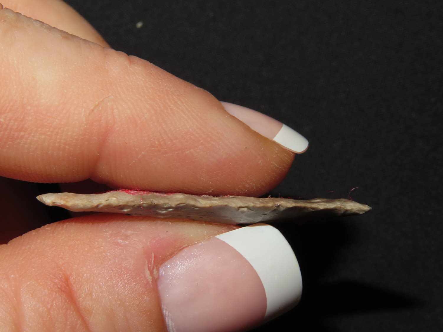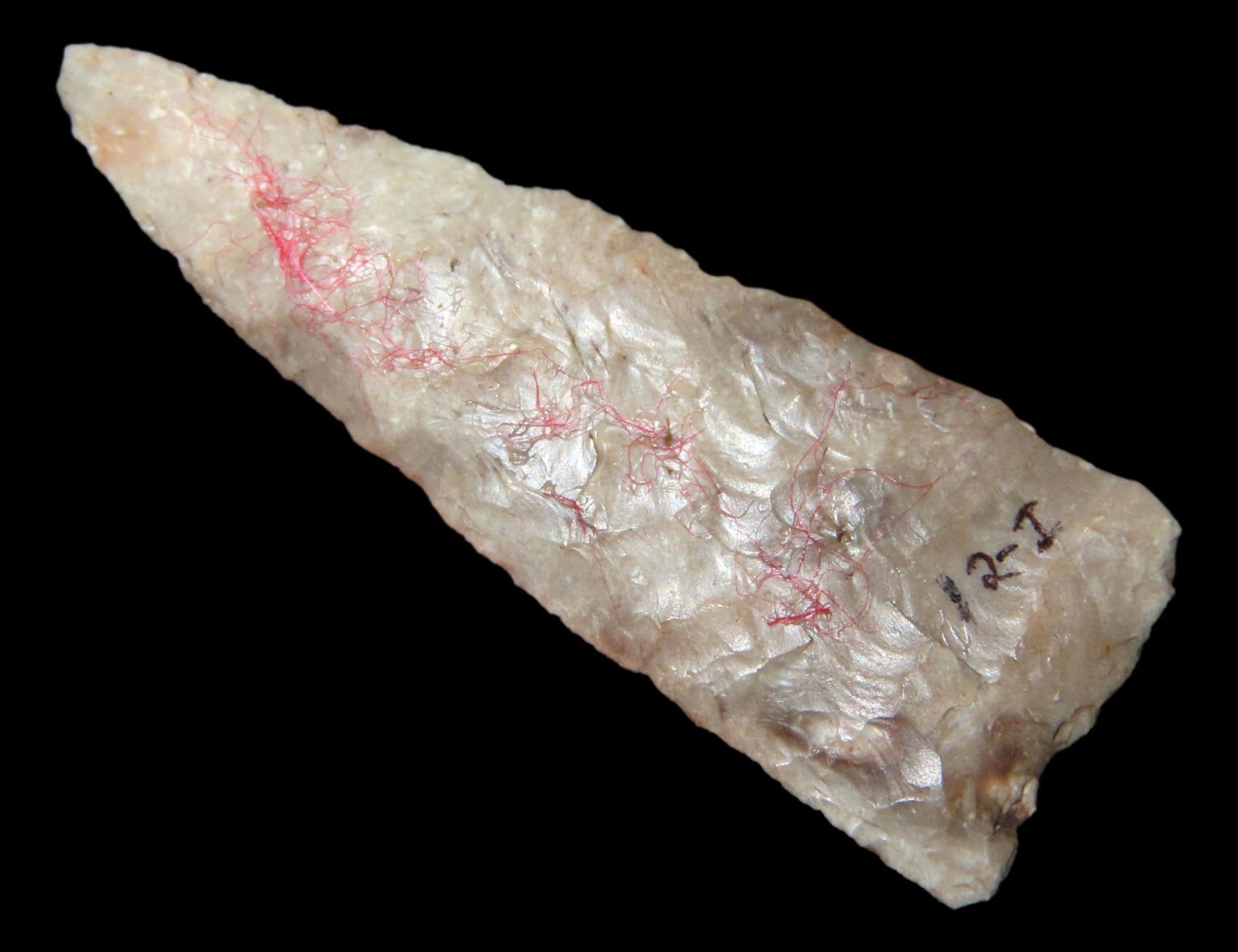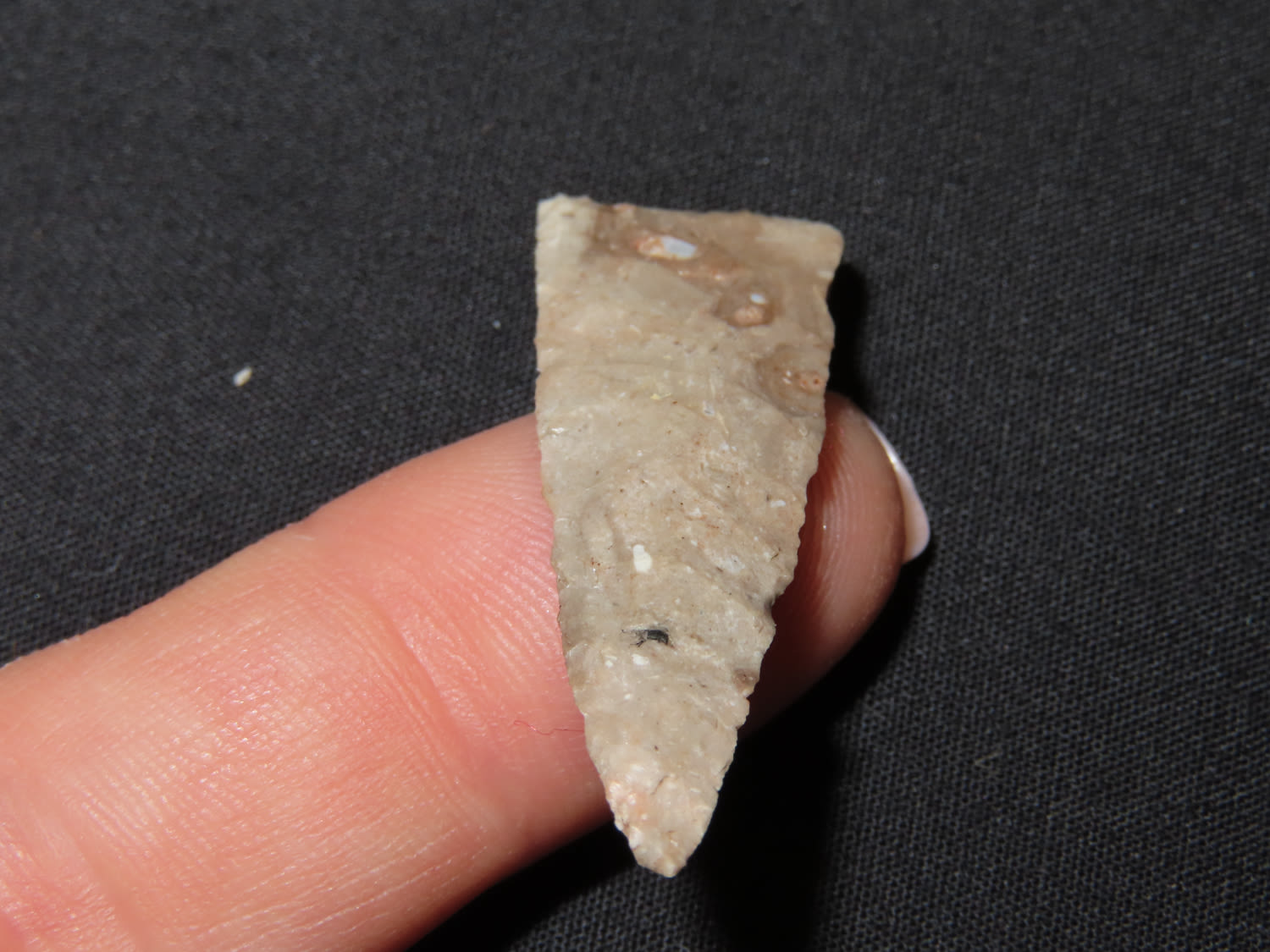 1 7/16″ x 1/2″ Madison. Material: Grey chert. From the Steve McCabe Collection, Milan, Sullivan County Missouri. COA: Ryan E. Keele