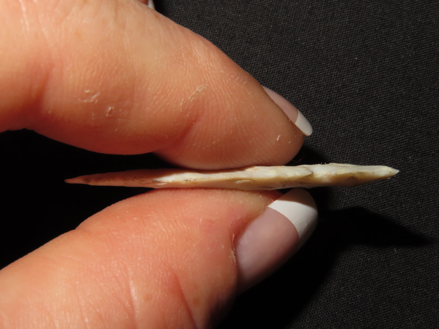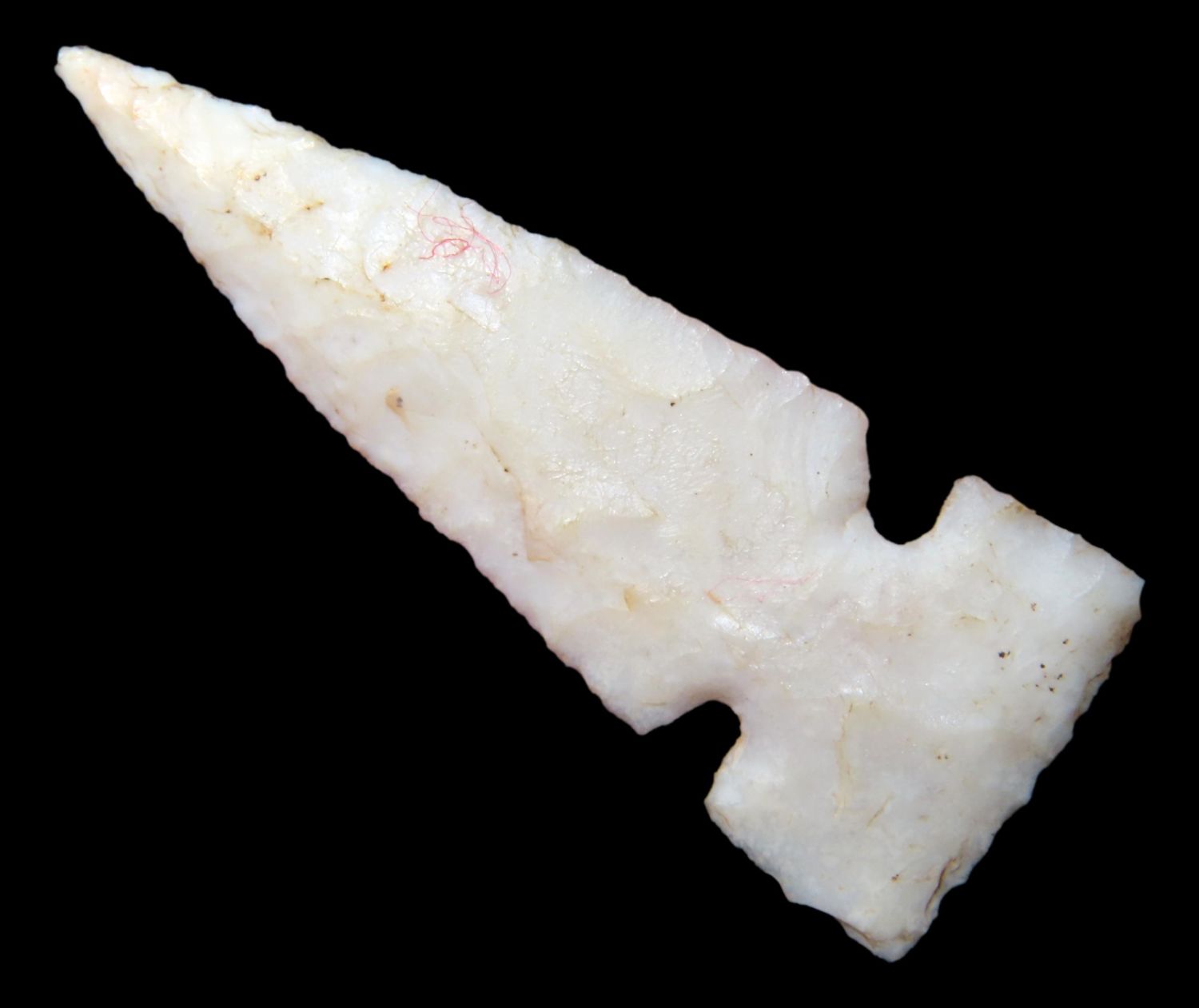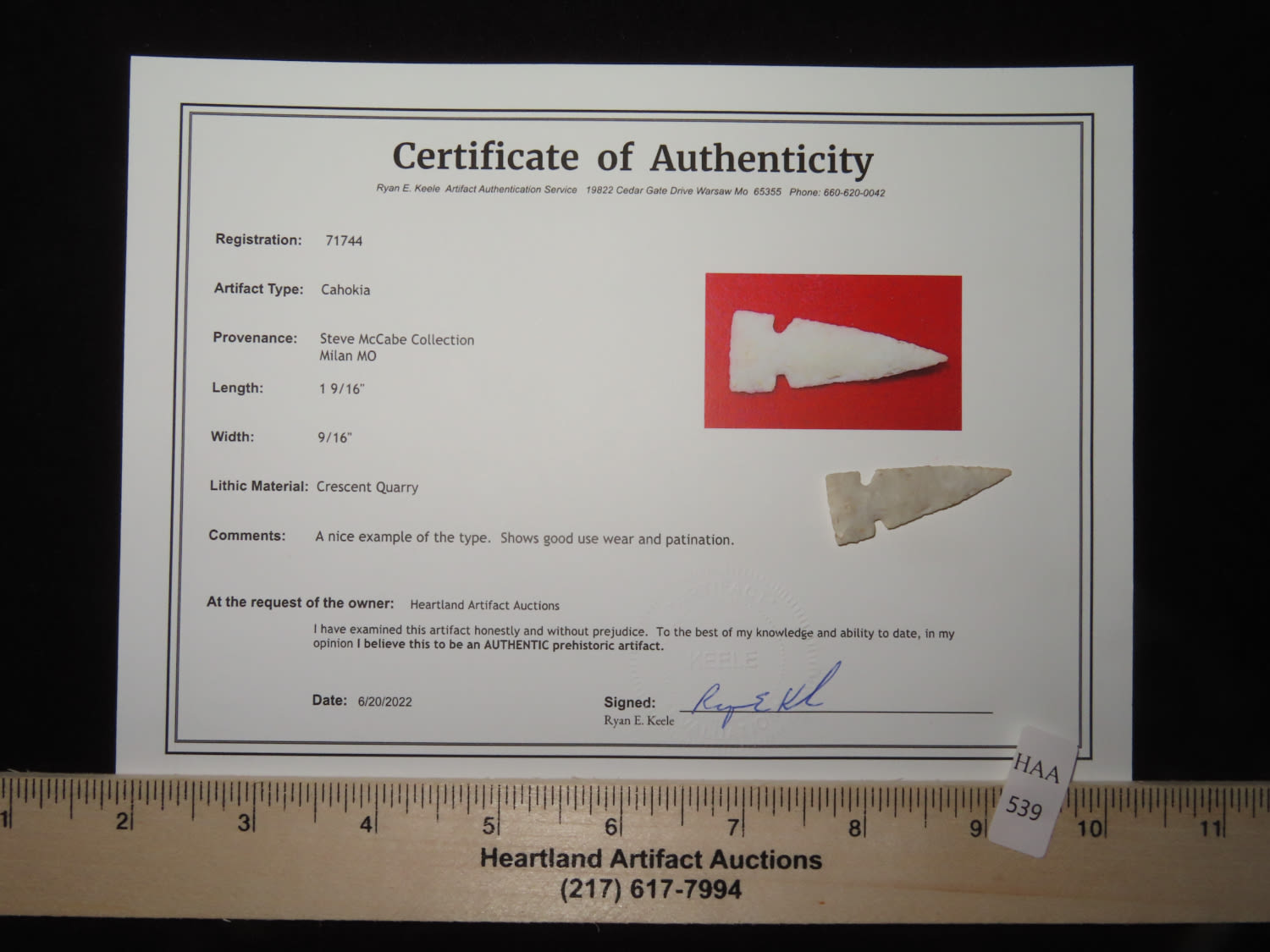 1 9/16″ x 9/16″ Cahokia. Material: Crescent Quarry. From the Steve McCabe Collection, Milan, Sullivan County Missouri. COA: Ryan E. Keele