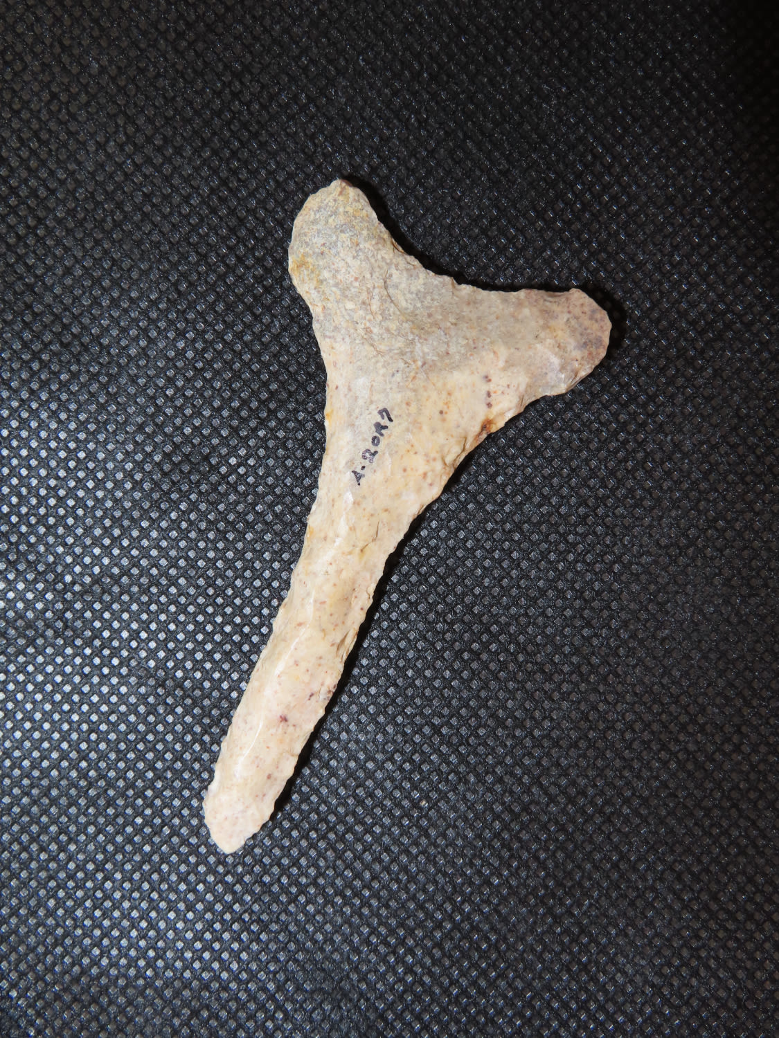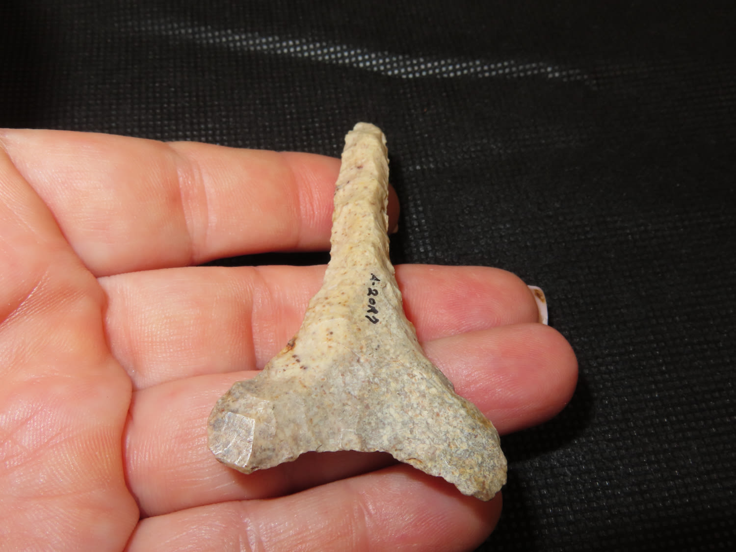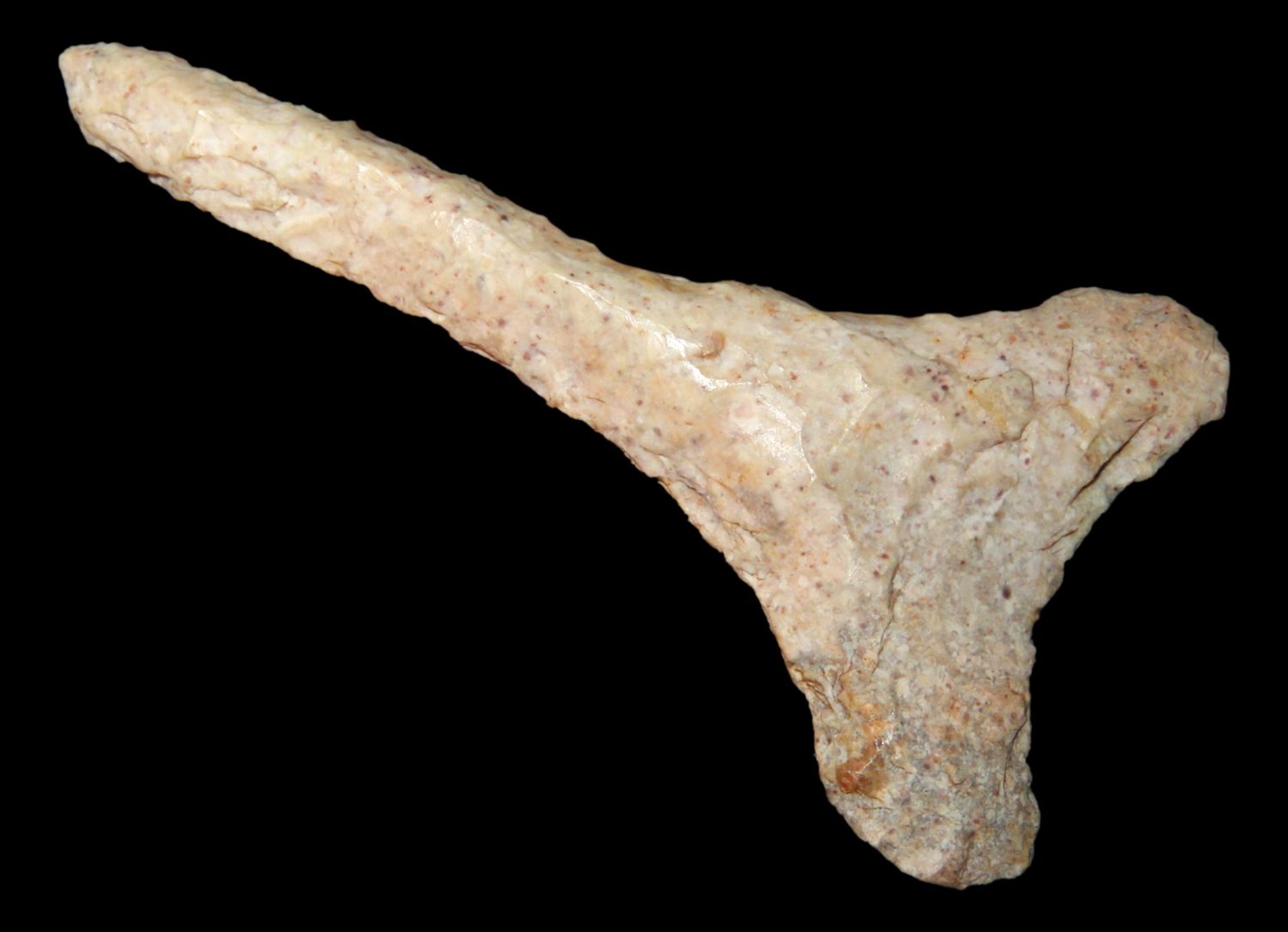 2 13/16″ x 1 7/16″ Archaic Drill. Carlos Black COA. Found in Sullivan County Missouri From the Steve McCabe Collection, Milan, Sullivan County Missouri. Made Fossil Chert