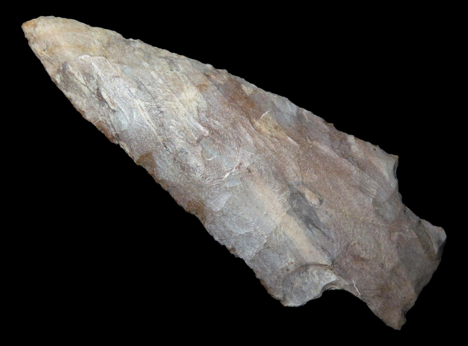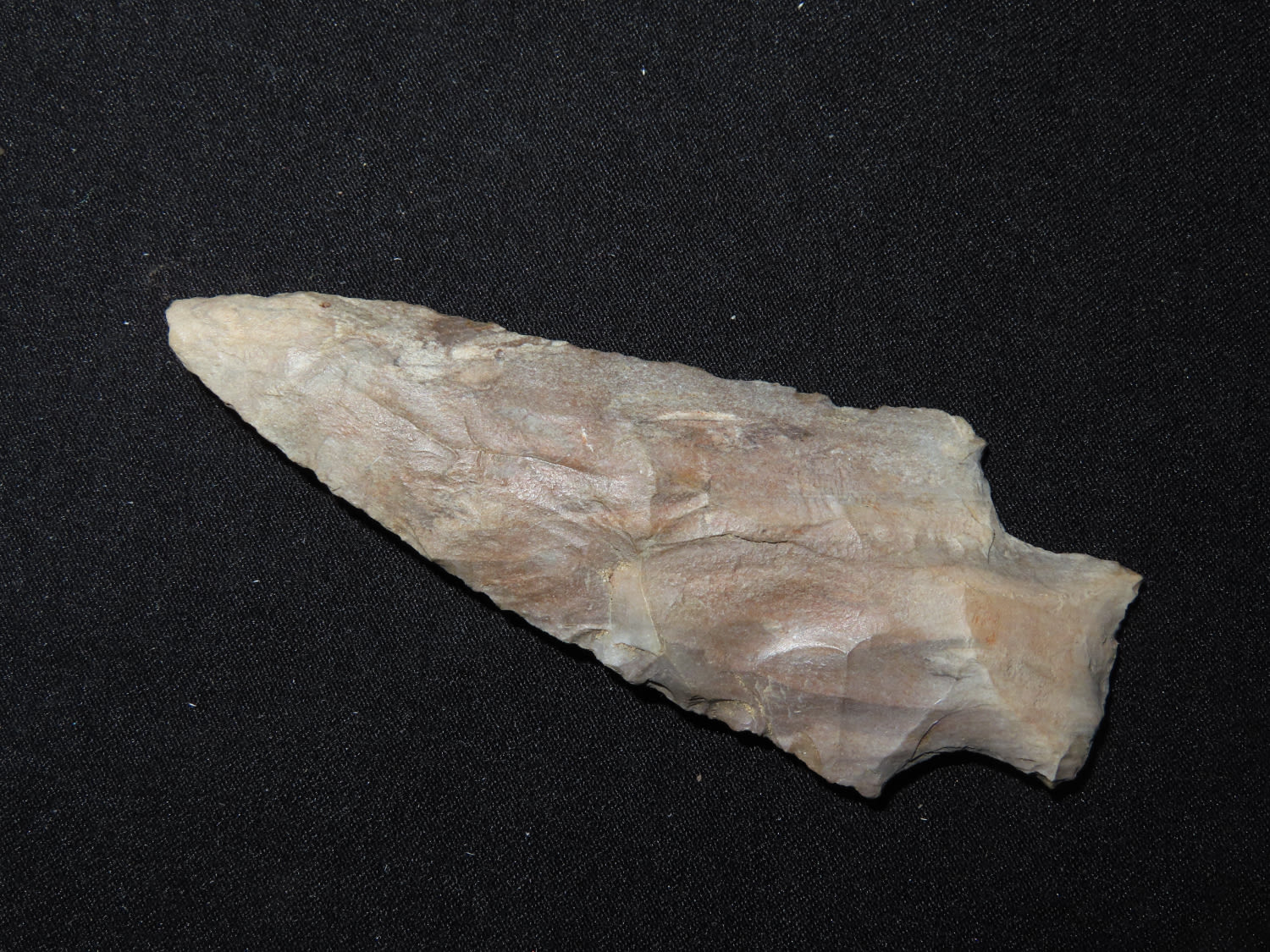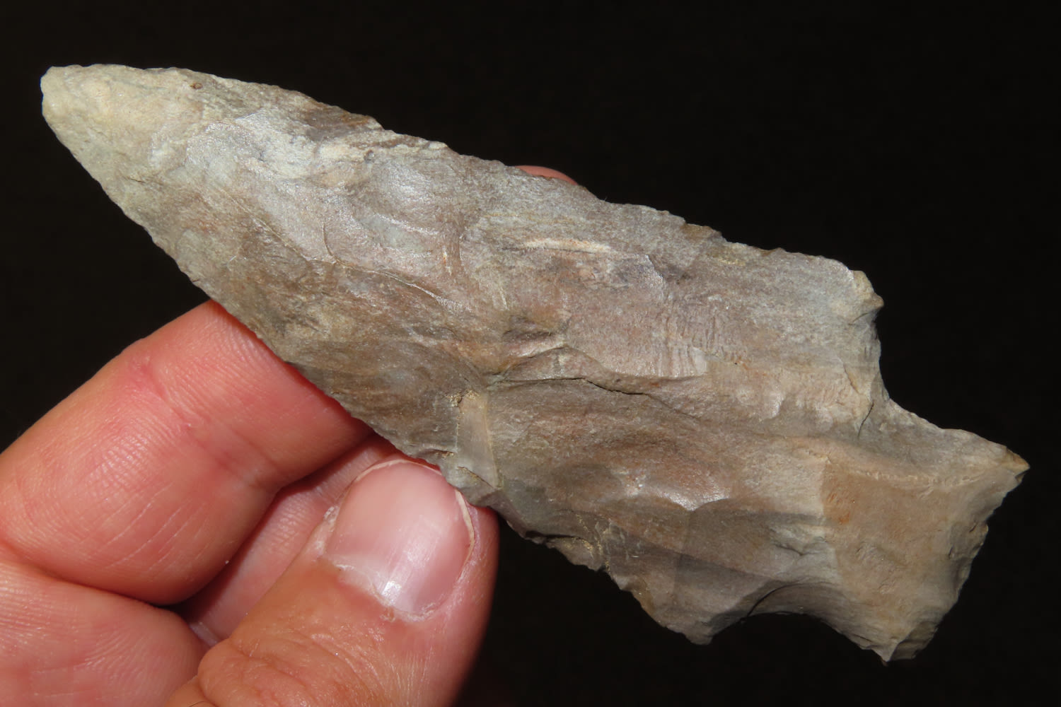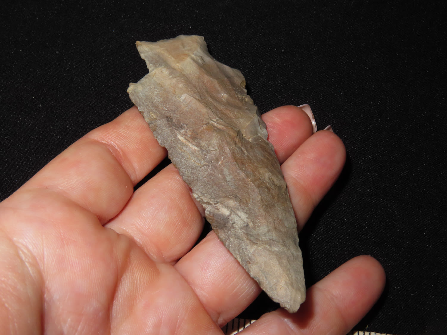 3 7/8″ Stone Square Stem. Super Colorful Stripped Chert. Motley COA. From the Steve McCabe Collection, MIlan, Sullivan County Missouri