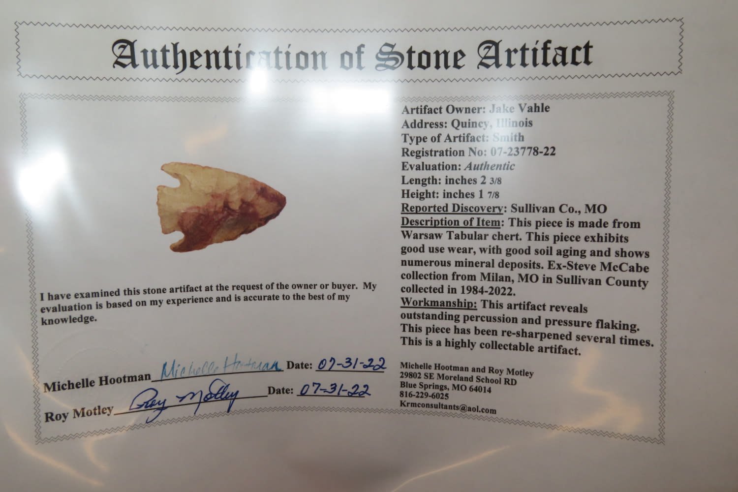 2 1/4″ Smith. Motley COA. From the Steve McCabe Collection, MIlan, Sullivan County Missouri