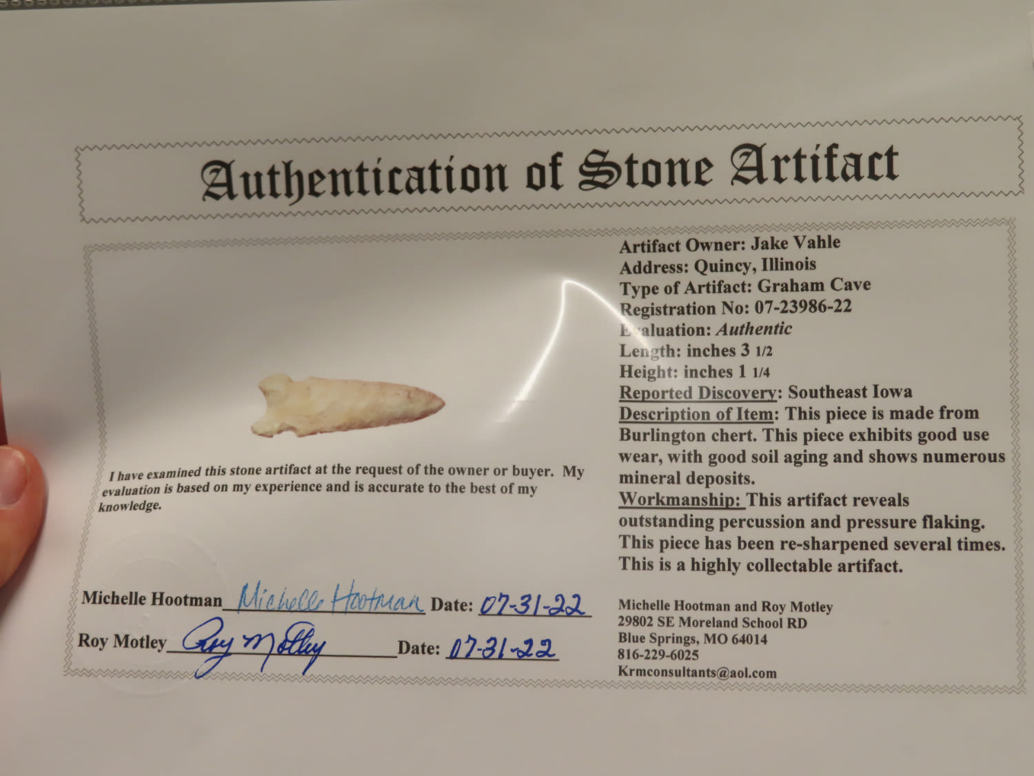 3 1/2″ Graham Cave. Motley COA. From the collection of Ralph Kempf, Southern Iowa.