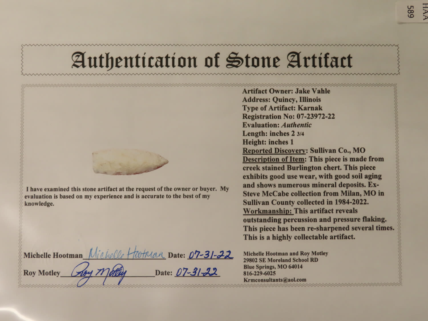 2 3/4″ Angustura. Motley COA. From the Steve McCabe Collection, MIlan, Sullivan County Missouri