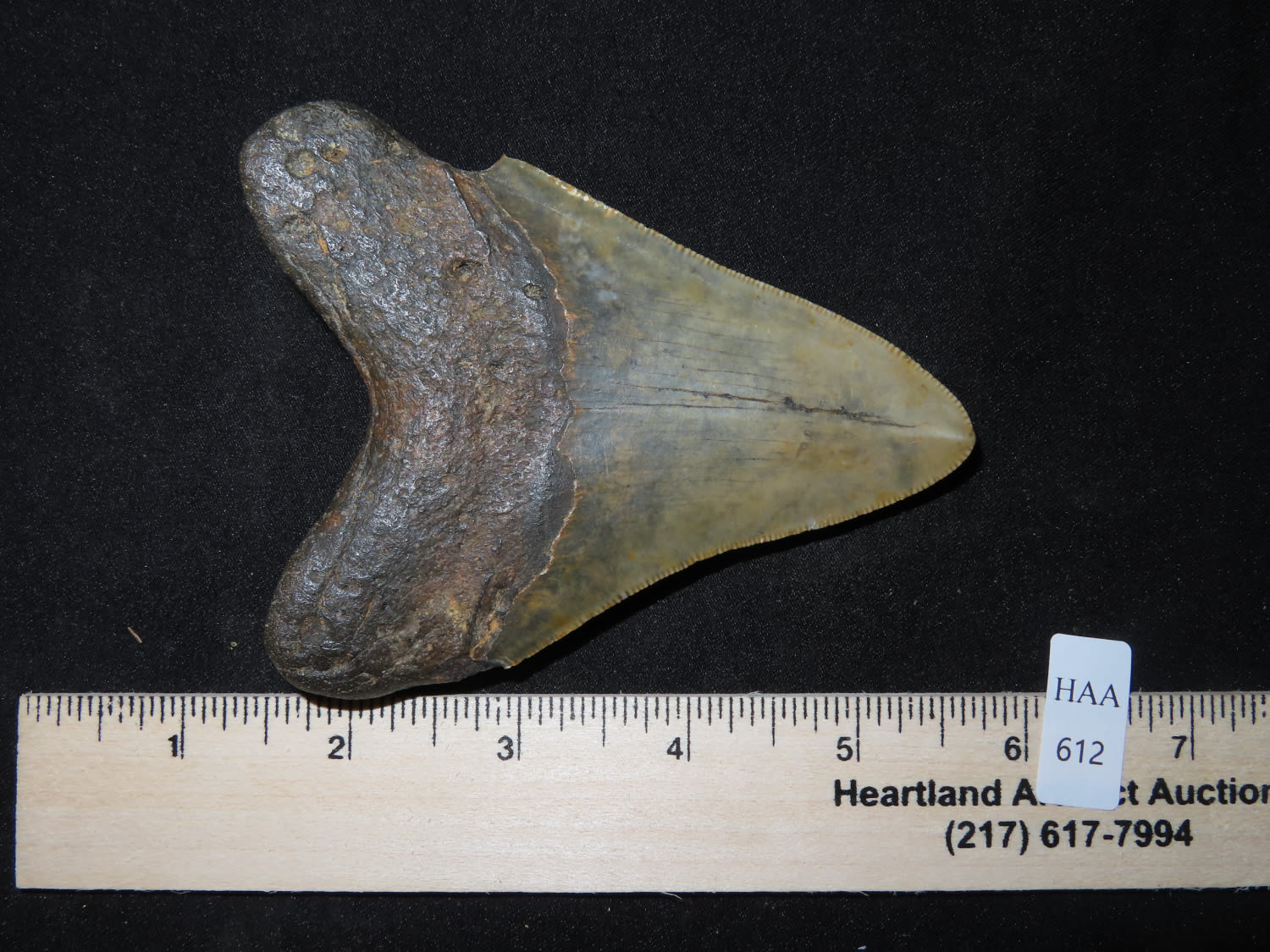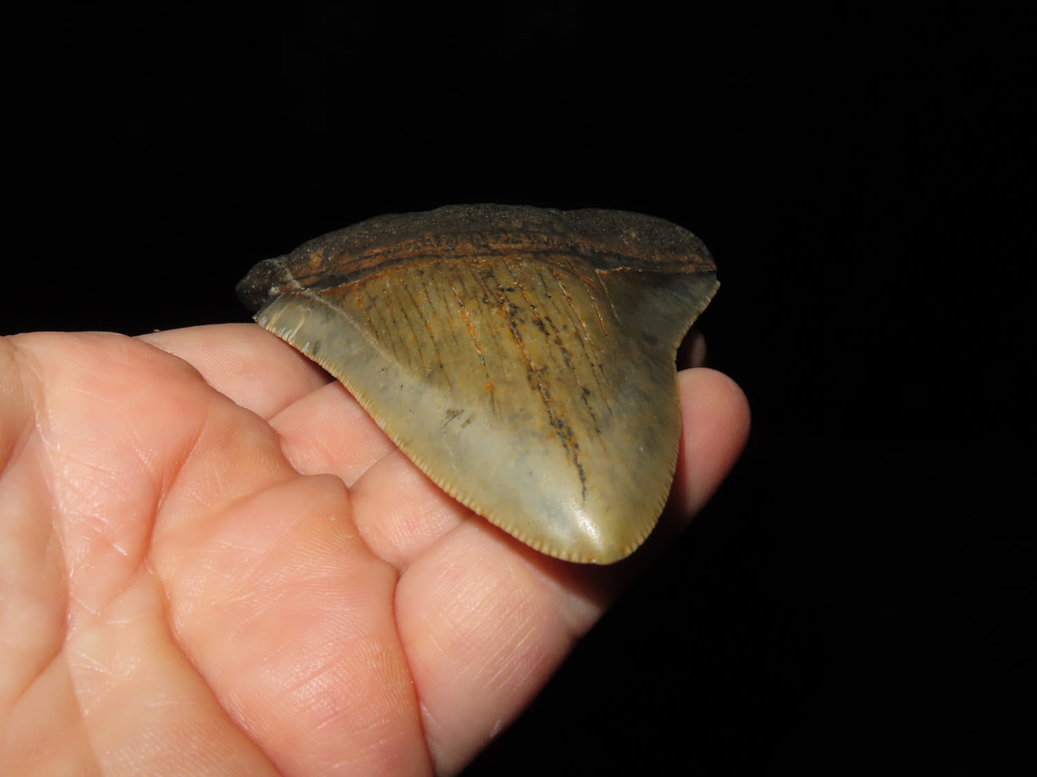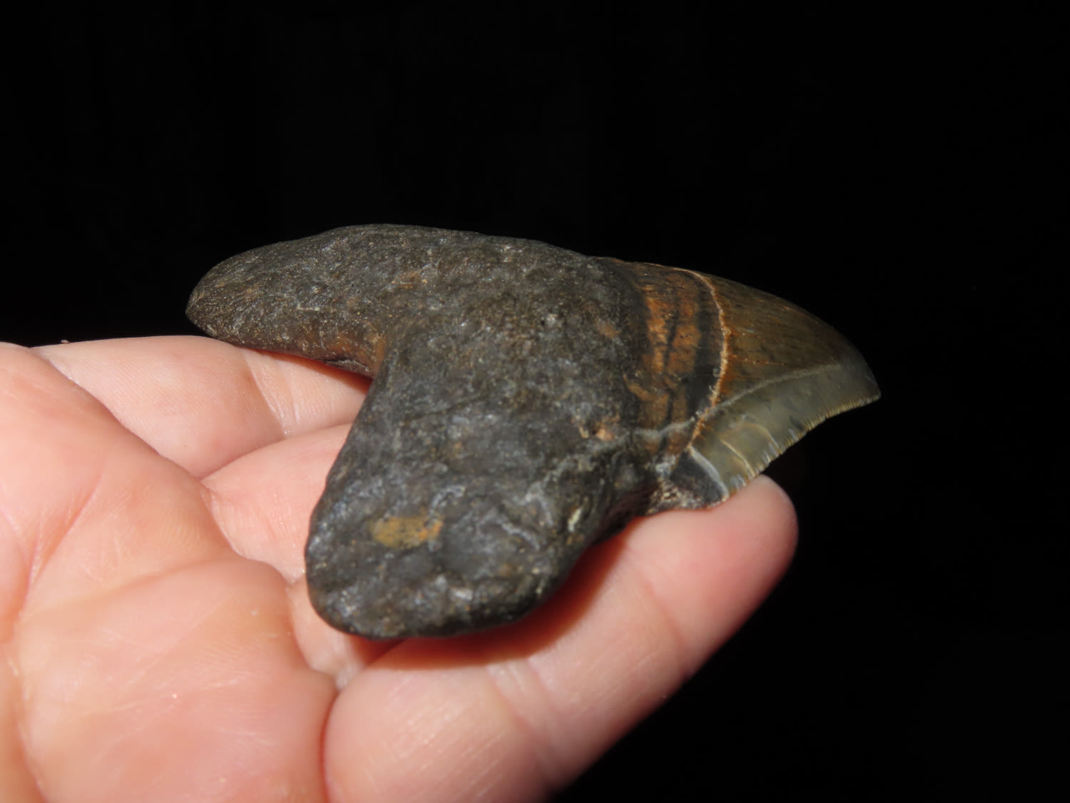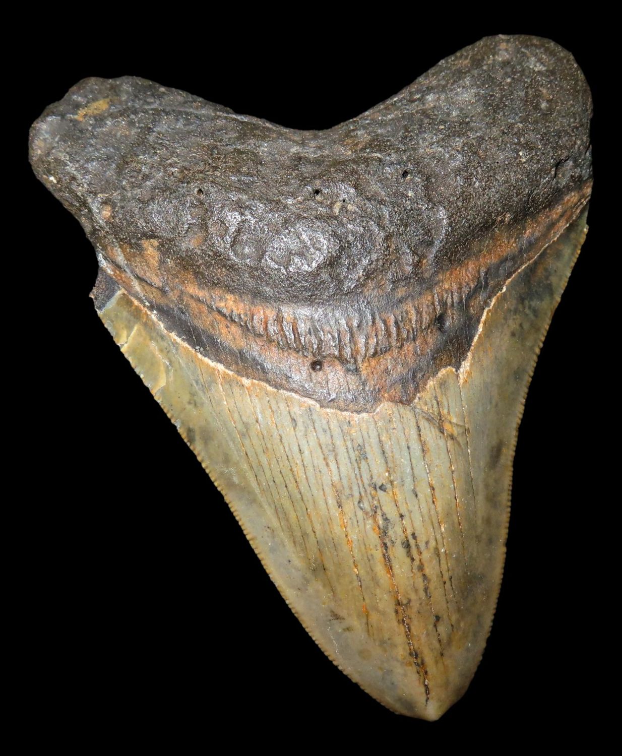 4 3/8″ Magladon Shark Tooth Fossil. South Carolina. Wonderful Serration and good condition.