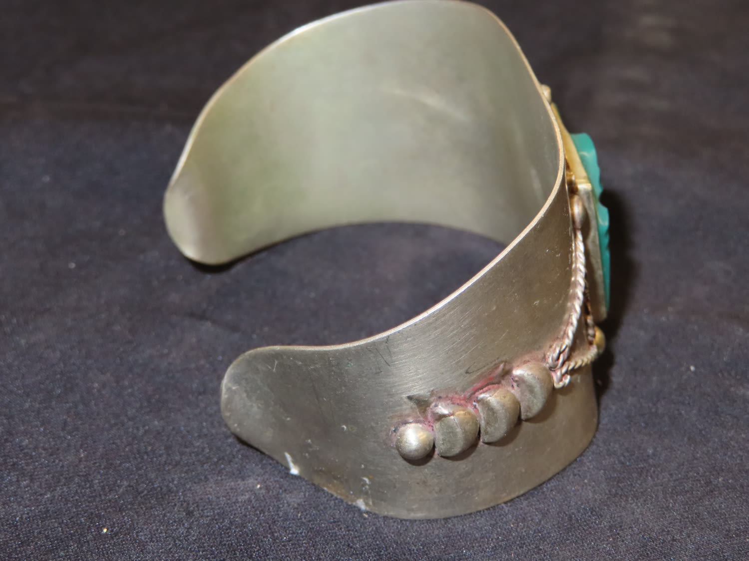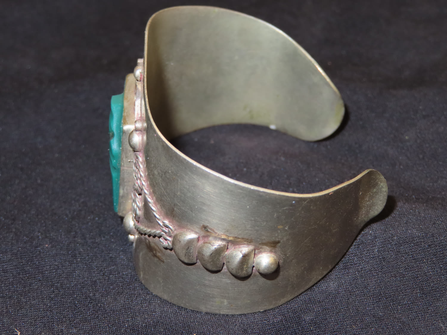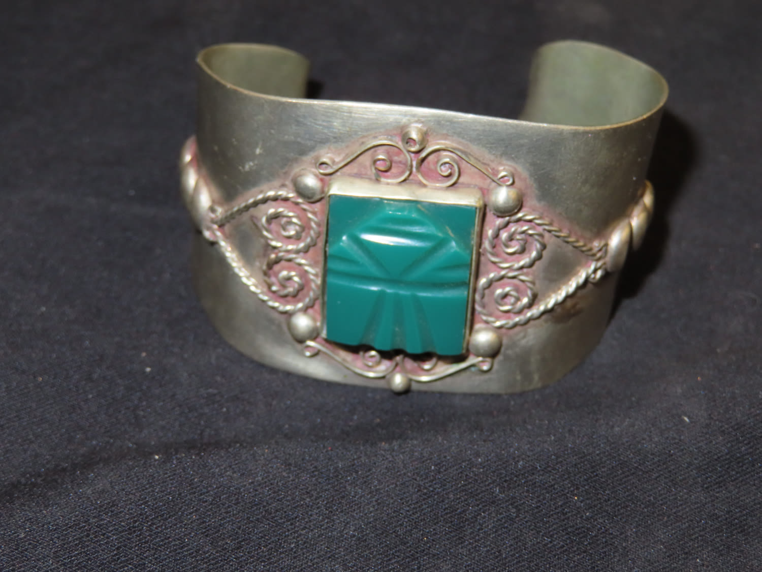 Classic Vintage Mexico Carved Green Onyx Sterling Silver Bracelet. Stamped Mexico