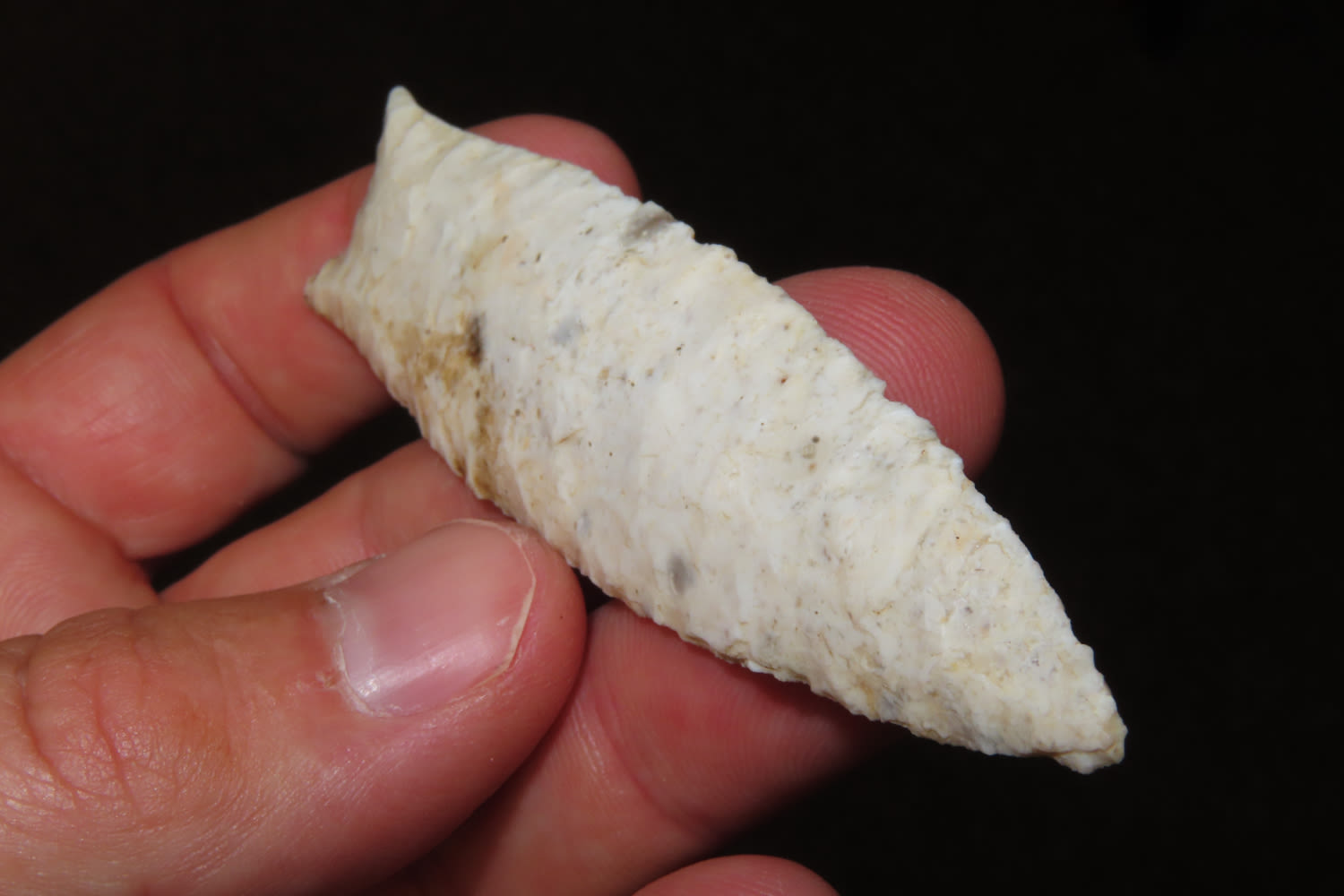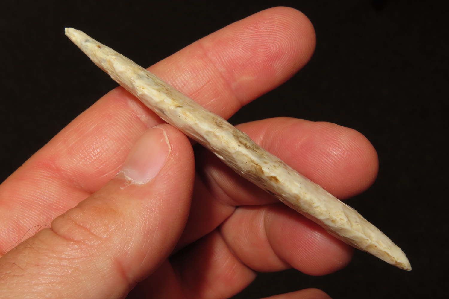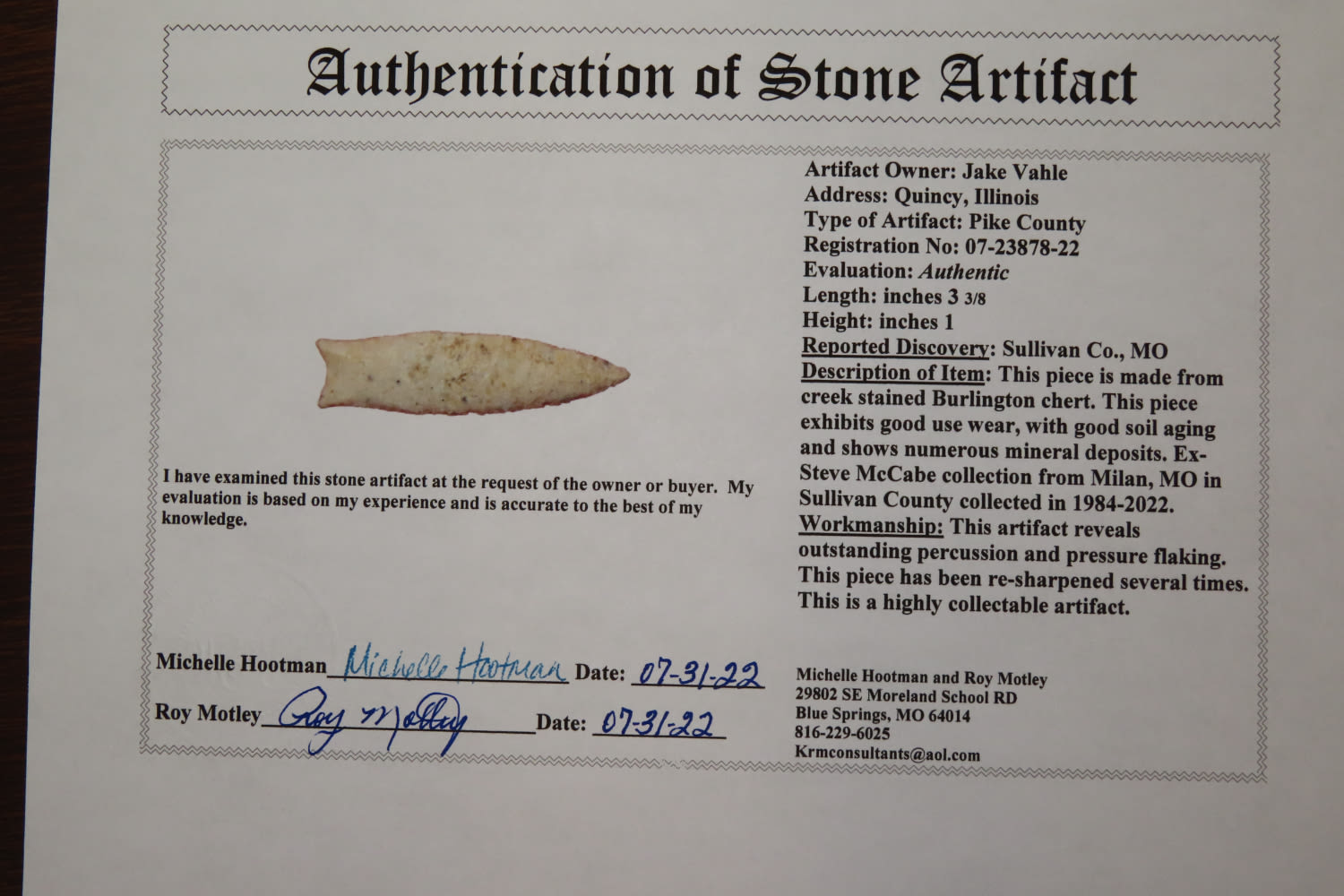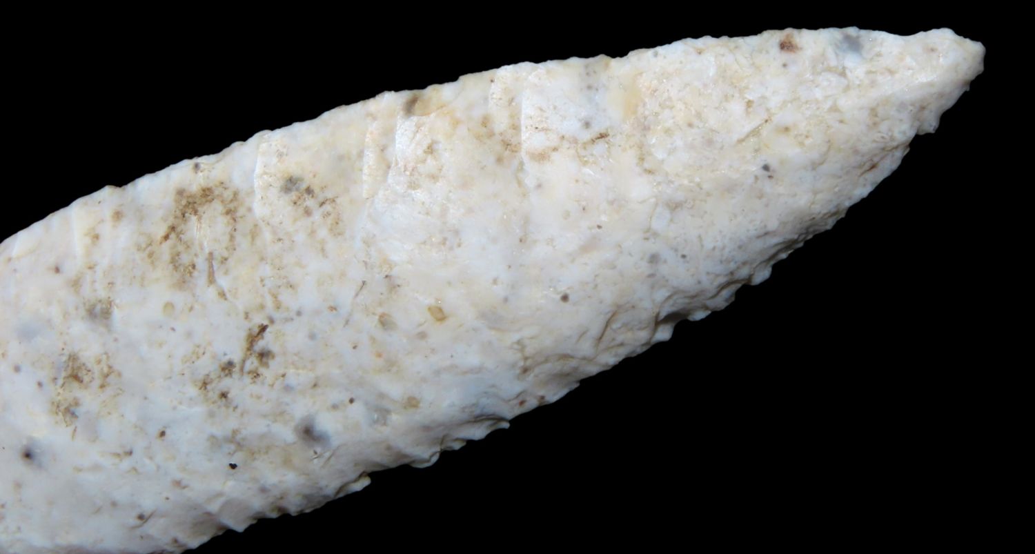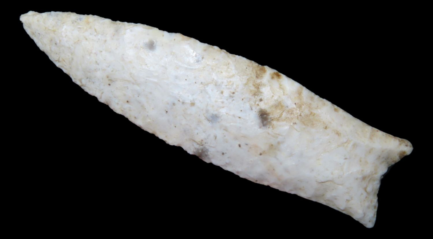 3 3/8″ x 7/8″ Pike County Dalton. 2X COA Motley /Keele. From the Steve McCabe Collection, Milan, Sullivan County Missouri. Made from Burlington Chert.