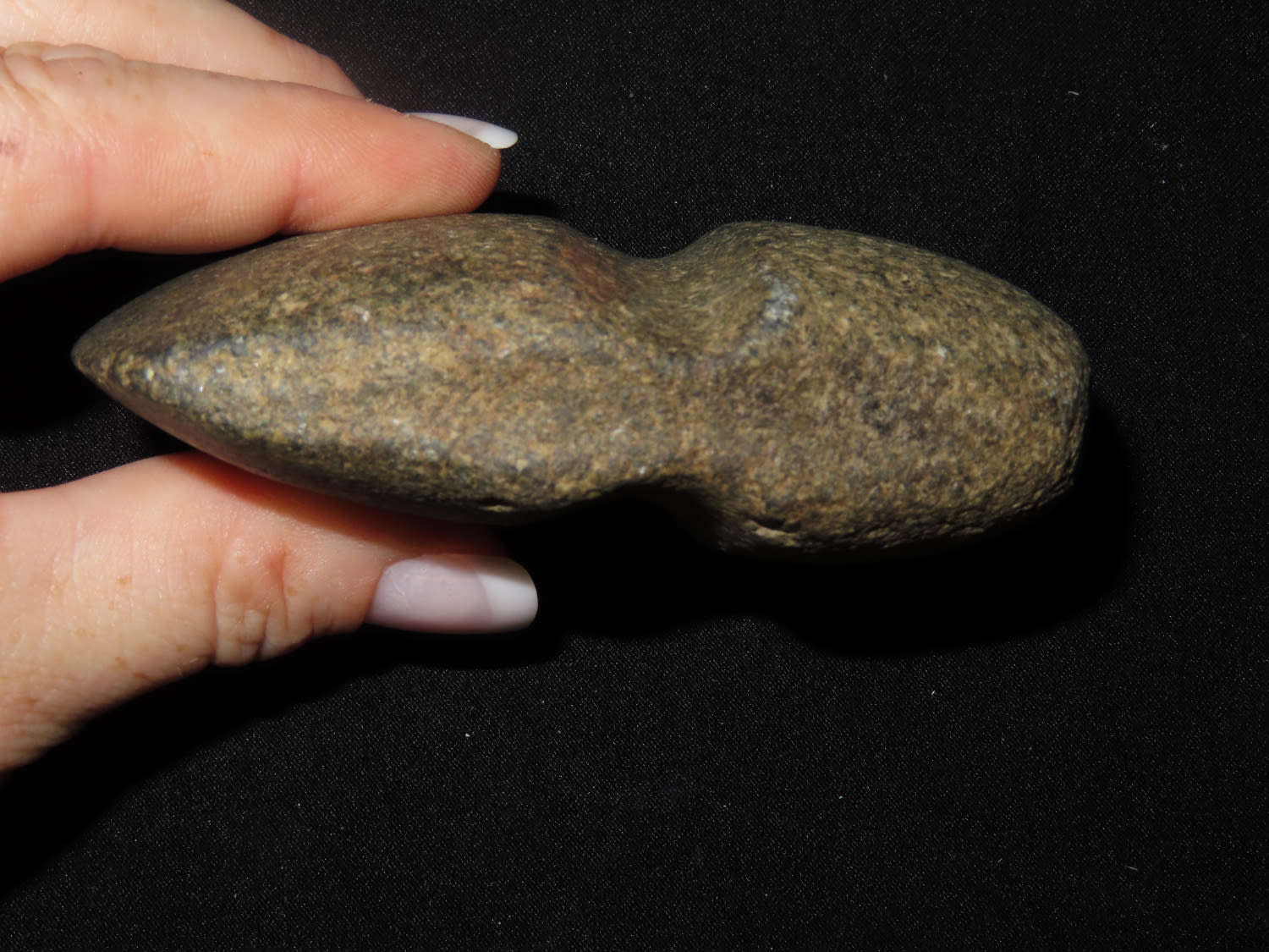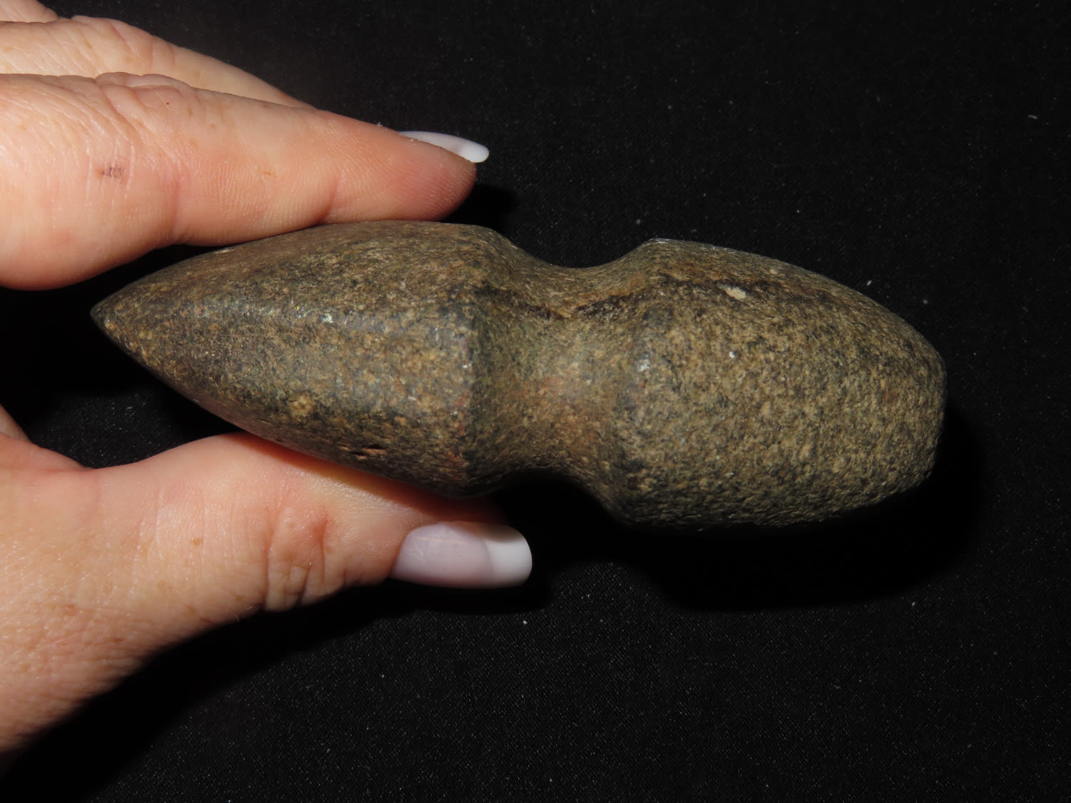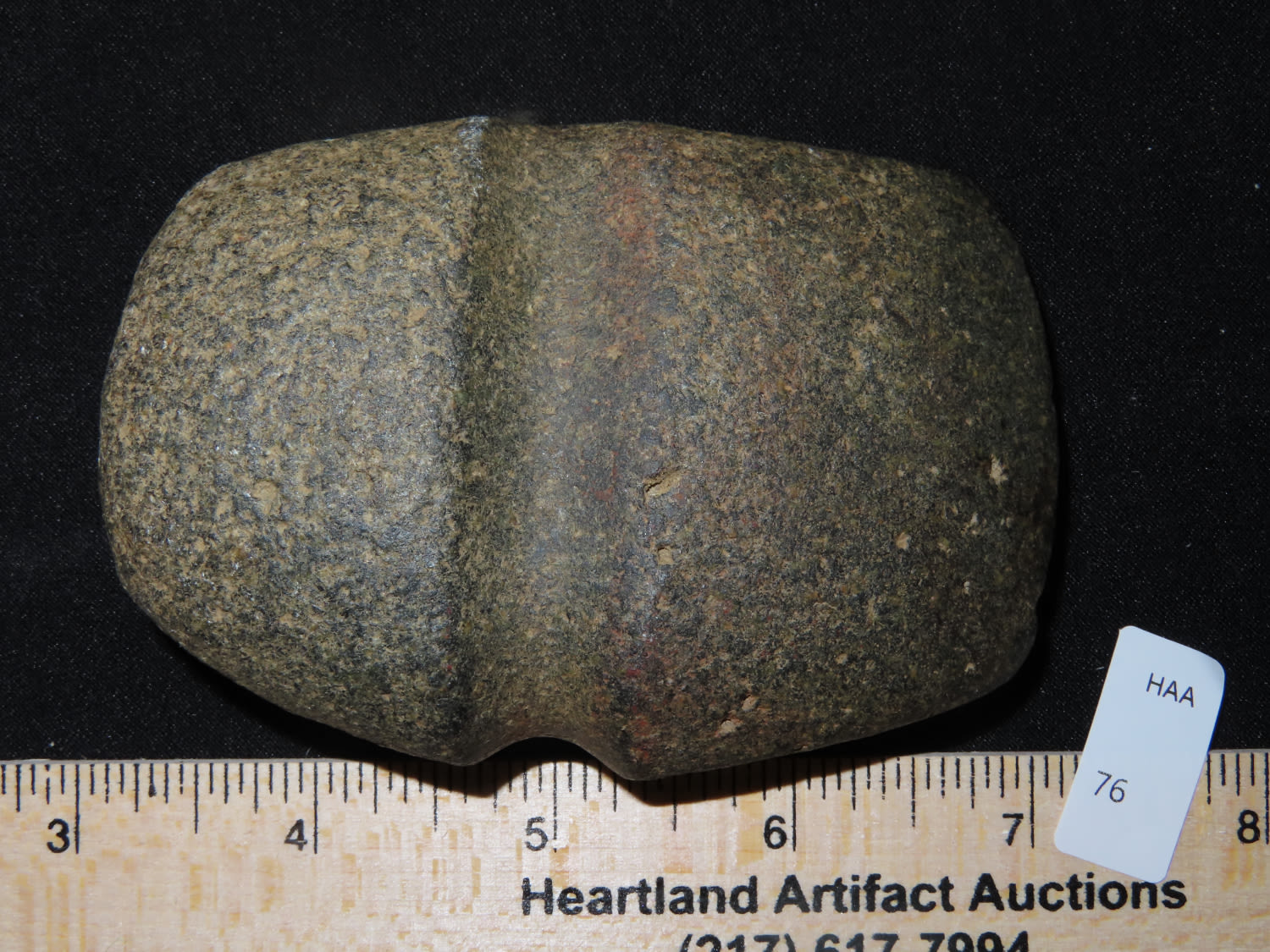 3 7/8″ Mills County Style 3/4 Groove Axe found in Iowa, Lightly Fluted Top and Bottom. Stands Nicely.