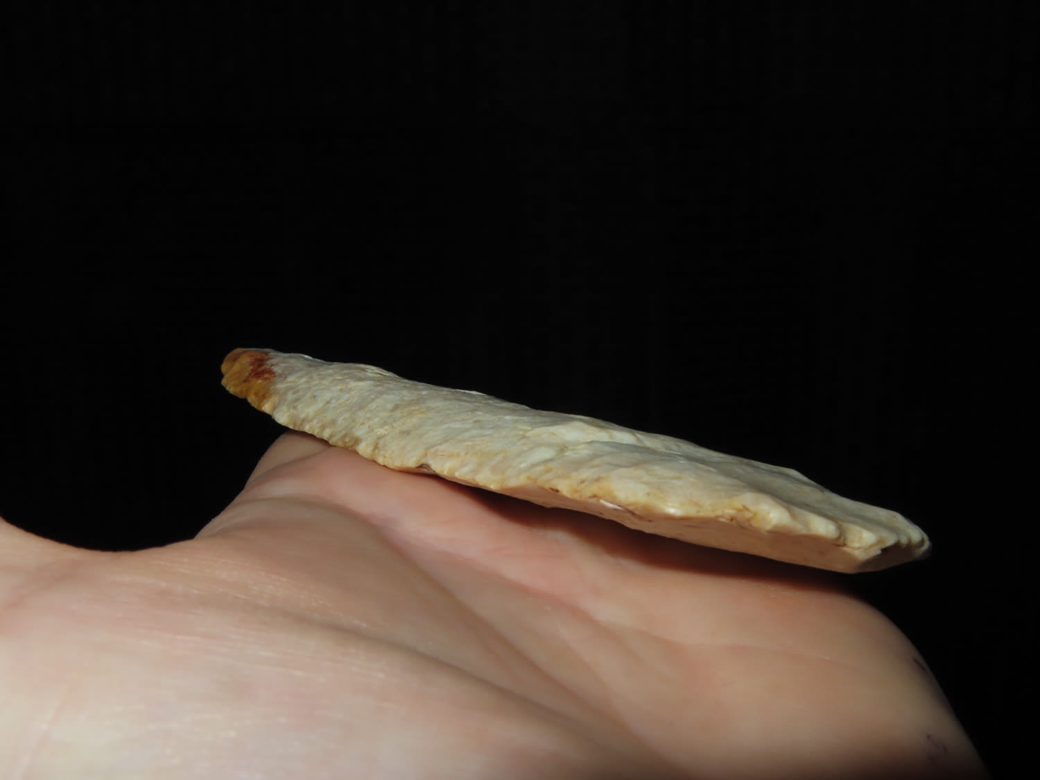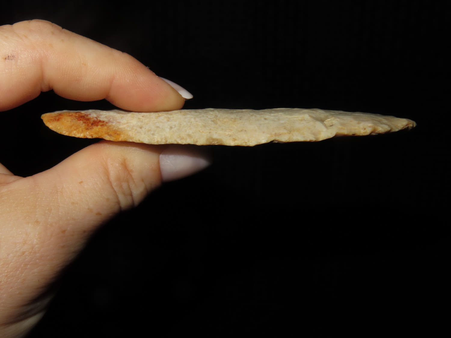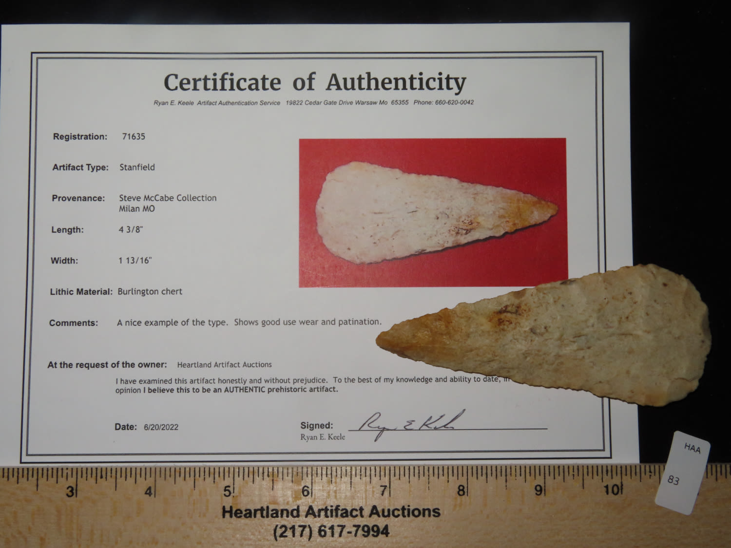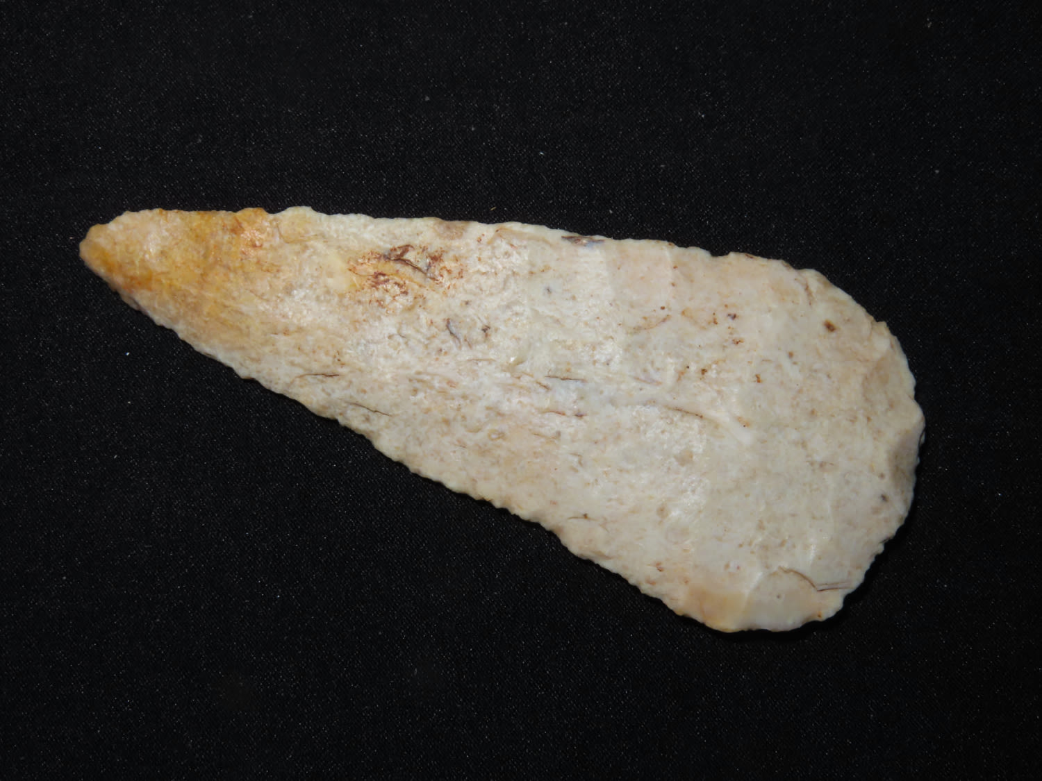 4 3/8″ x 1 13/16″ Stanfield. Keele COA. From the Steve McCabe Collection, Milan, Sullivan County Missouri. Made from Burlington Chert