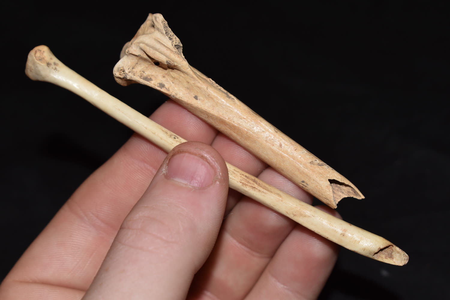 Grouping of 2 Bone Pieces found in Kentucky, Authentic Native American Arrowhead Artifacts