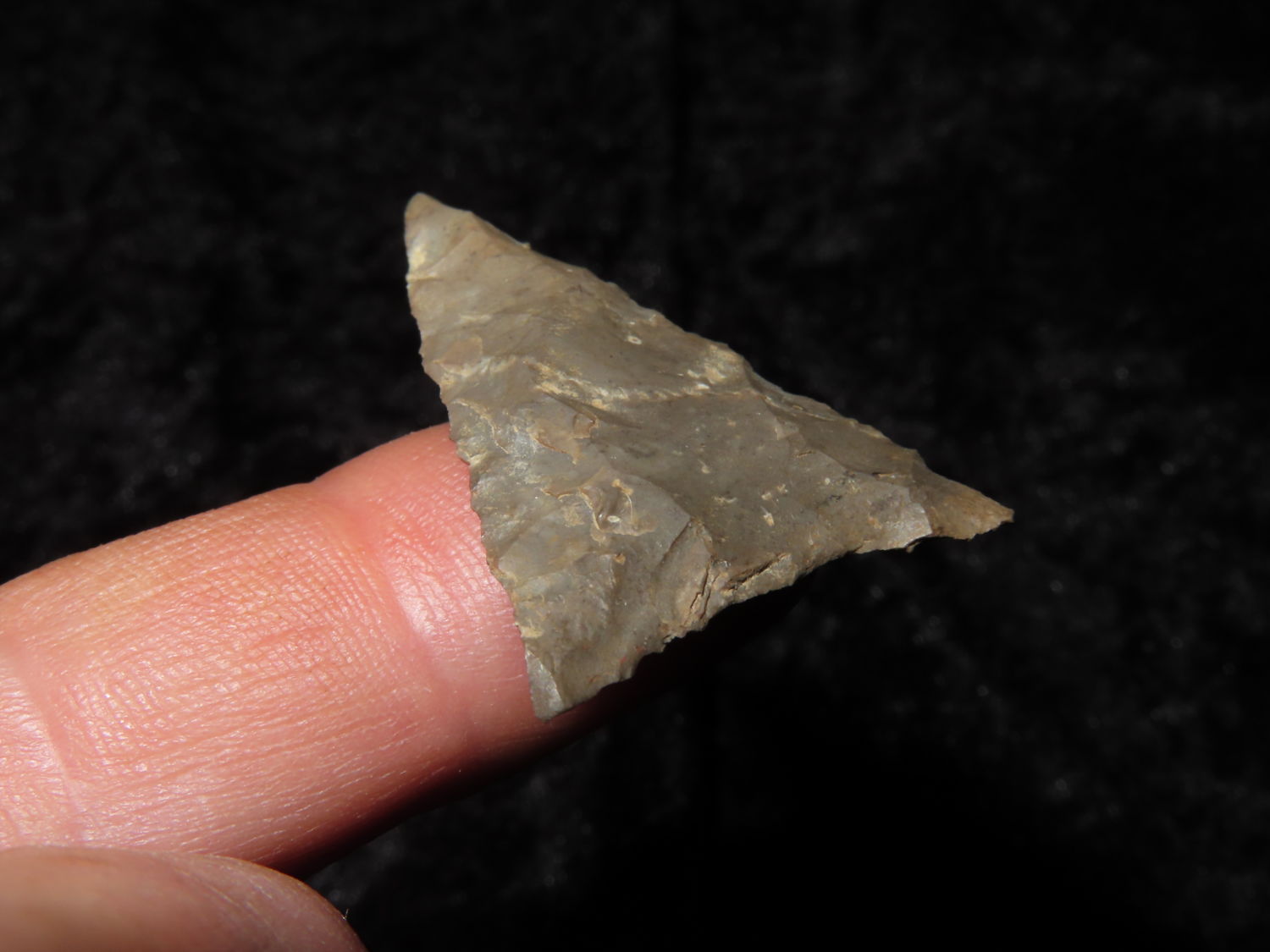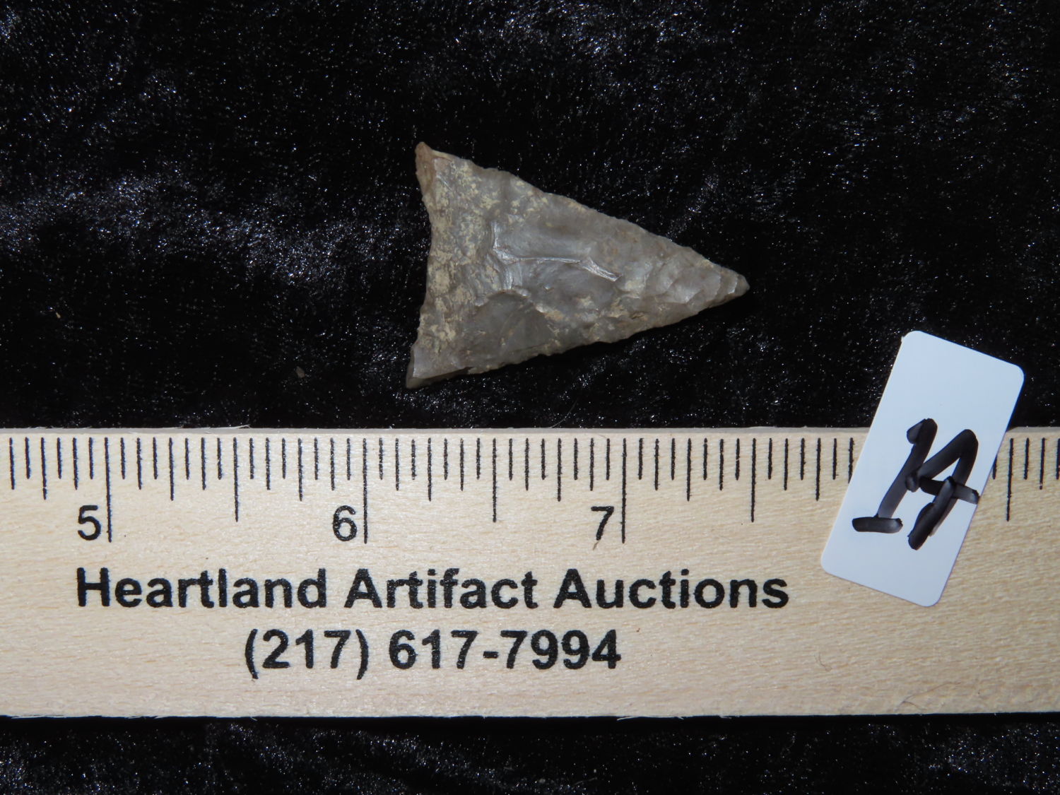 NICE MISSISSIPPIAN TRIANGLE FOUND IN HOWELL MICHIGAN, EX JOHN MORRISS COLLECTION, INDIAN ARROWHEAD, ARIFACT