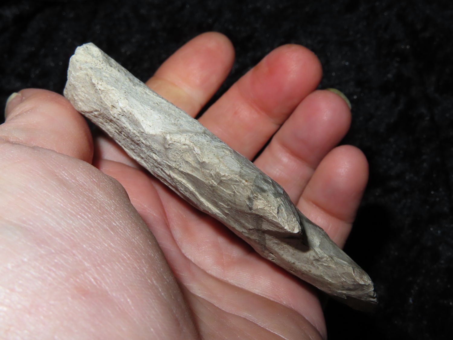MASSIVE HOPEWELL HEARTBREAKER, 3 1/2″ LONG, FOUND IN HOWELL MICHIGAN, EX JOHN MORRISS COLLECTION, INDIAN ARROWHEAD, ARIFACT