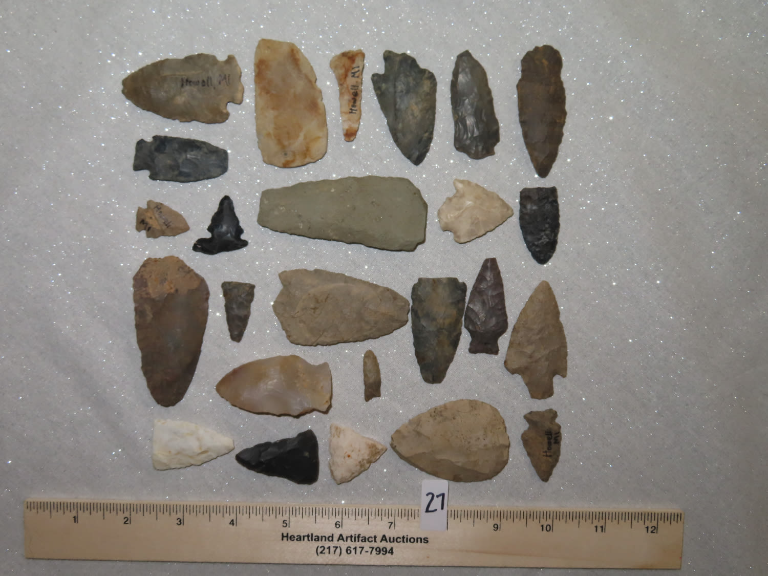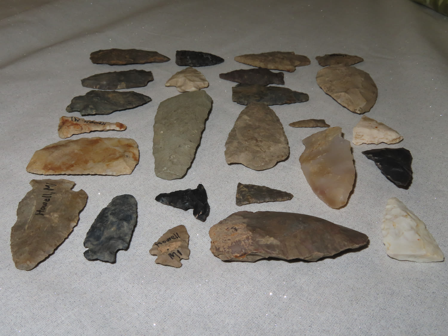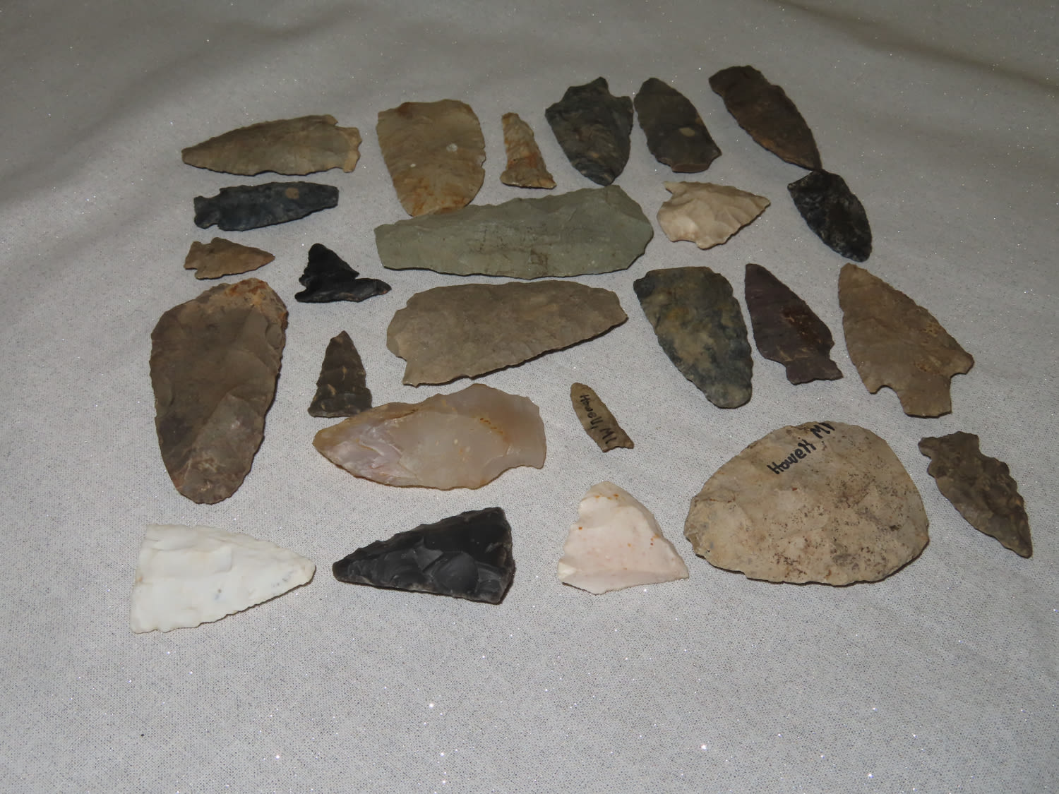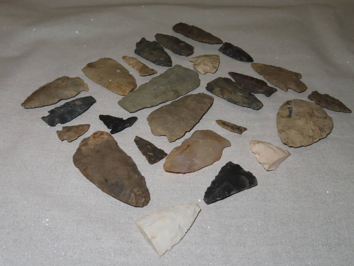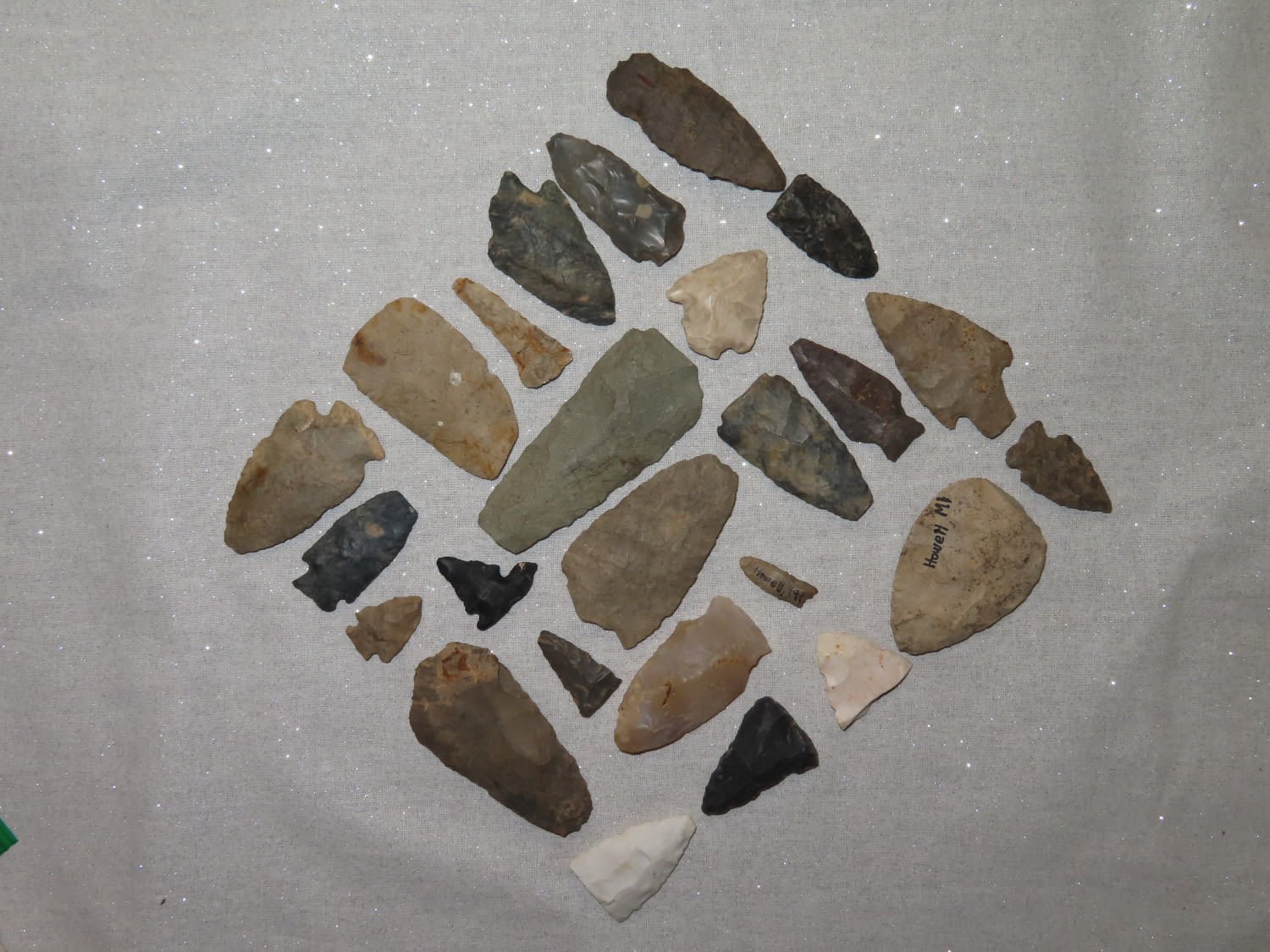 LOT OF 25 FIELD GRADE ARROWHEADS FOUND IN HOWELL MICHIGAN, EX JOHN MORRISS COLLECTION, INDIAN ARIFACT