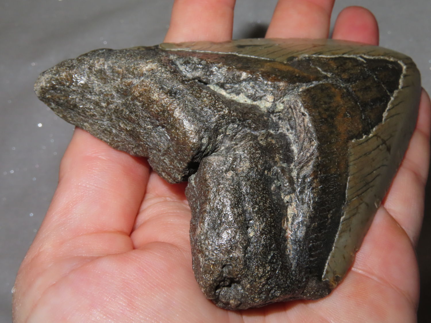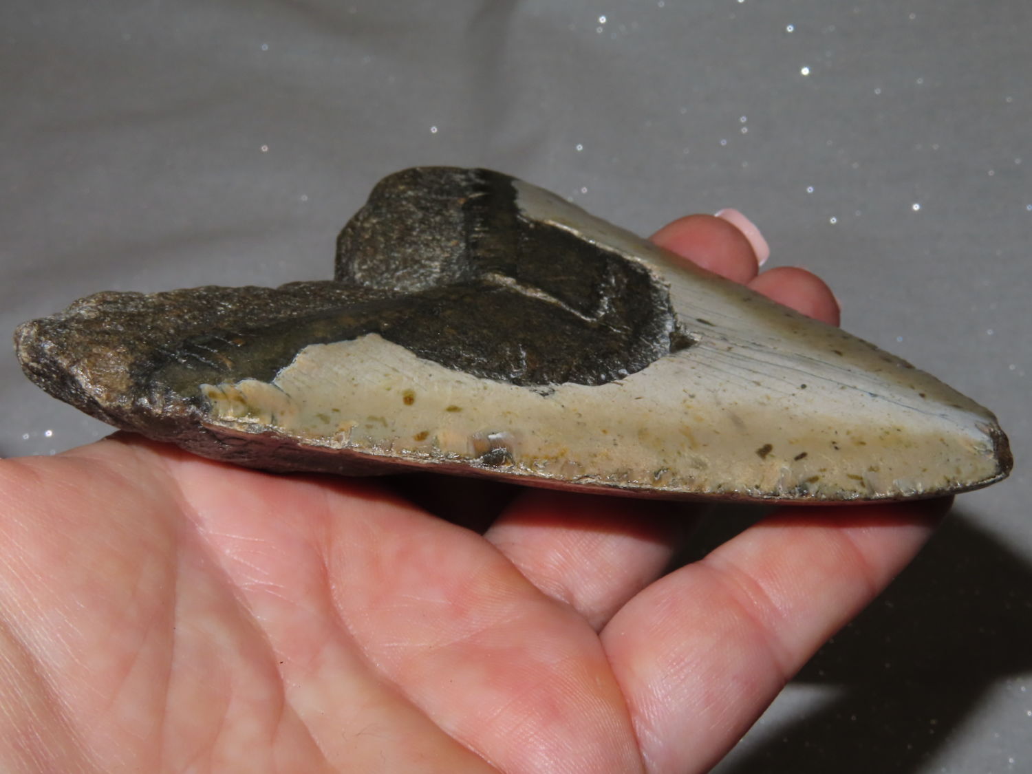 LARGE MEGALODON SHARKS TOOTH FOSSIL FOUND OFF THE COAST OF THE CAROLINAS