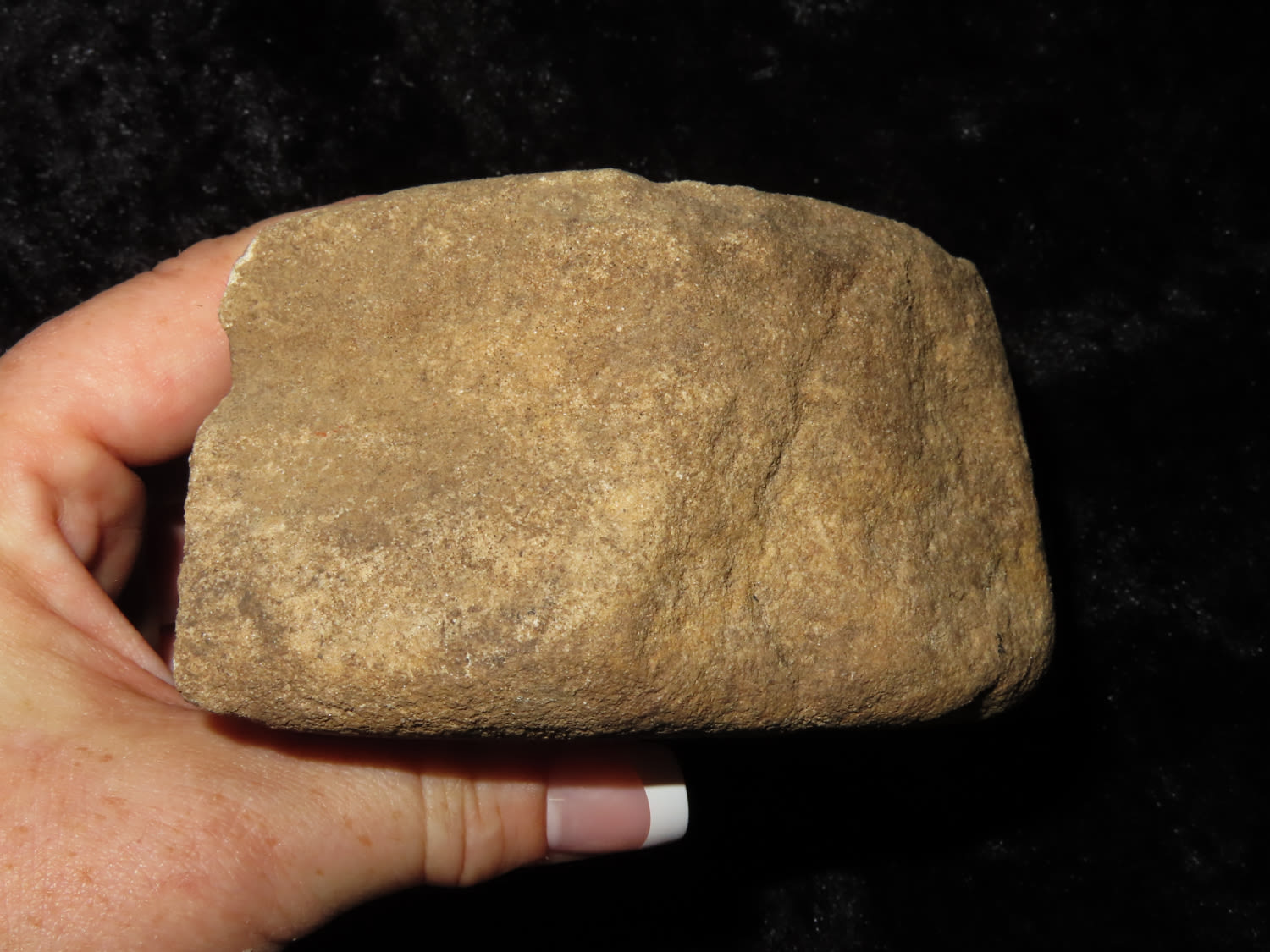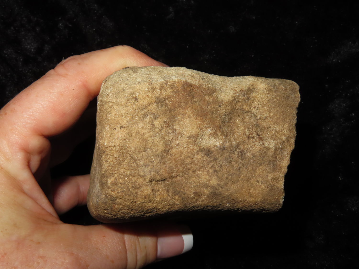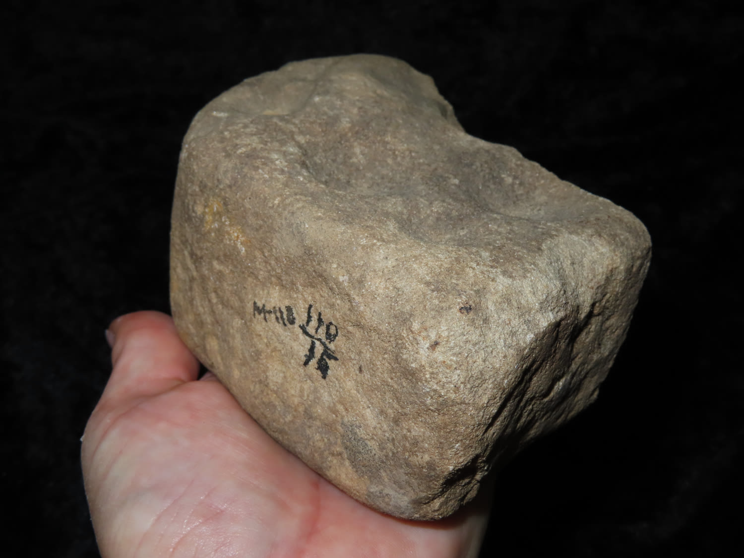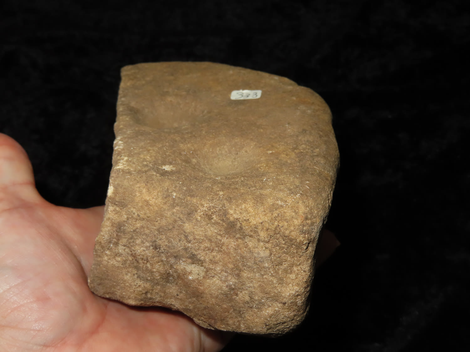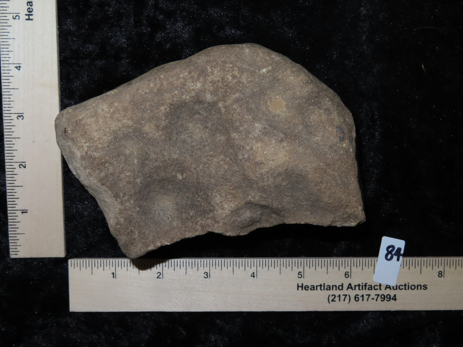 NUTTING STONE NICELY CUPPED MULTIPLE TIMES, 5 ON ONE SIDE AND 2 ON THE OTHER, FOUND IN CRAIGHEAD COUNTY ARKANSAS, X DUB LYERLY