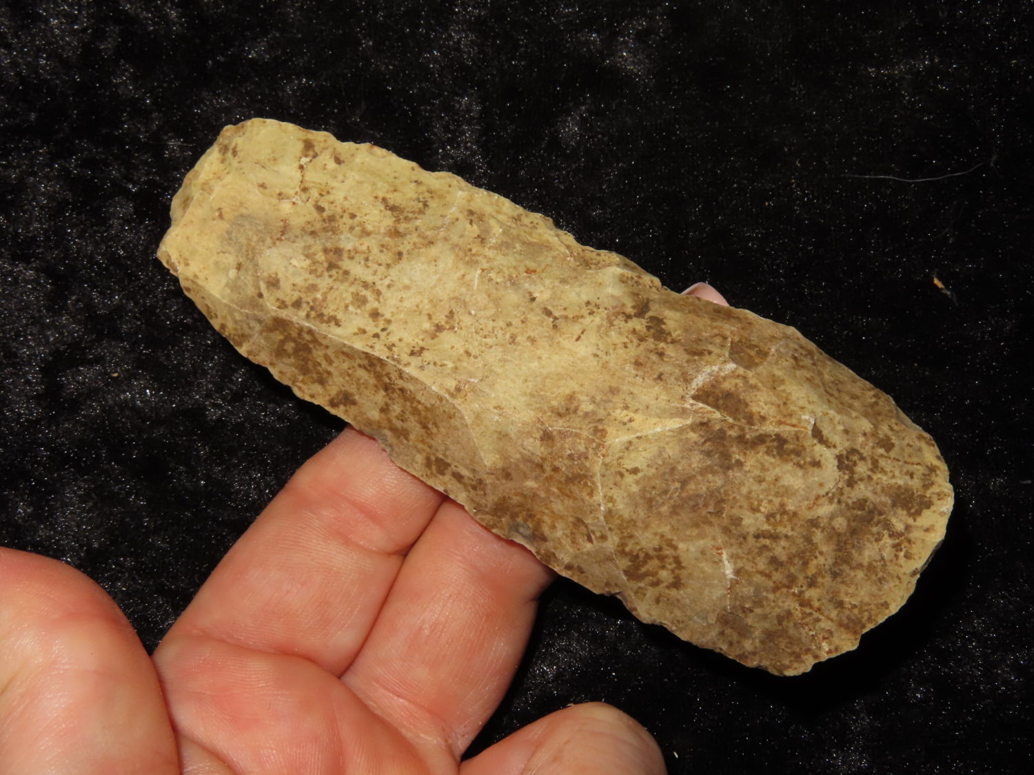 NICE 4 1/2″ FLINT CELT FOUND IN CRAIGHEAD COUNTY ARKANSAS, X DUB LYERLY, INDIAN ARROWHEAD, ARTIFACT