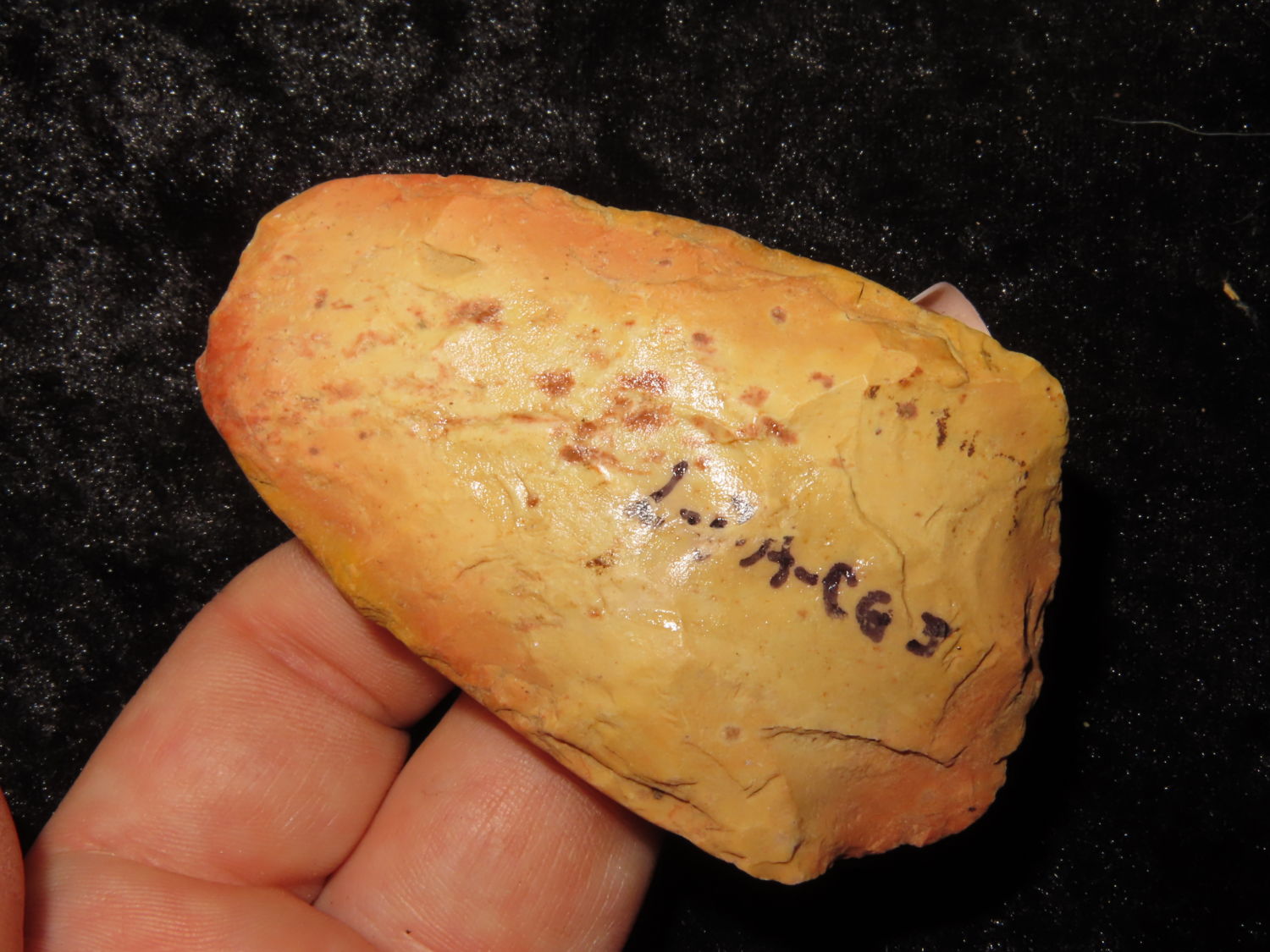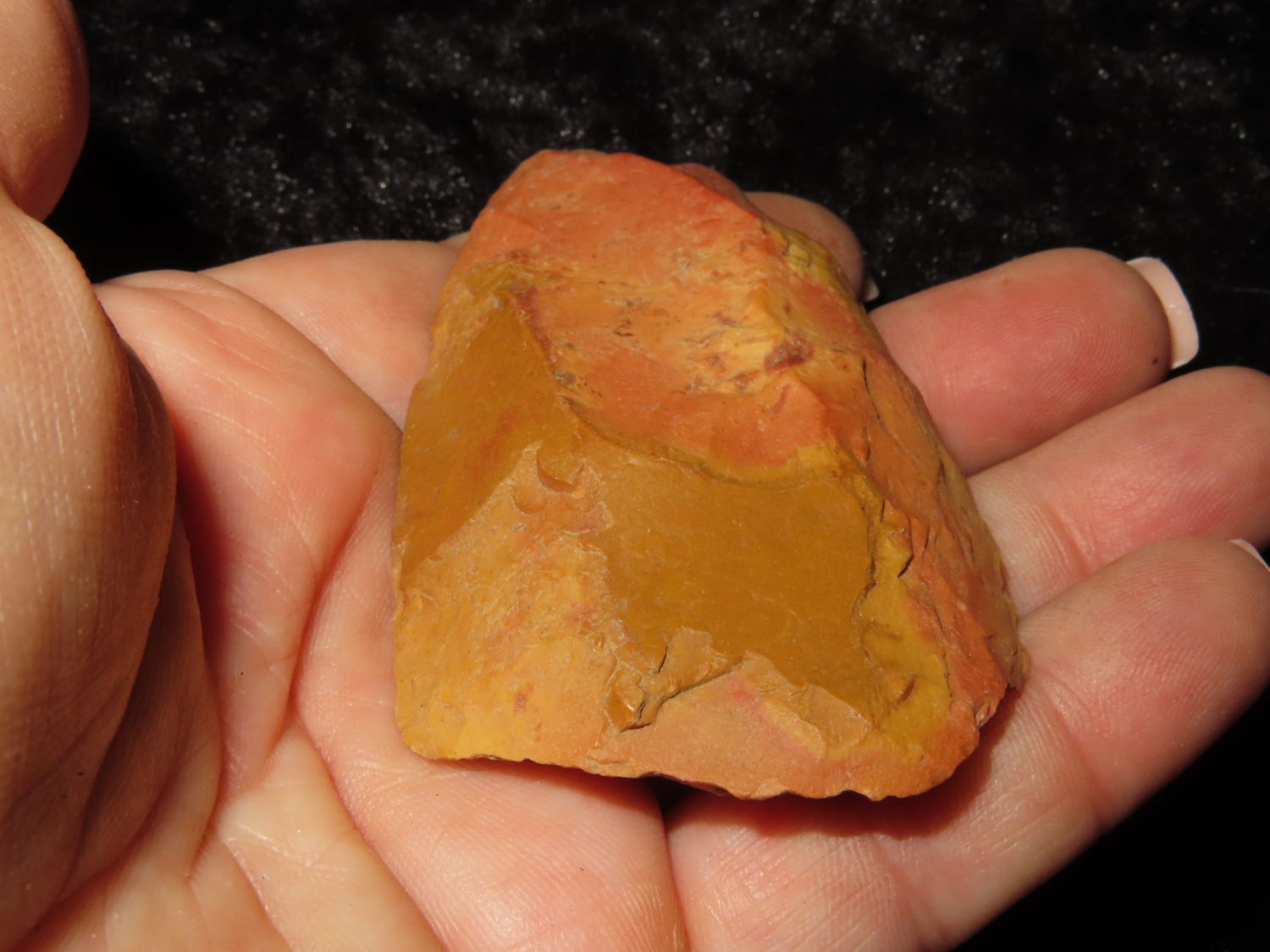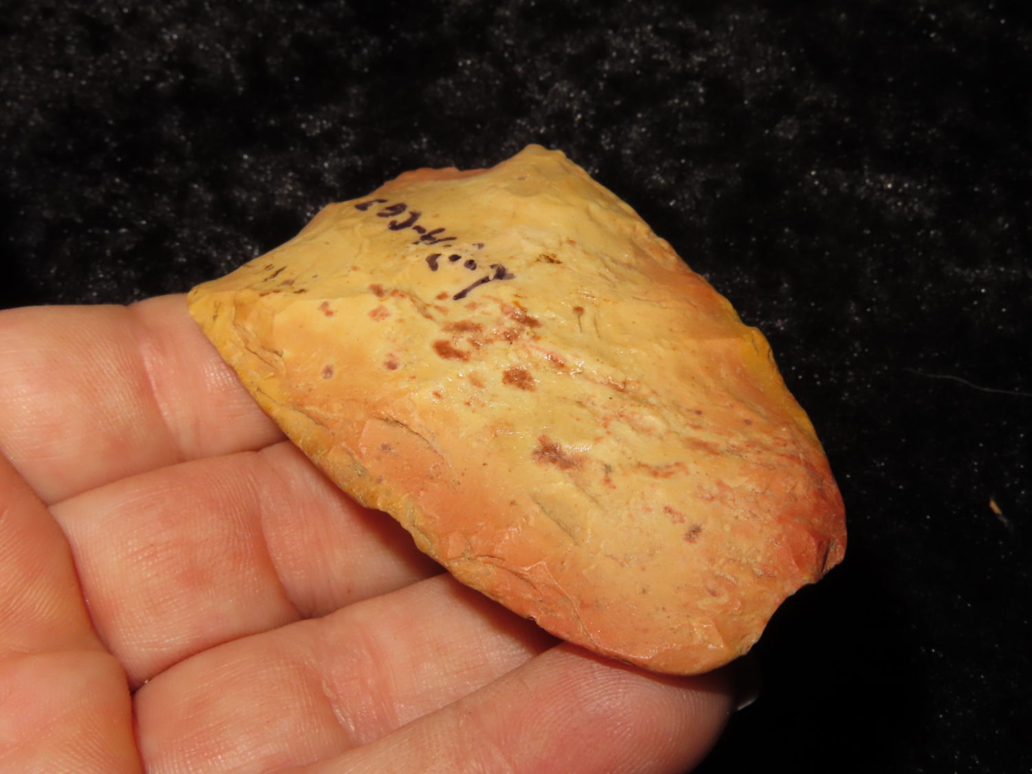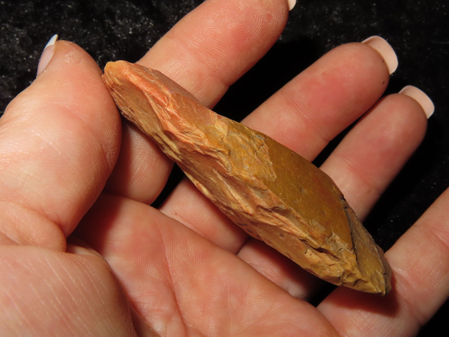 COLORFUL 3″ FLINT CELT FOUND IN CRAIGHEAD COUNTY ARKANSAS, X DUB LYERLY, INDIAN ARROWHEAD, ARTIFACT