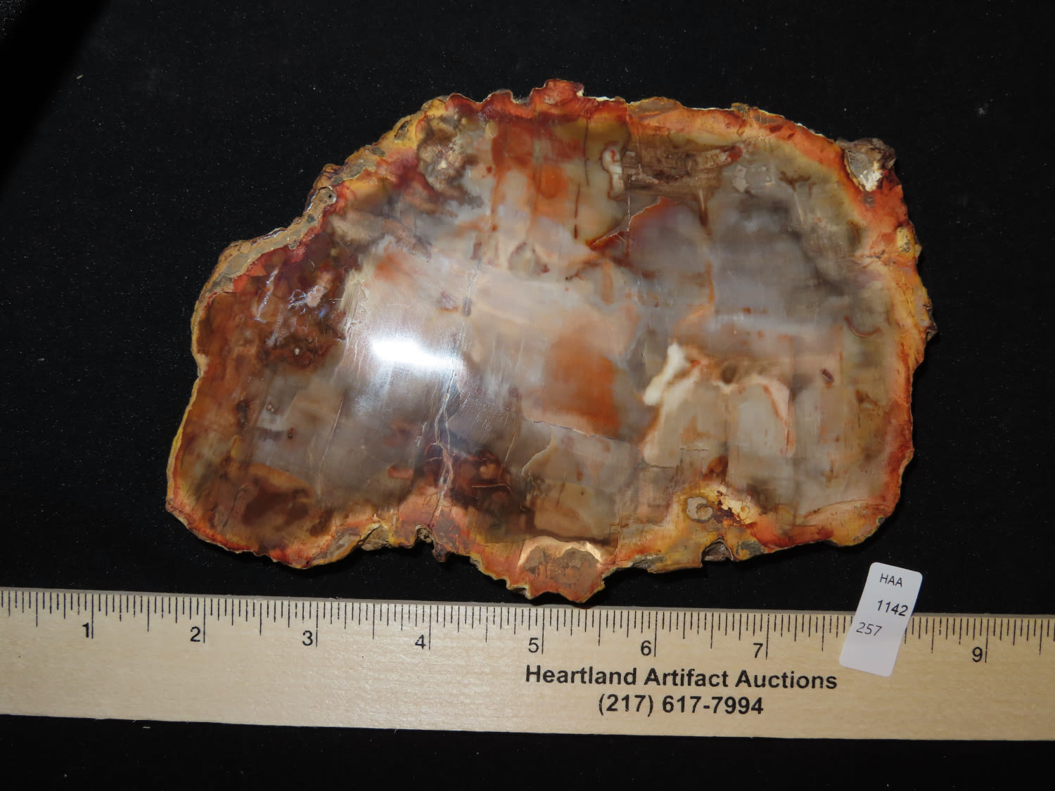 COLORFUL POLISHED SLAB OF PETRIFIED WOOD, 7″ LONG, GREAT COLORS, NICE PIECE TO DISPLAY