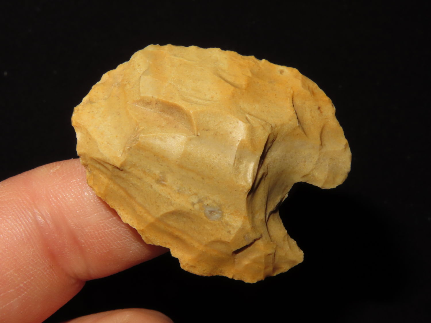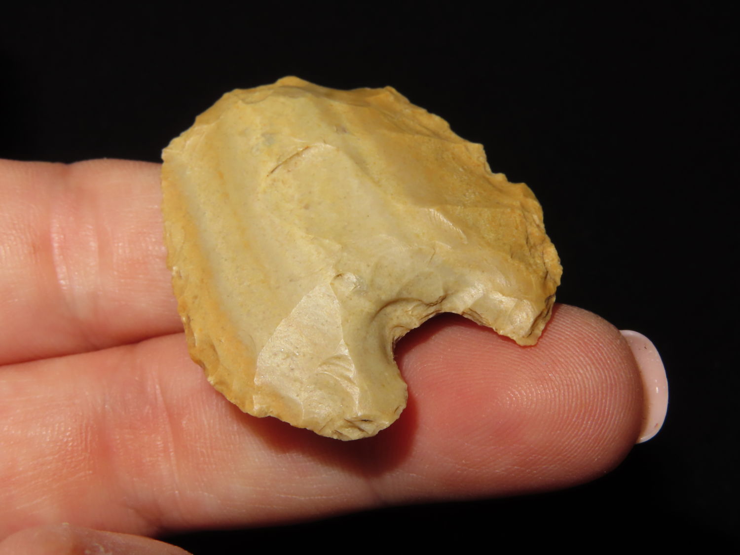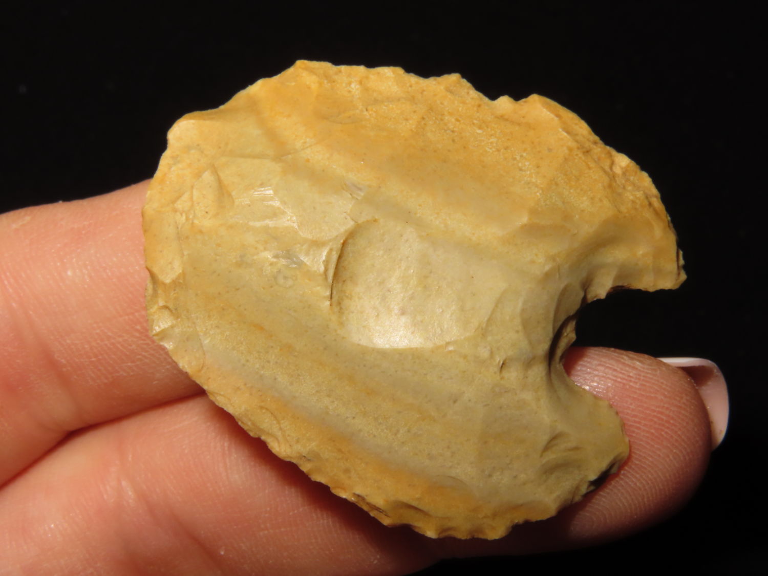 ECCENTRIC SINGLE NOTCH SPOKE SHAVE FOUND BY RICHARD ELLISON IN BUTLER COUNTY MISSOURI, INDIAN ARROWHEAD, ARTIFACT