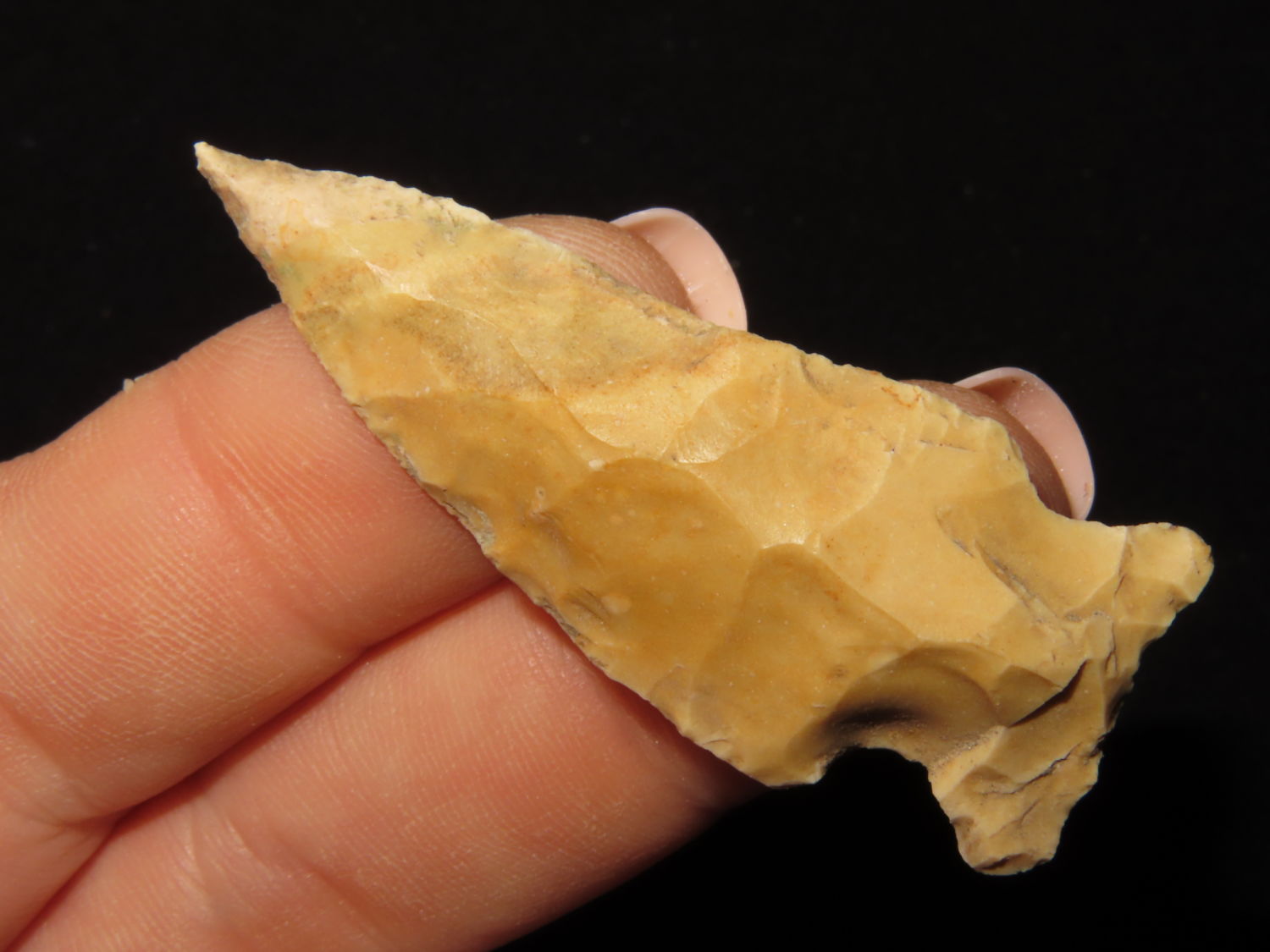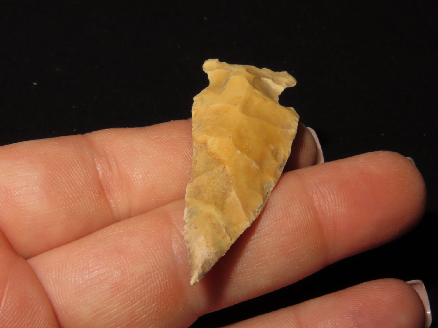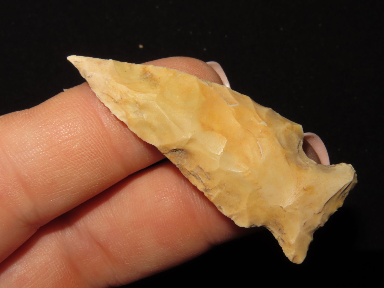 NEEDLE TIPPED ARCHAIC CORNERNOTCH FOUND BY RICHARD ELLISON IN BUTLER COUNTY MISSOURI, INDIAN ARROWHEAD, ARTIFACT