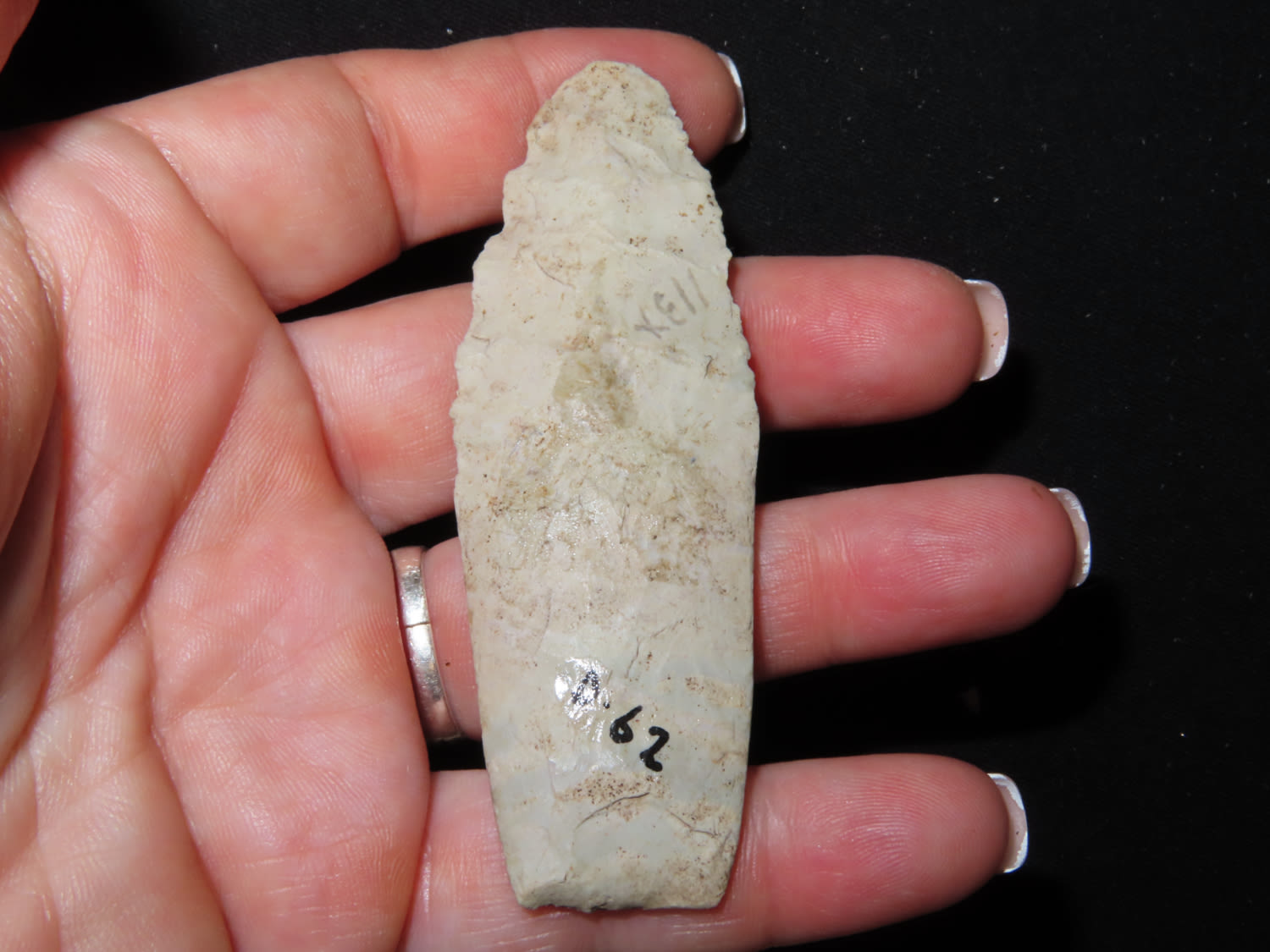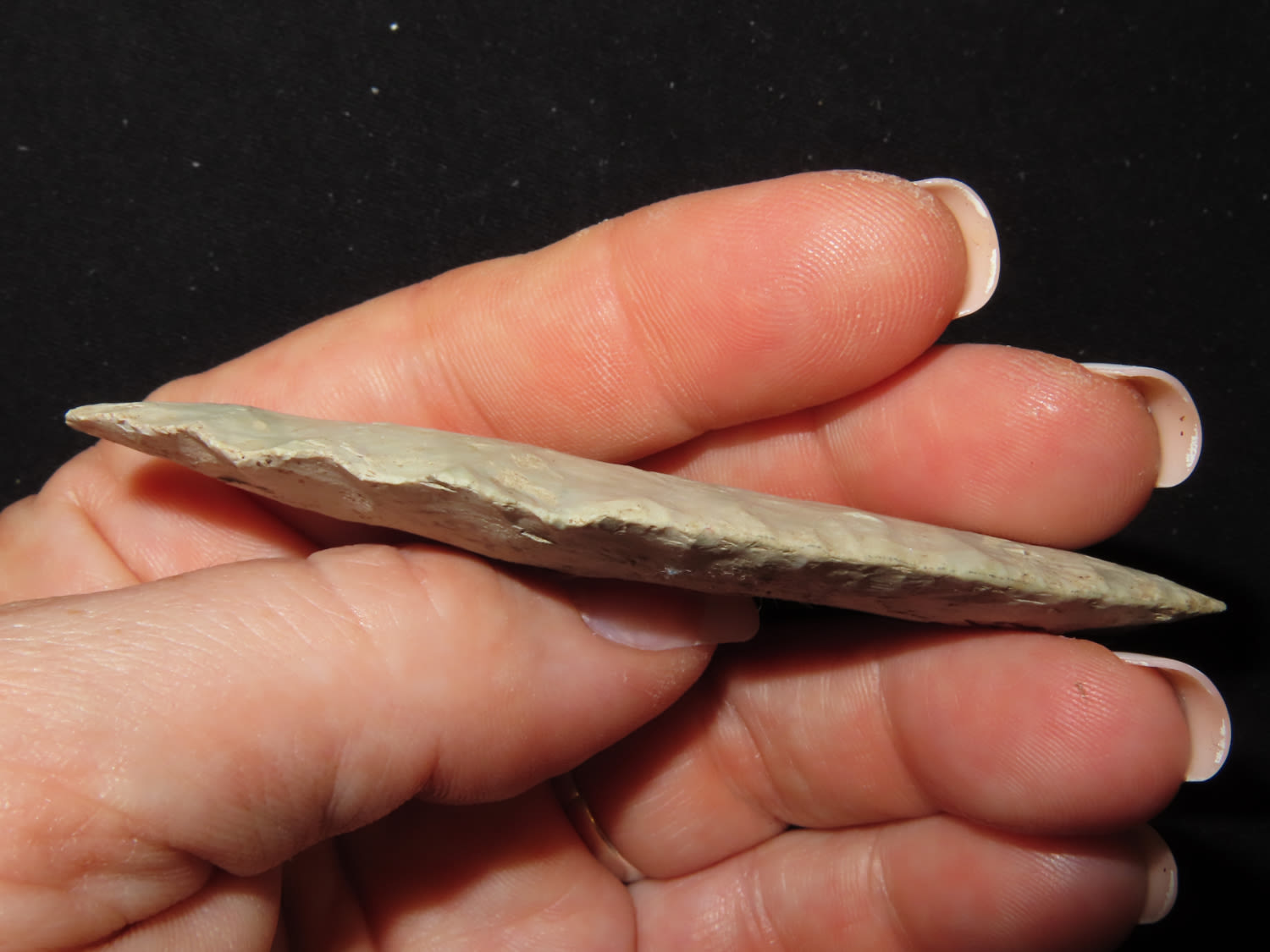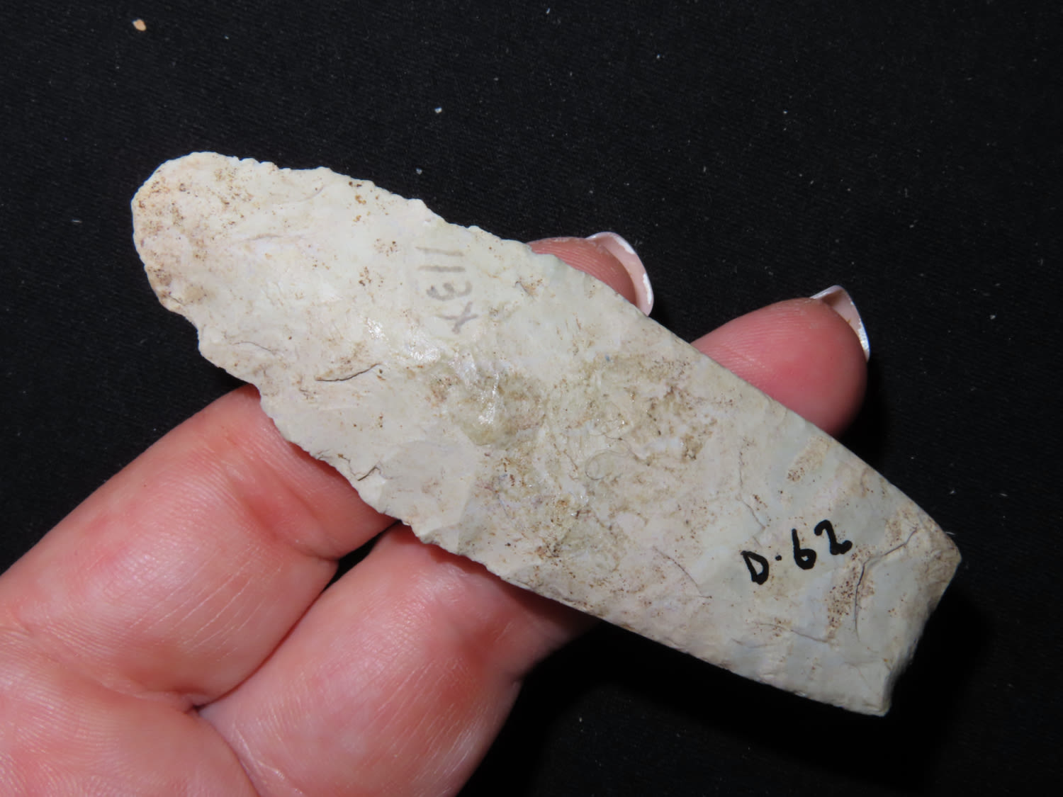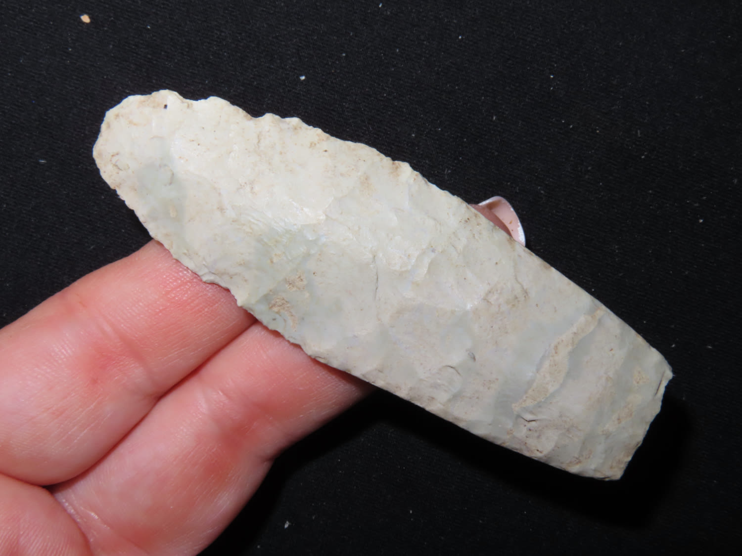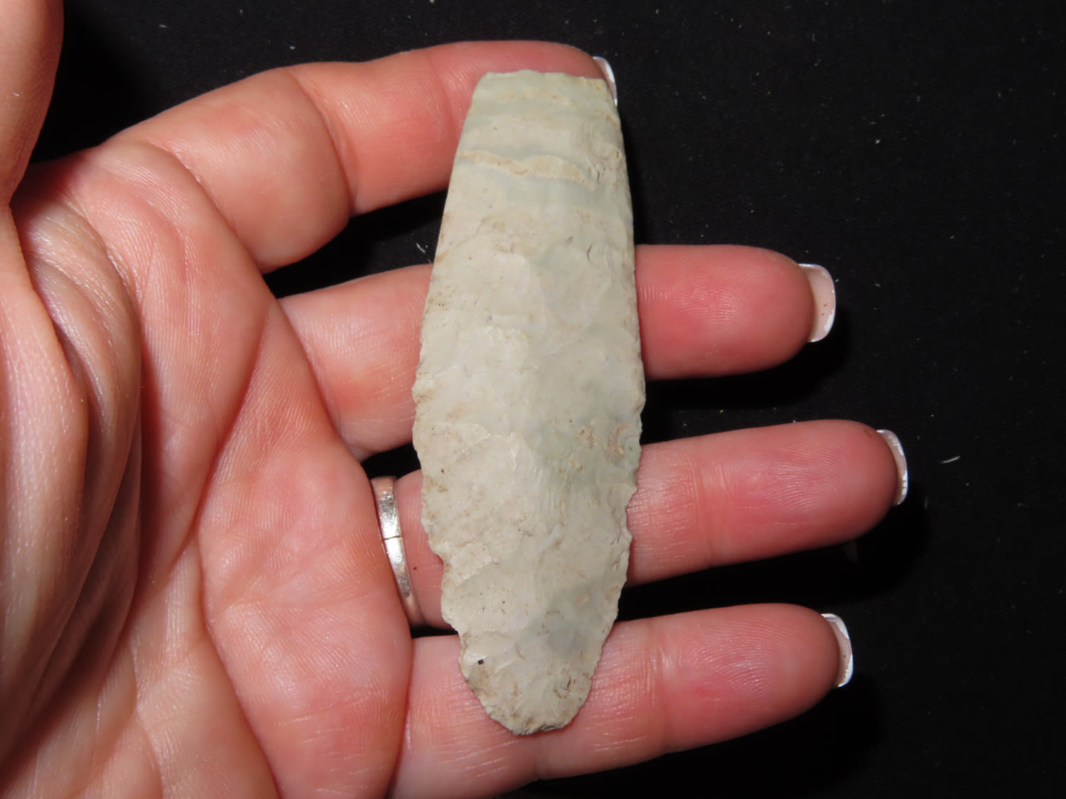 3 3/16″ Agate Basin. Made out of colorful green and tan chert. Found in Wisconsin