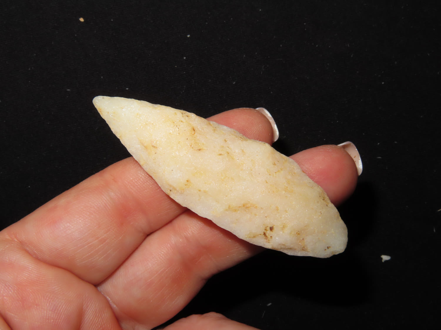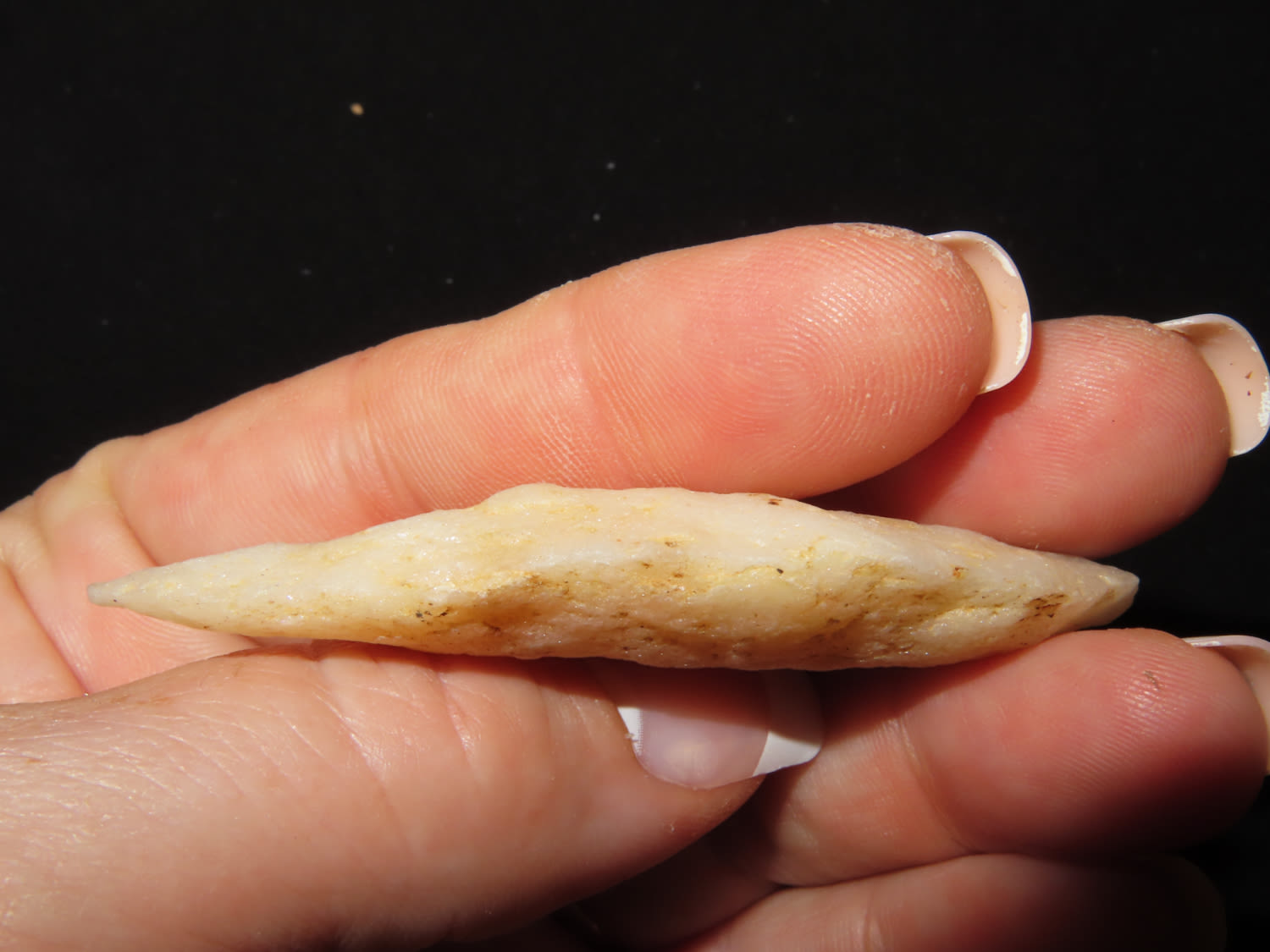 2 5/8″ Guilford. Made of quartz. Found in Wisconsin