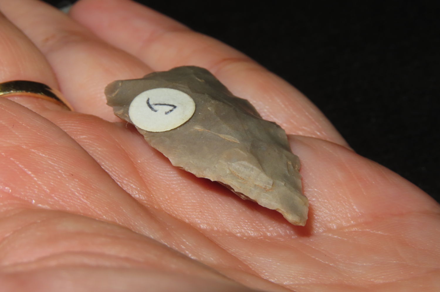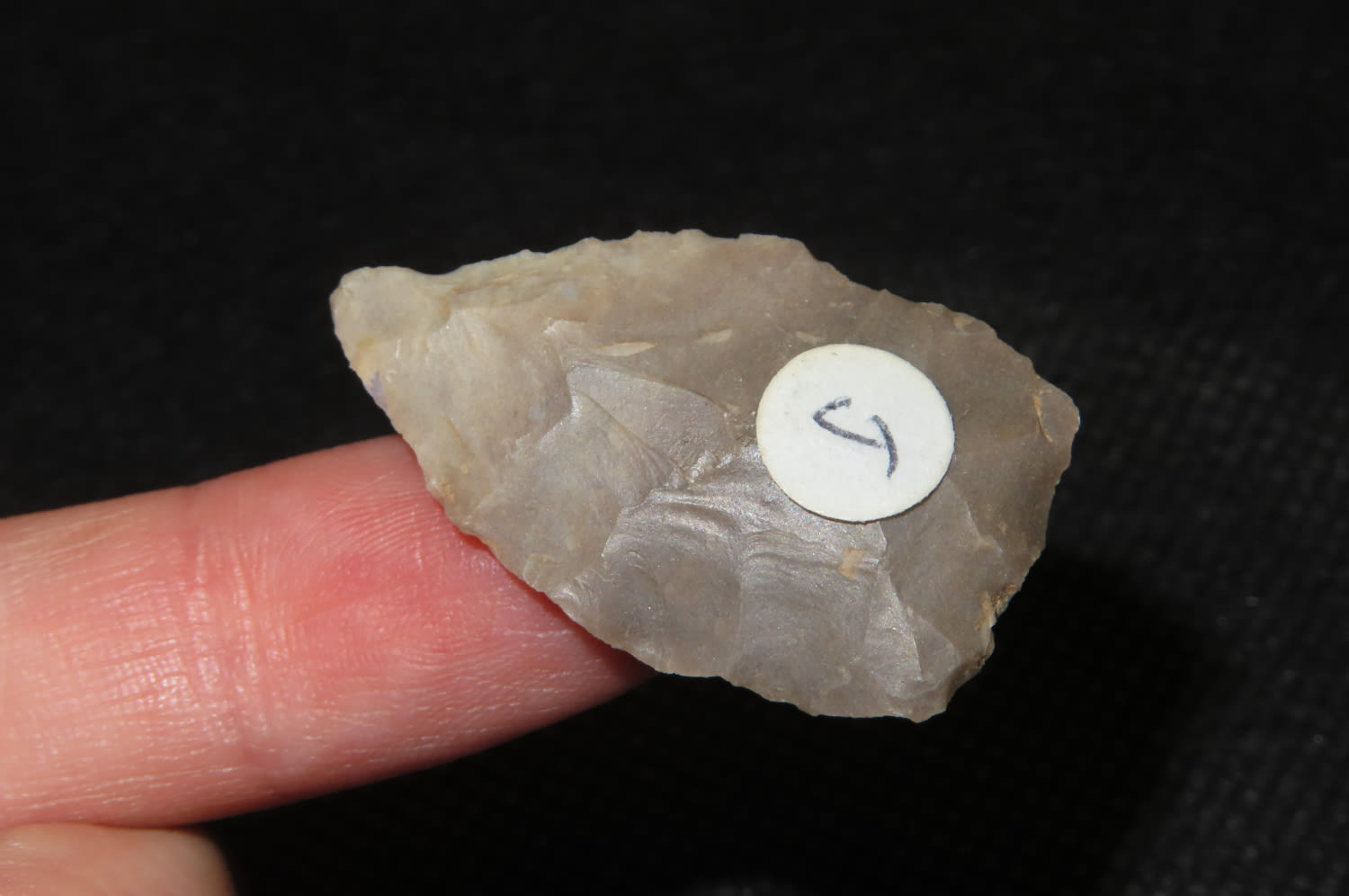 1 1/4″ Arrowhead found in Johnson Co. Illinois Ex. Lloyd Bollmann Collection