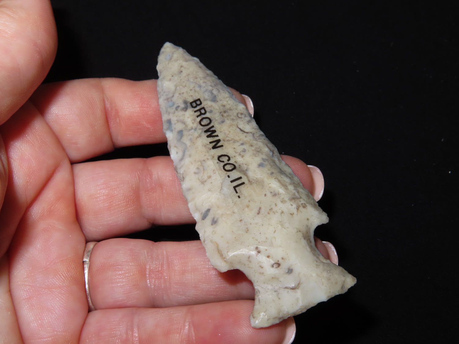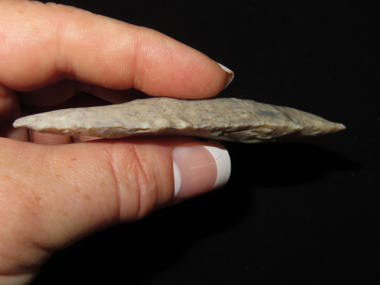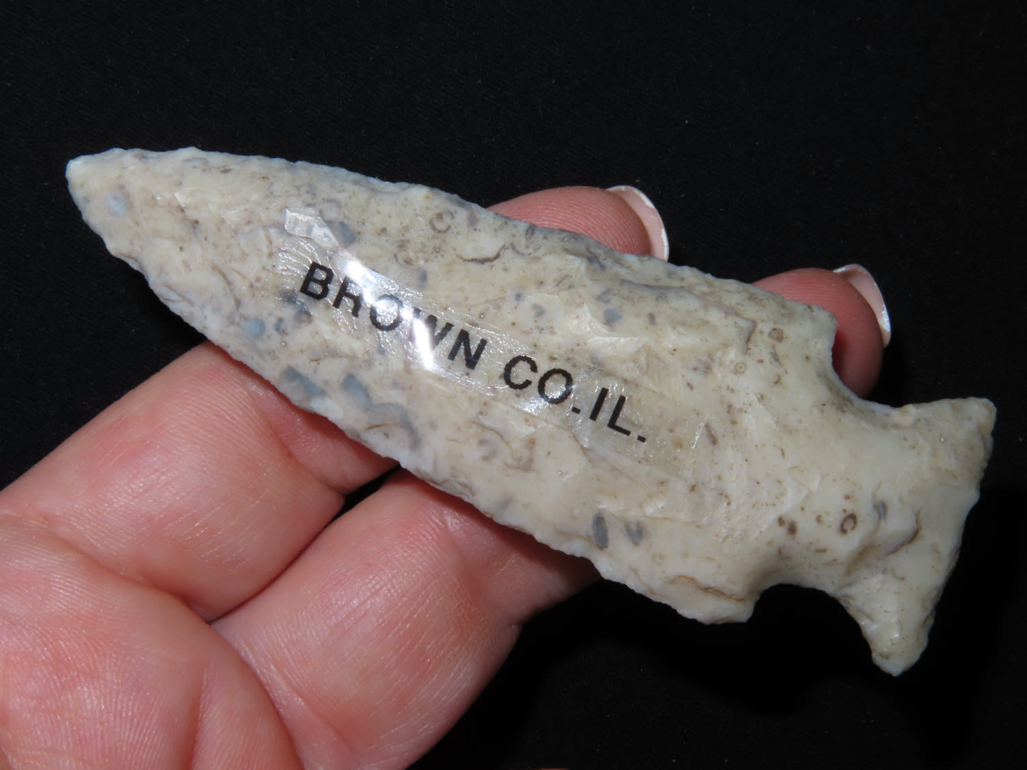 3 7/16″ Affinis Snyders. Location: Brown CO., Illinois. Made from Grey Burlington. EX collection of John Hannant
