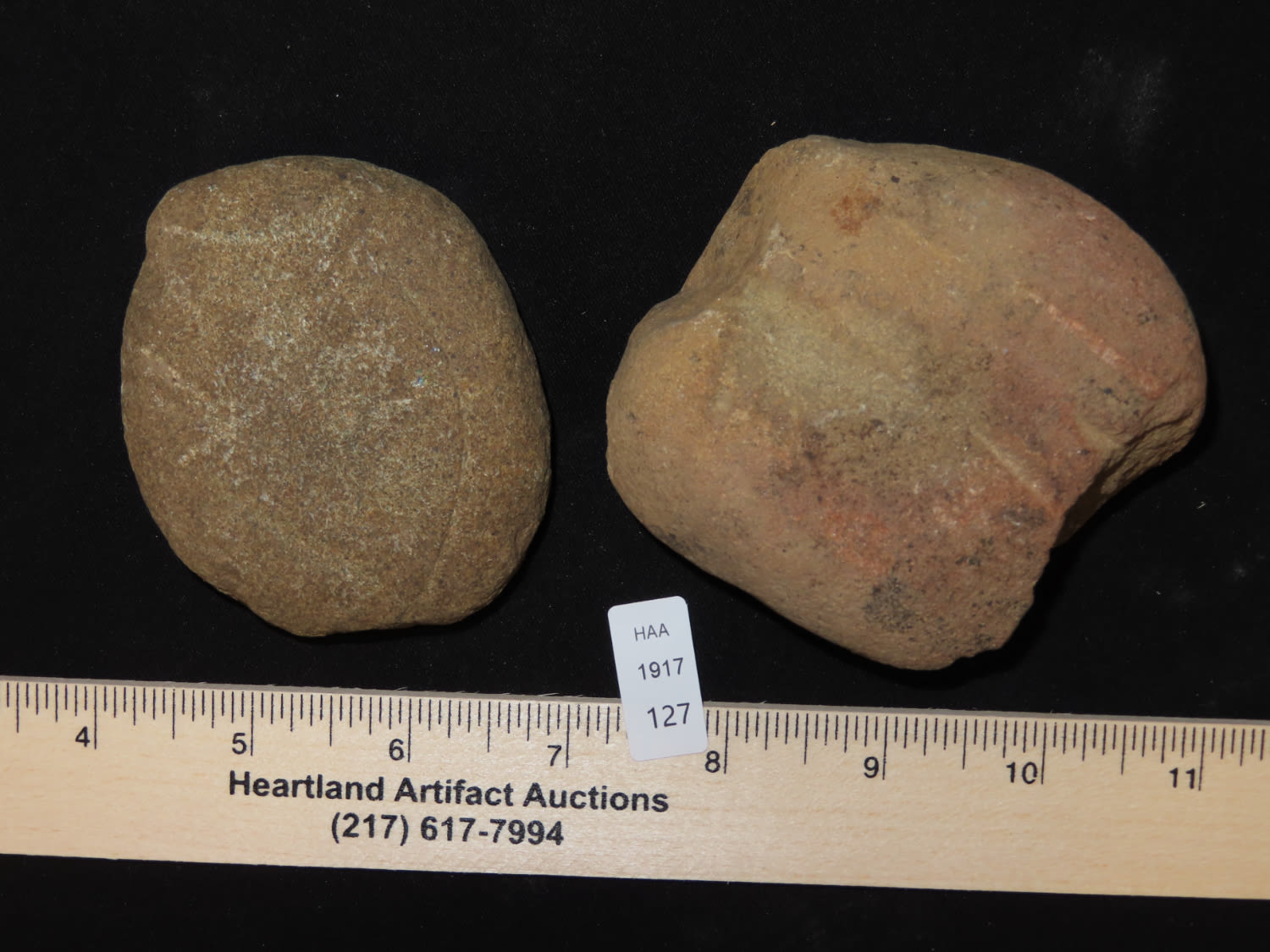 Two (2) Double Sided Nutting Stones. Brown CO., Illinois EX collection of John Hannant