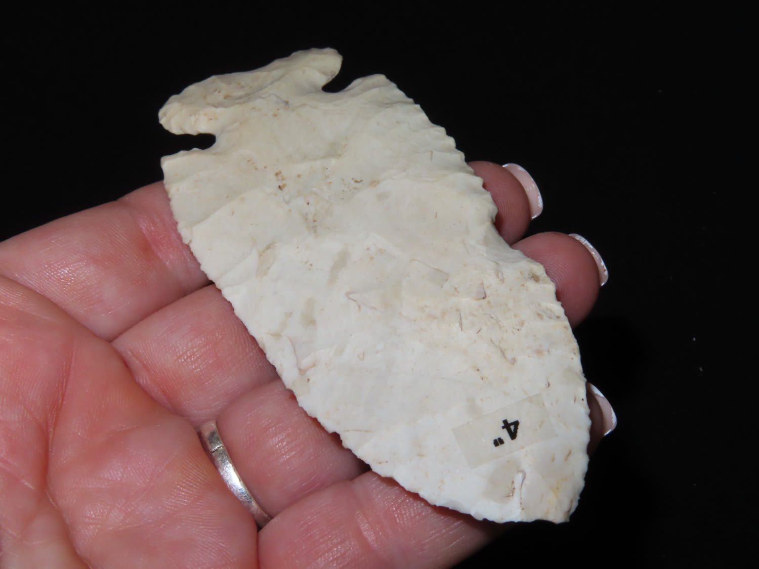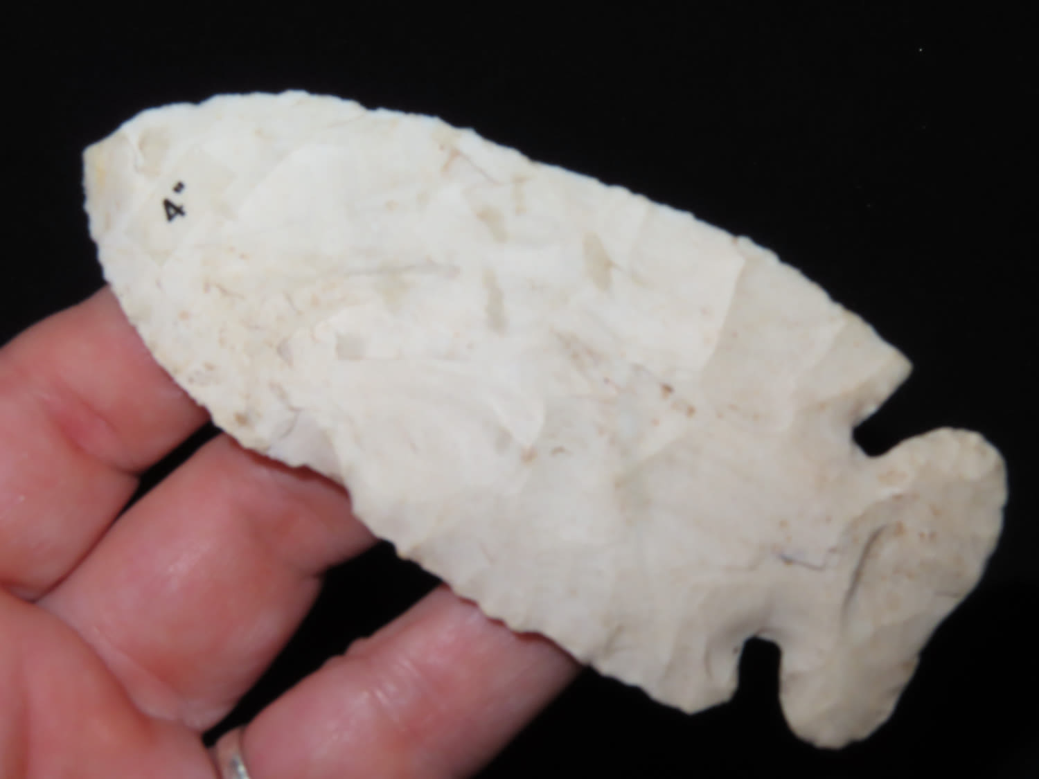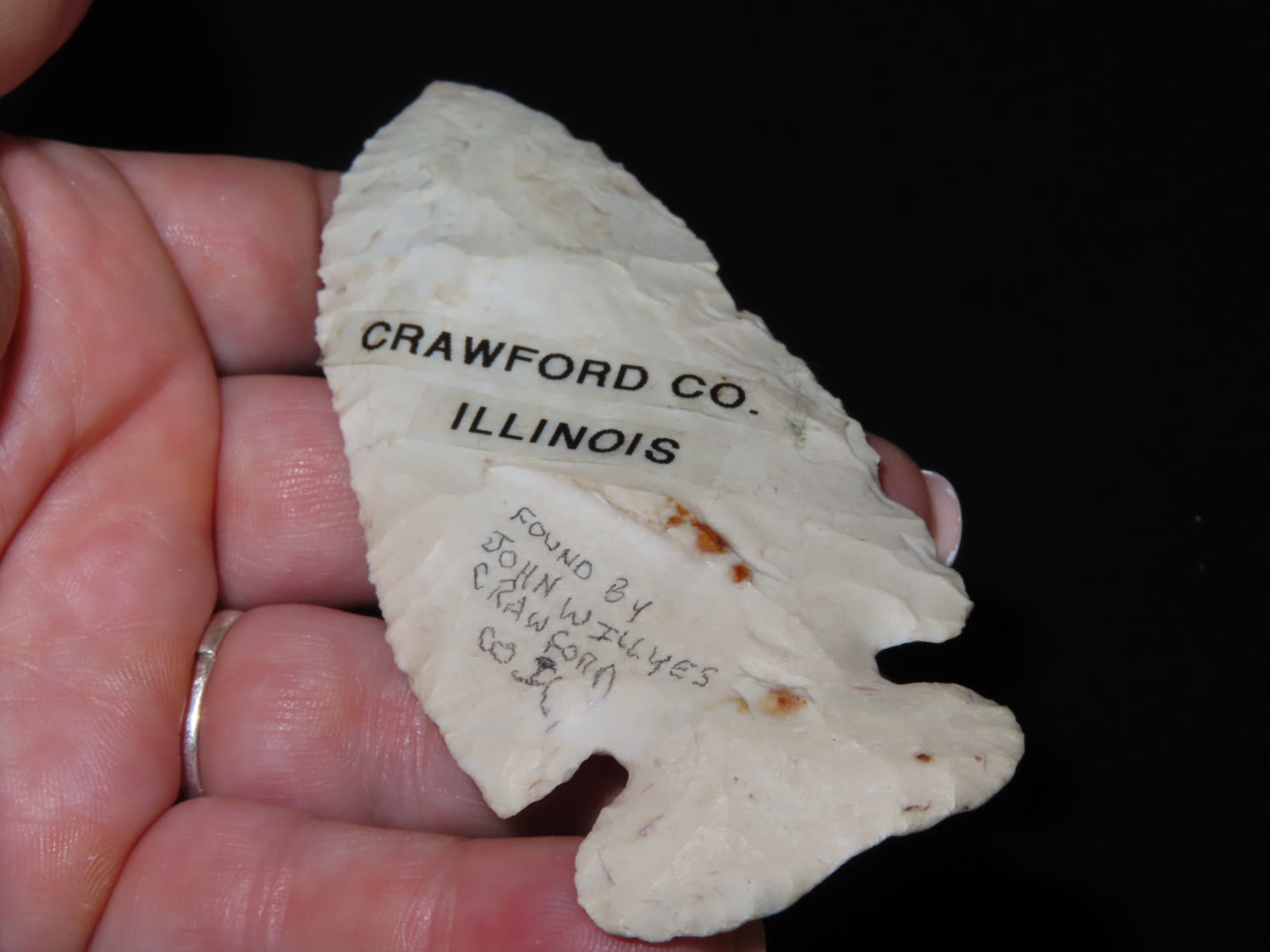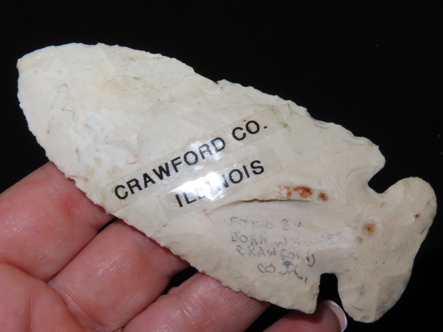 4″ Thebes. From Crawford CO., Illinois. Made from Burlington Chert. Found by John Willyes on his farm.