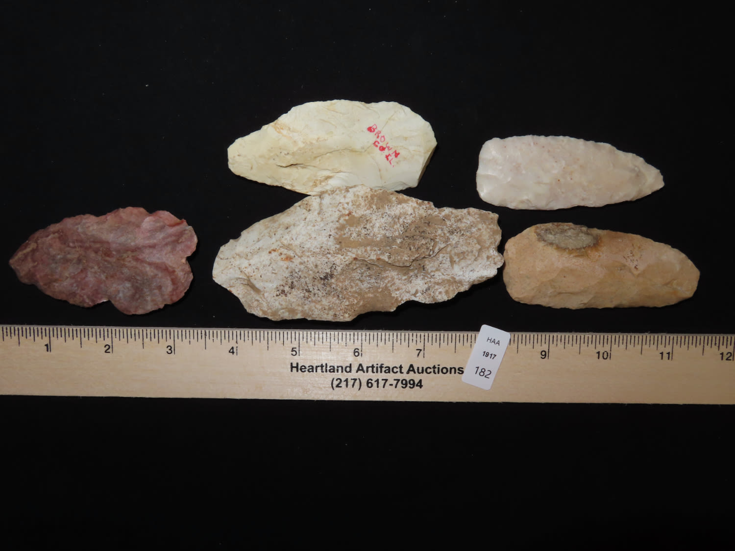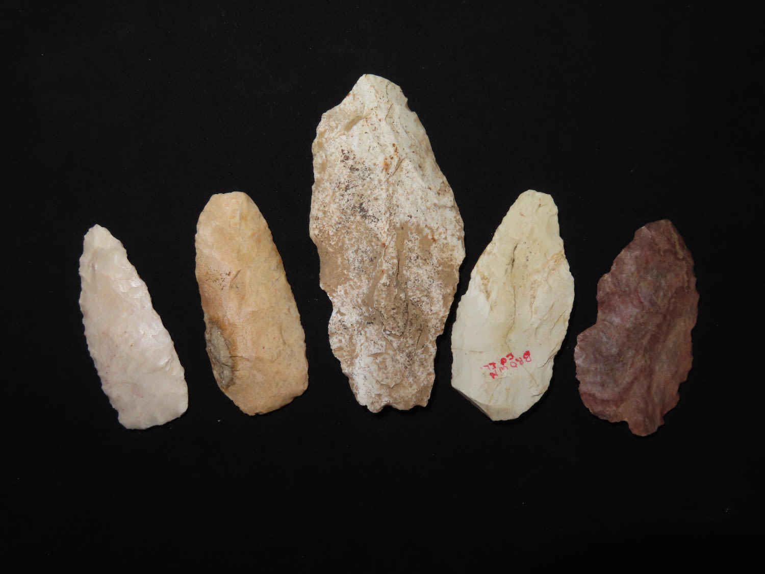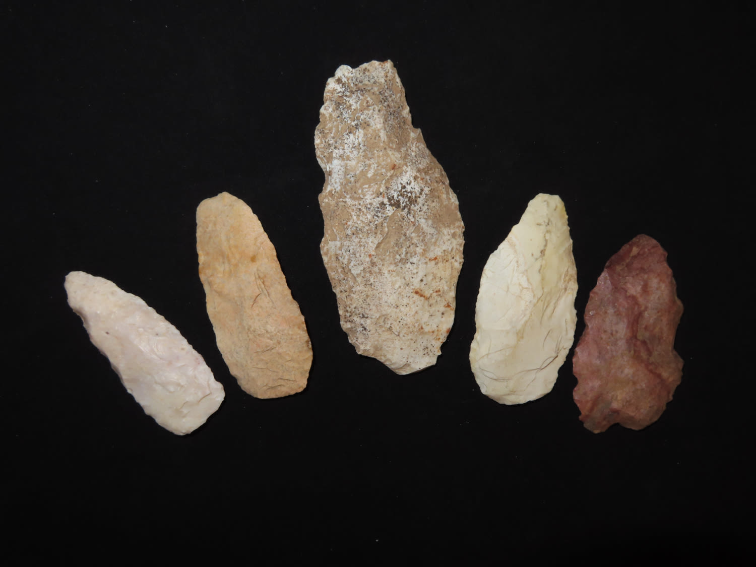 (5) Five Archaic and woodland knives. Brown CO., Illinois EX collection of John Hannant