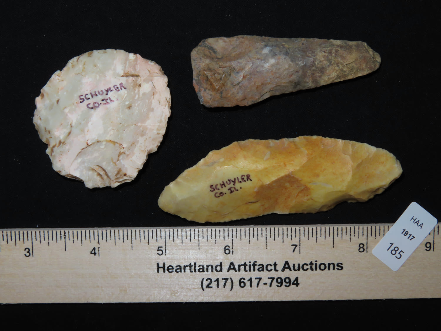 (3) Three Archaic / Woodland Knives. Schuyler CO., Illinois. Ex collection John Hannant