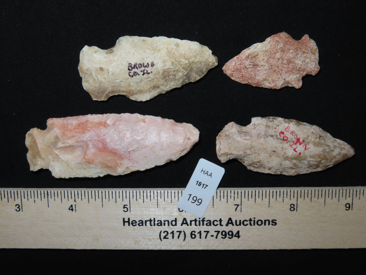 (4) Four McClear Helton Points. Brown CO., Illinois EX collection of John Hannant