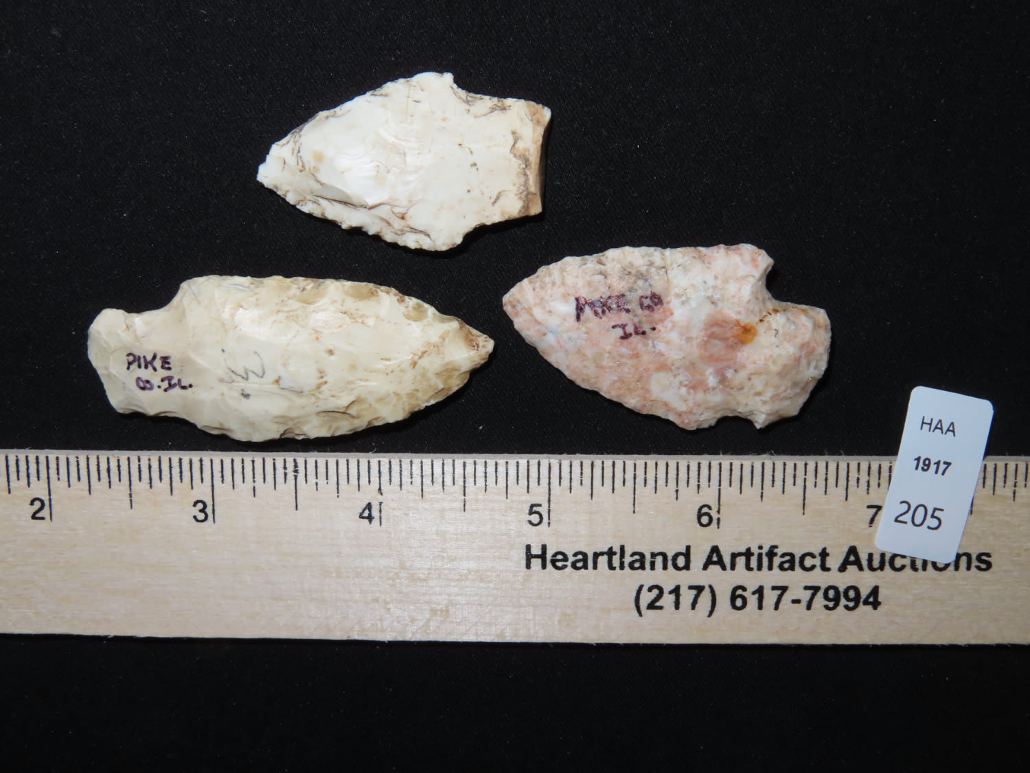 (3) Three Stemmed Dart Points. Pike CO., Illinois. EX collection John Hannant