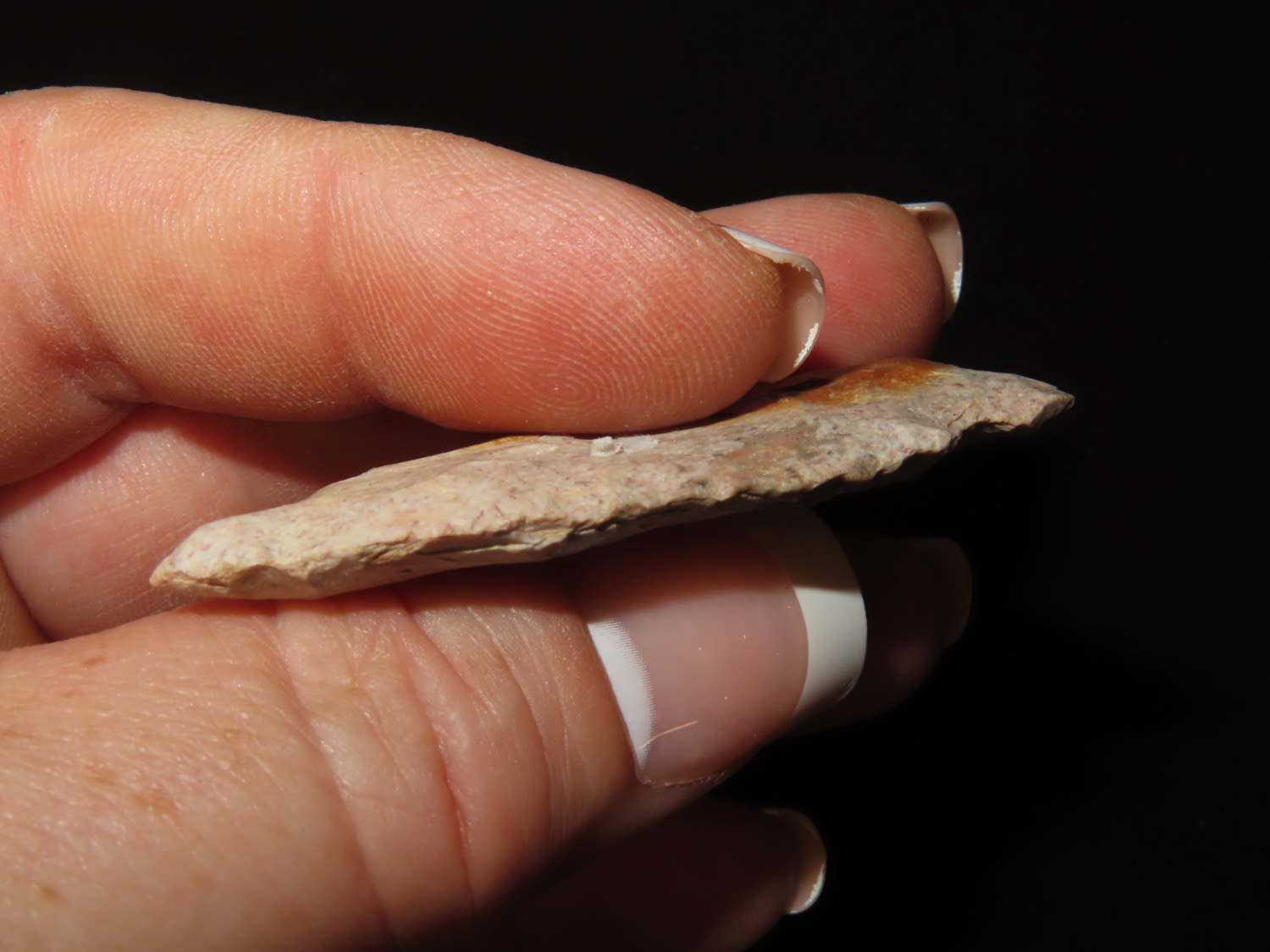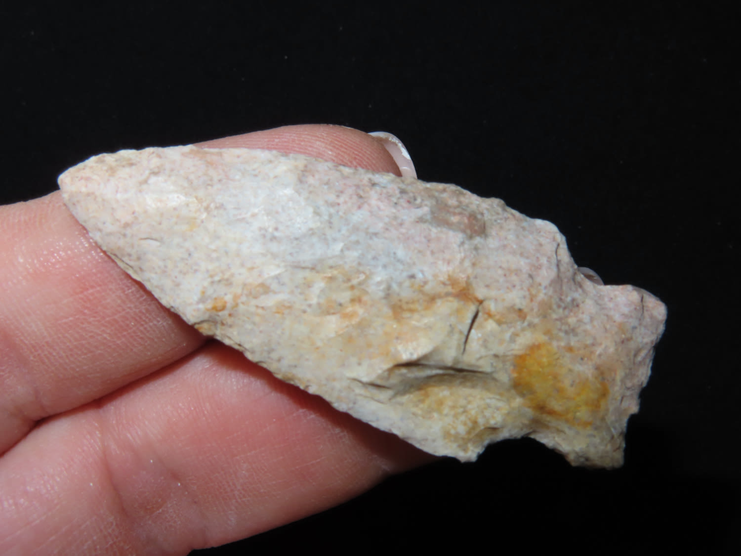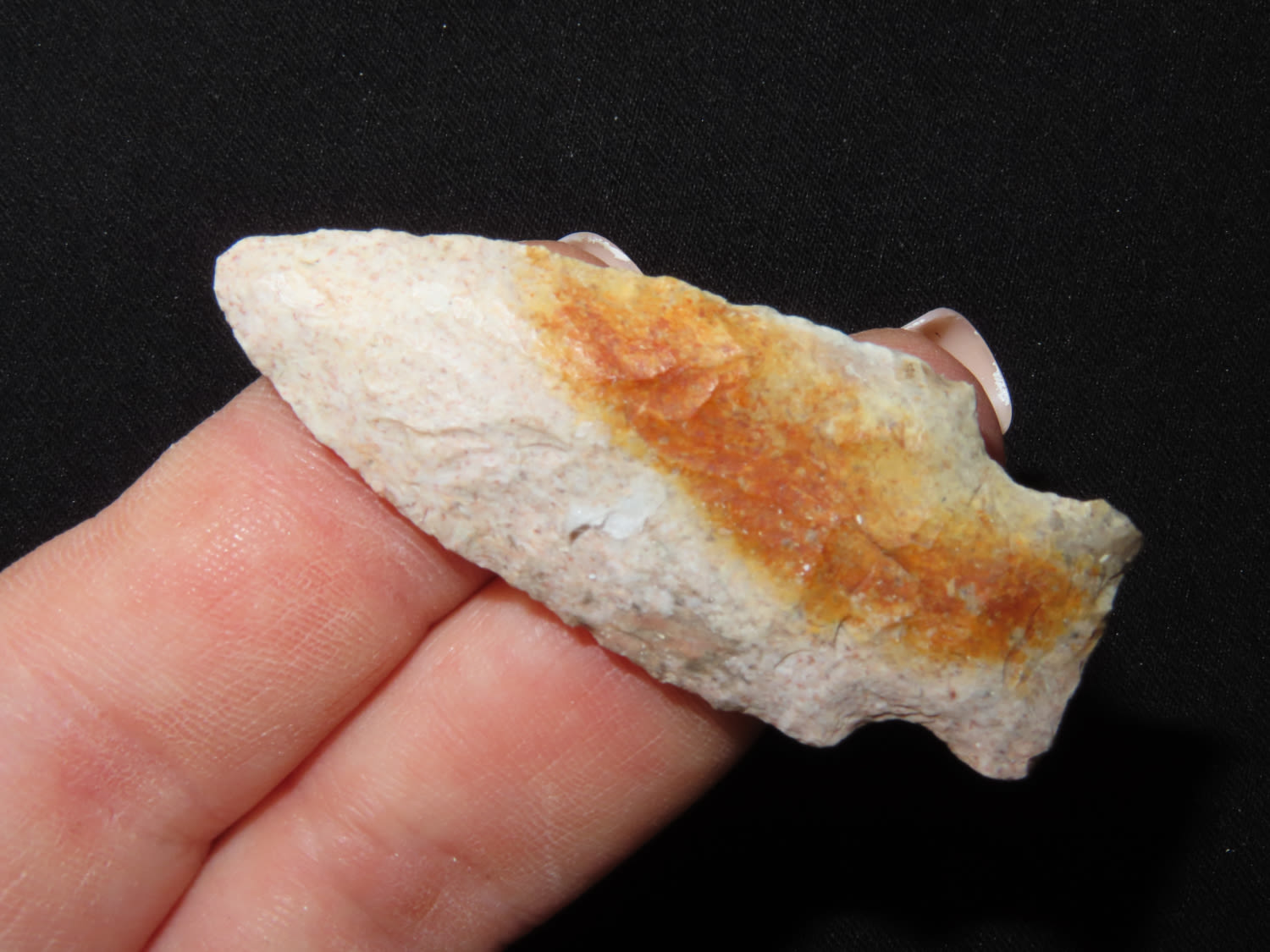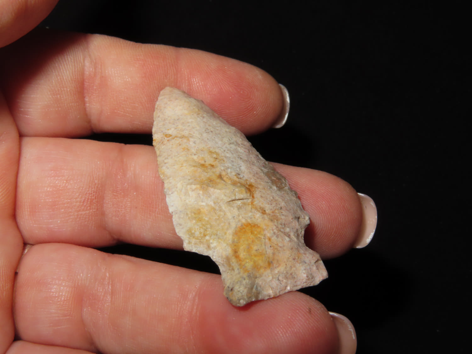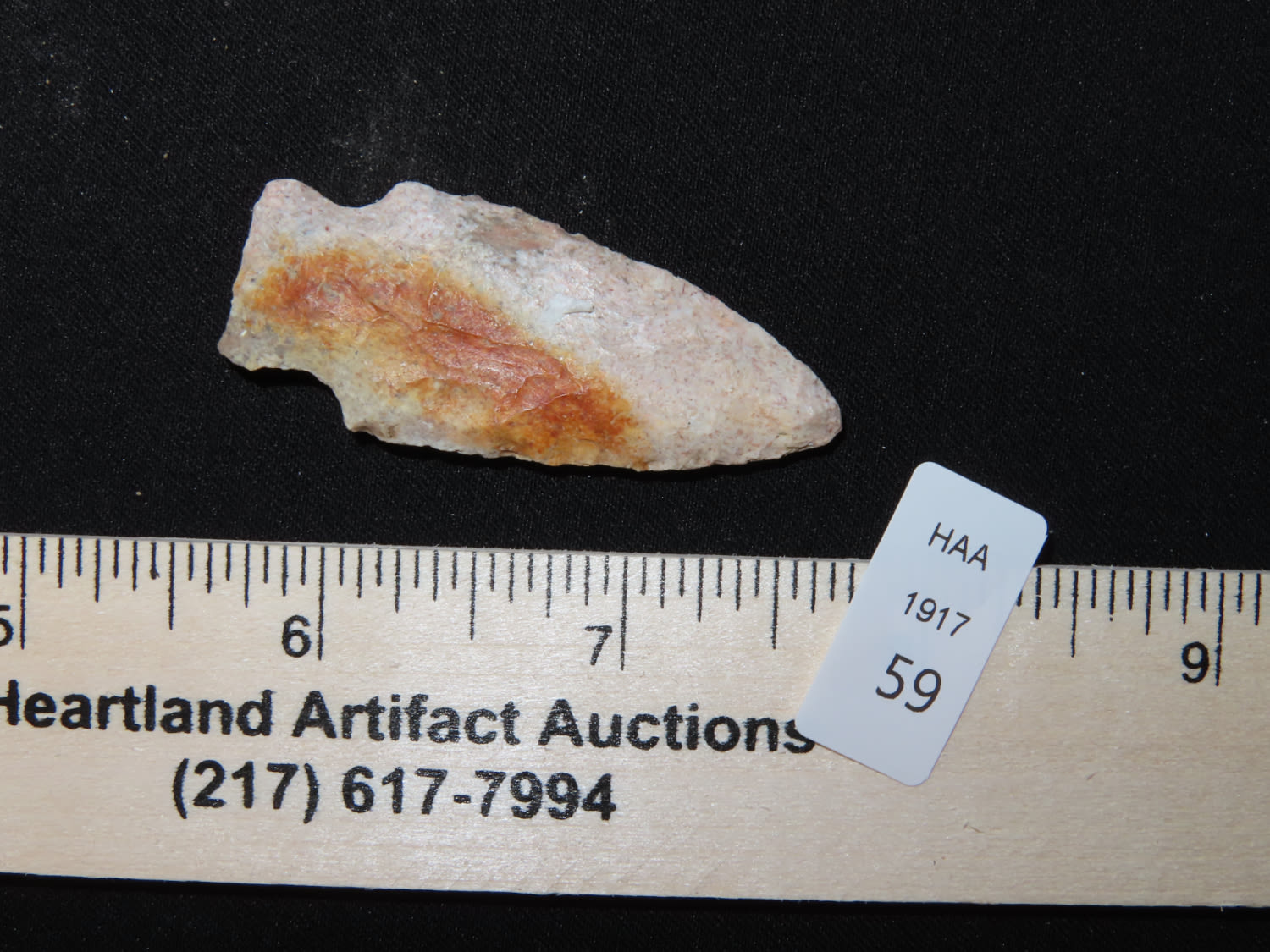 2 1/16″ Archaic Dart Point. Brown CO., Illinois. EX collection of John Hannant