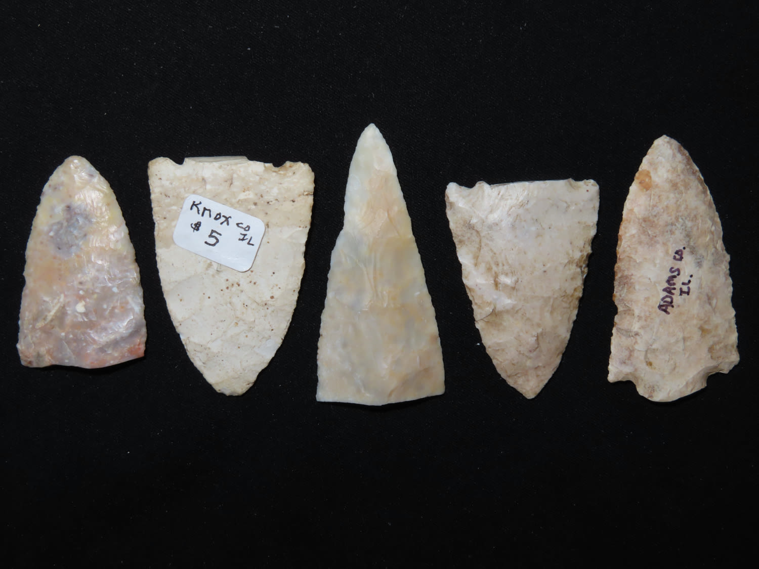 Grouping of five snap Base Study Pieces. Brown / Knox CO., Illinois. EX collection of John Hannant