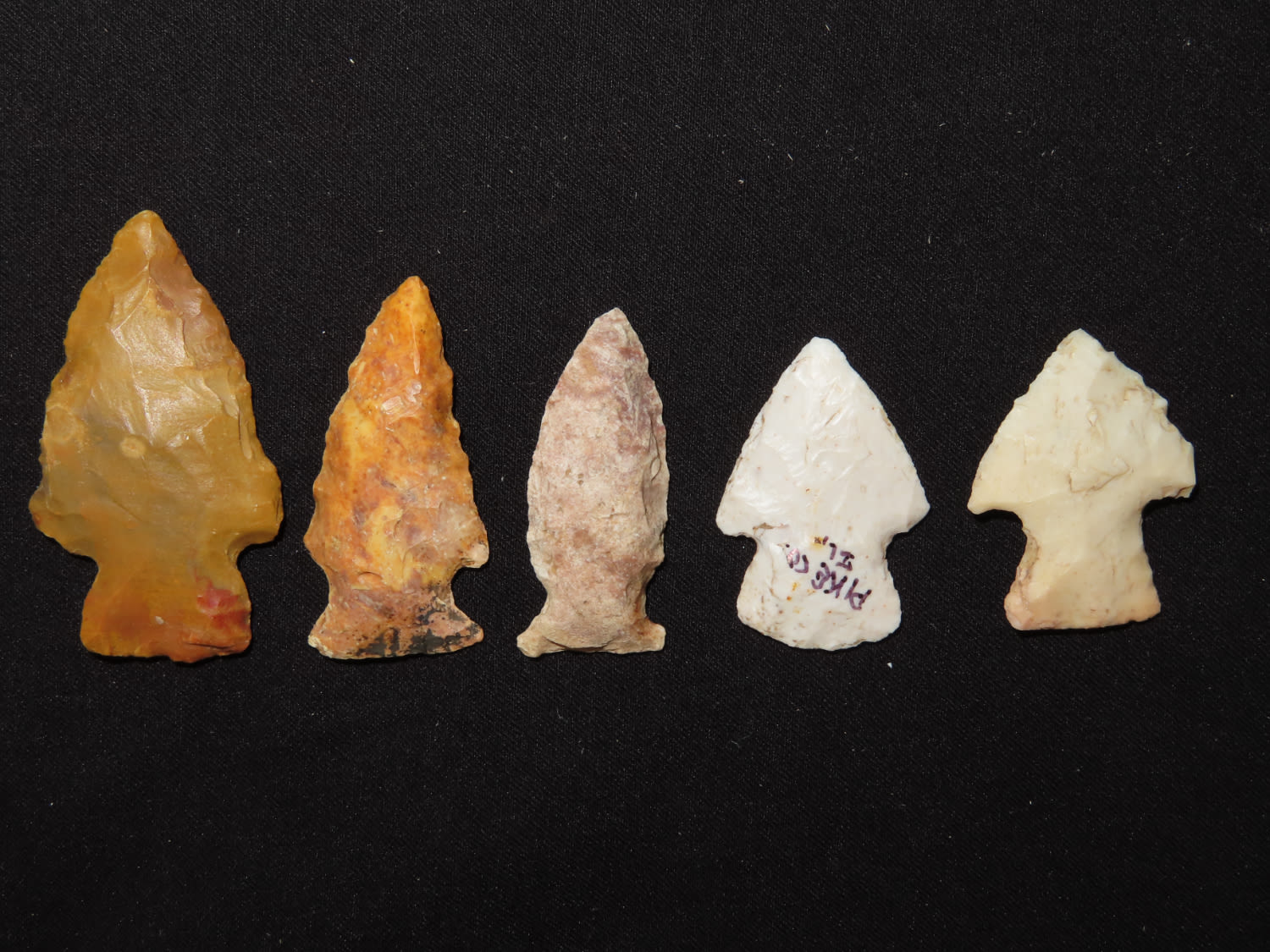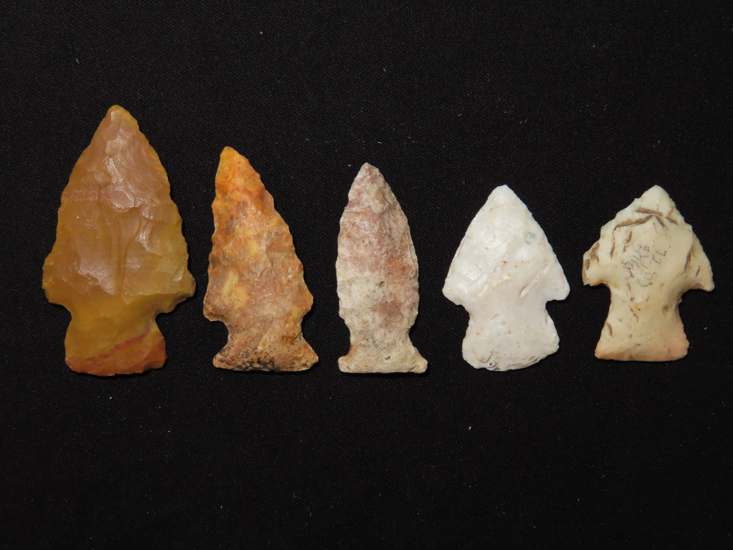 Grouping of five dart points. Brown CO., Illinois. EX collection of John Hannant