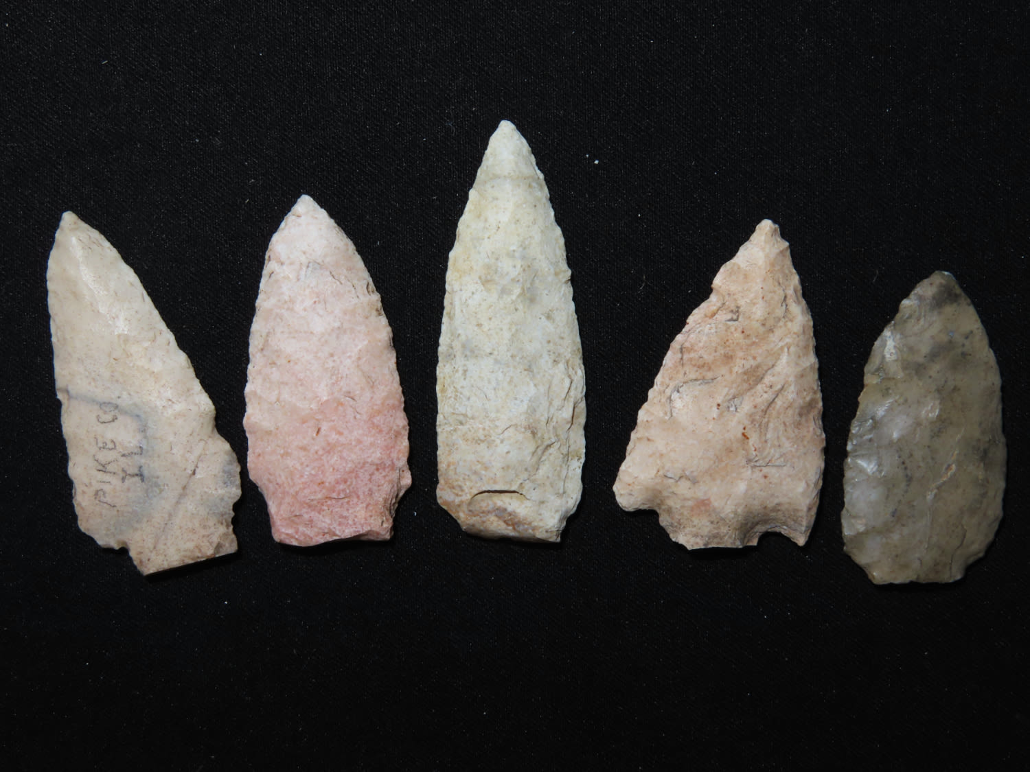 Grouping of five snap base study points. Brown, Pike CO., Illinois. EX collection of John Hannant