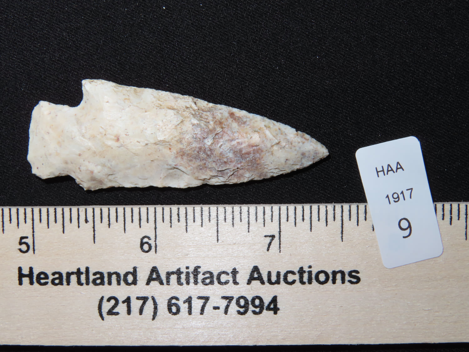 2 7/16″ Table Rock. Found in Brown CO., Illinois. Made from Burlington Chert. EX collection of John Hannant
