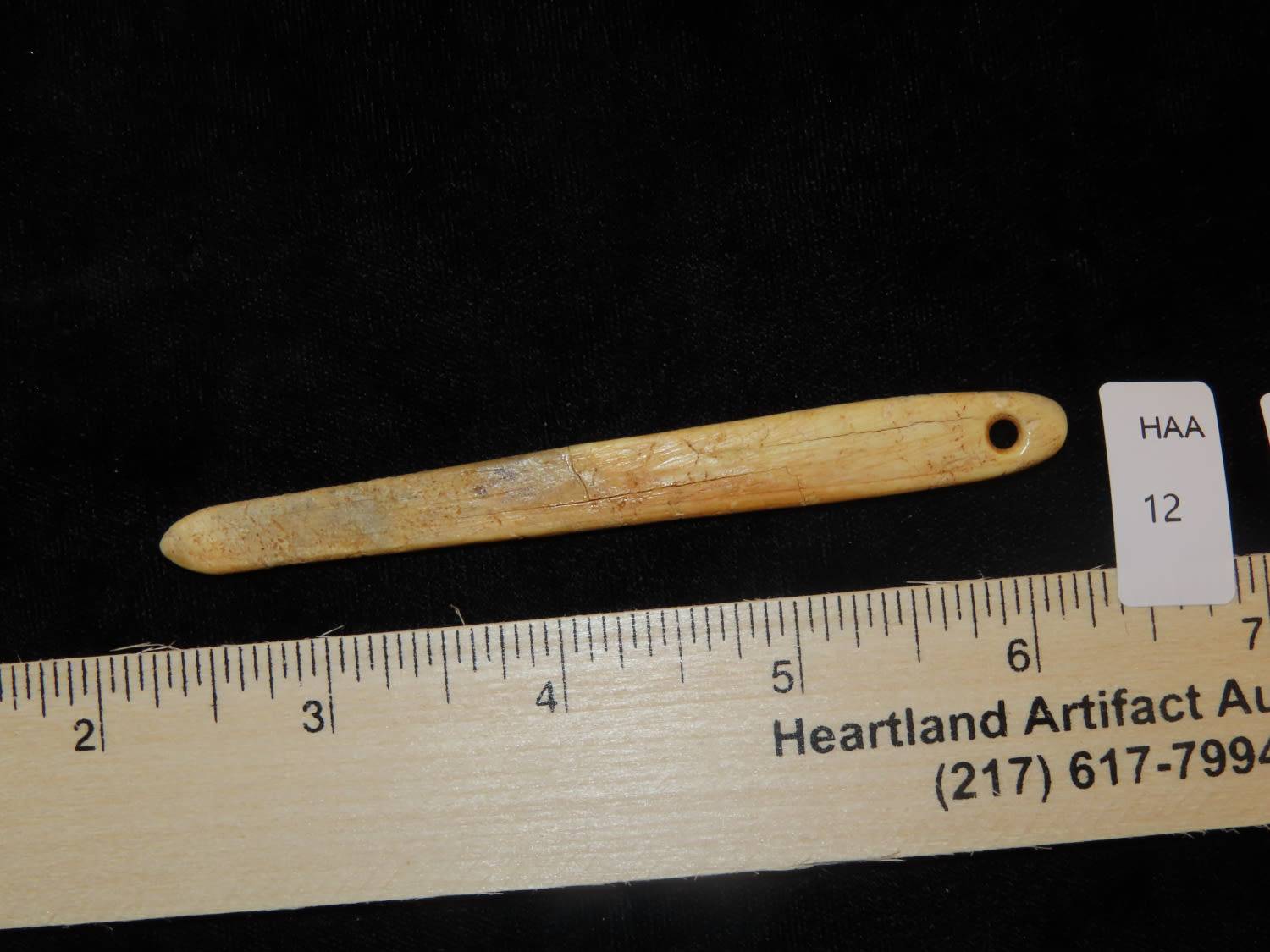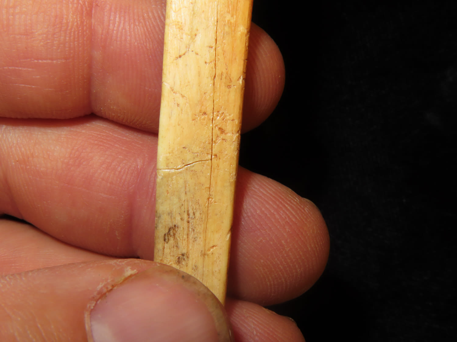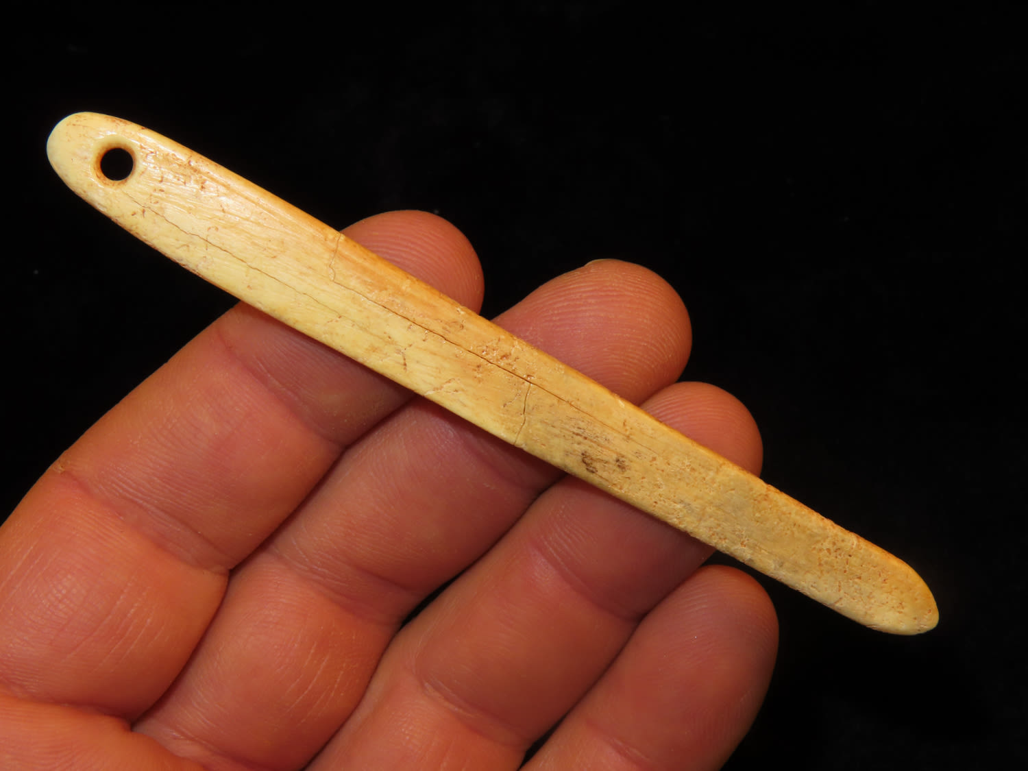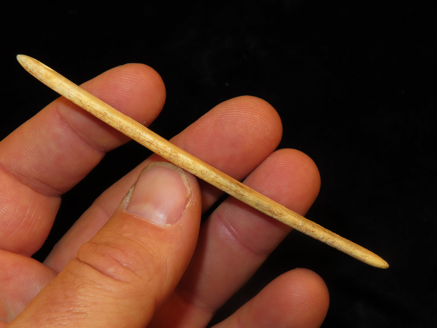 4″ Bone Needle, found by Jess Jordan in Oklahoma, broken and glued at midsection