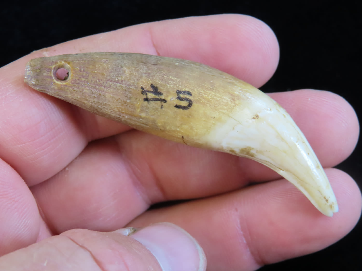 2 5/8" Drilled Black Bear Canine Tooth Pendant found in Indiana