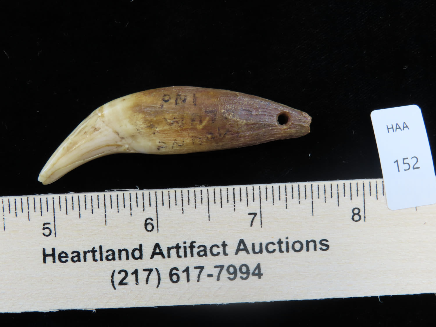 2 5/8″ Drilled Black Bear Canine Tooth Pendant found in Indiana