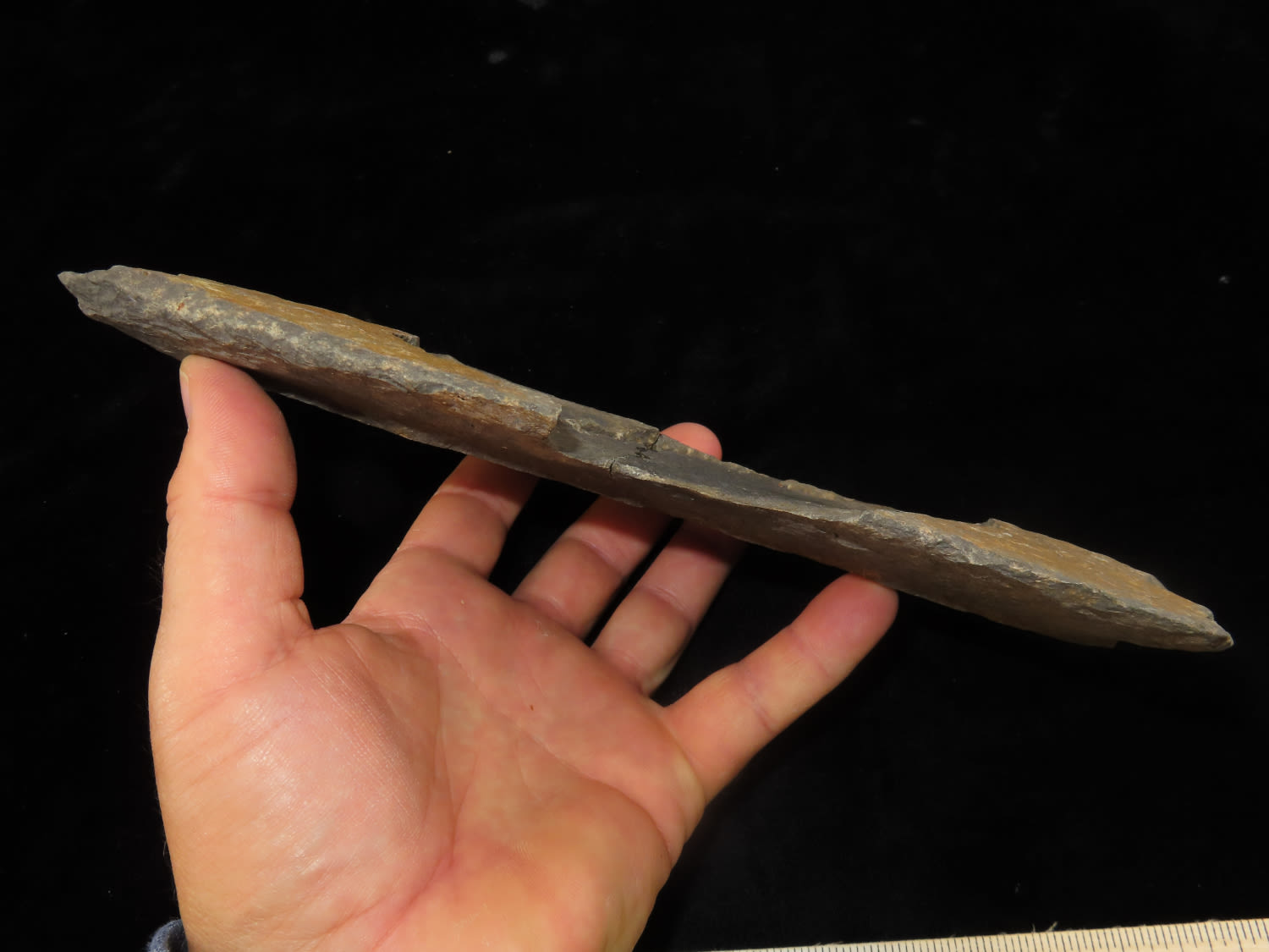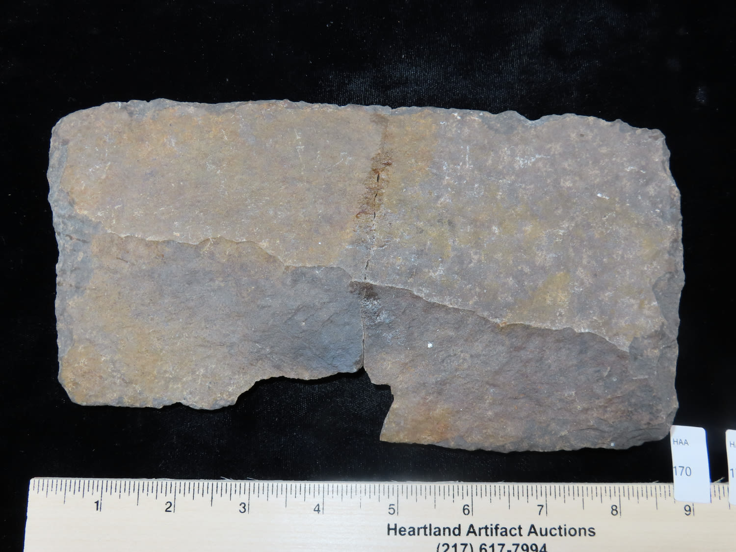 8 1/2″ Flaked Stone, broken and glued, Anastazi, Found in New Mexico.