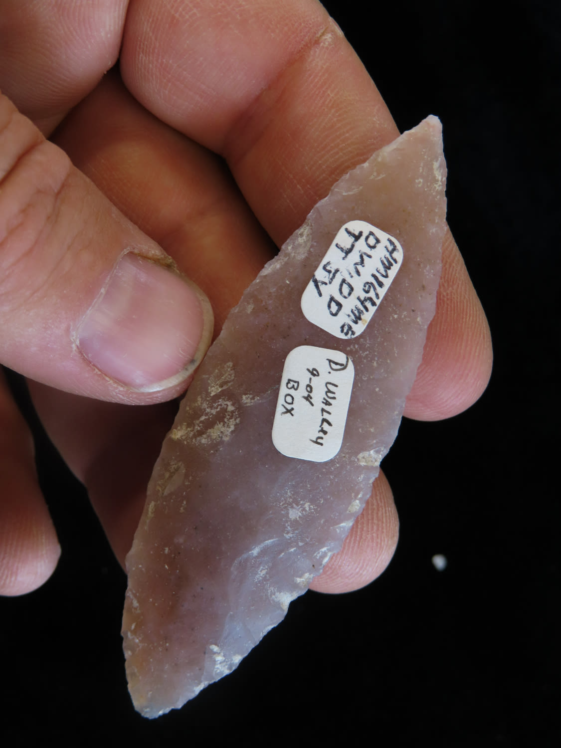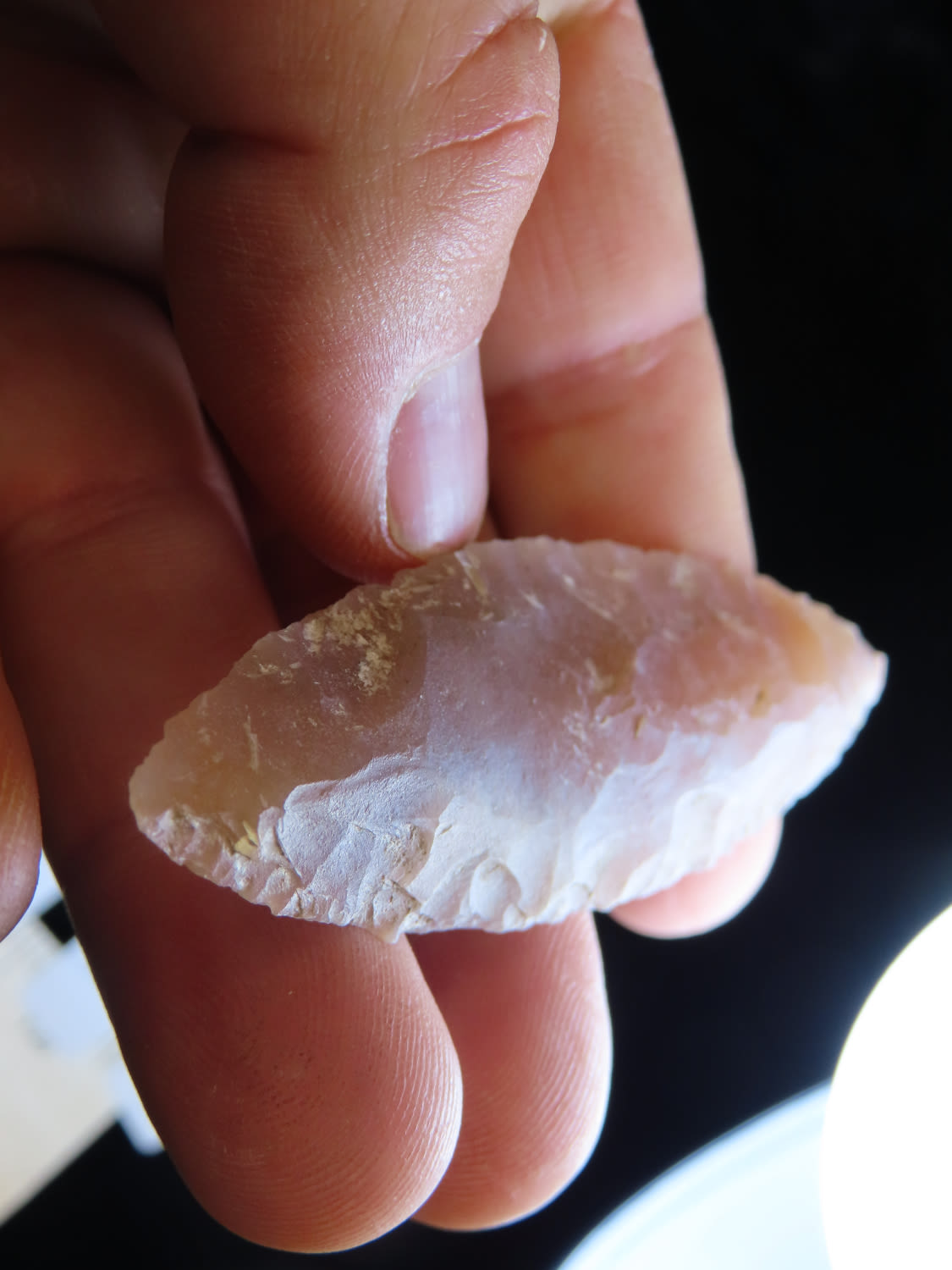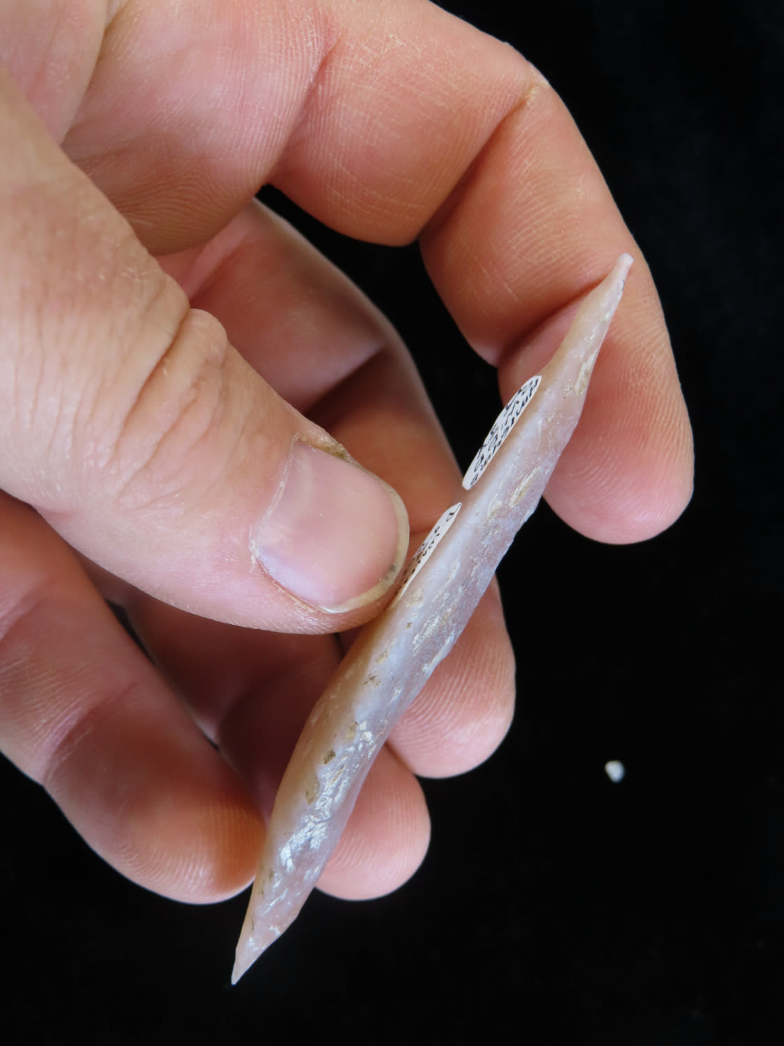 3 1/8″ Bi-hyphen Point Eccentric Flint Effigy, semi trranslucent chert, Mayan found in Belize EX. Herb Mangold / Tim Terwelp collection