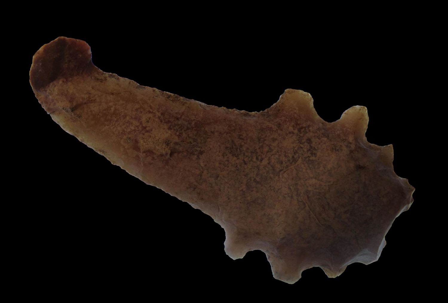 4 1/8″ Scporpion Eccentric Flint Effigy, semi trranslucent chert, Mayan found in Belize EX. Herb Mangold / Tim Terwelp collection