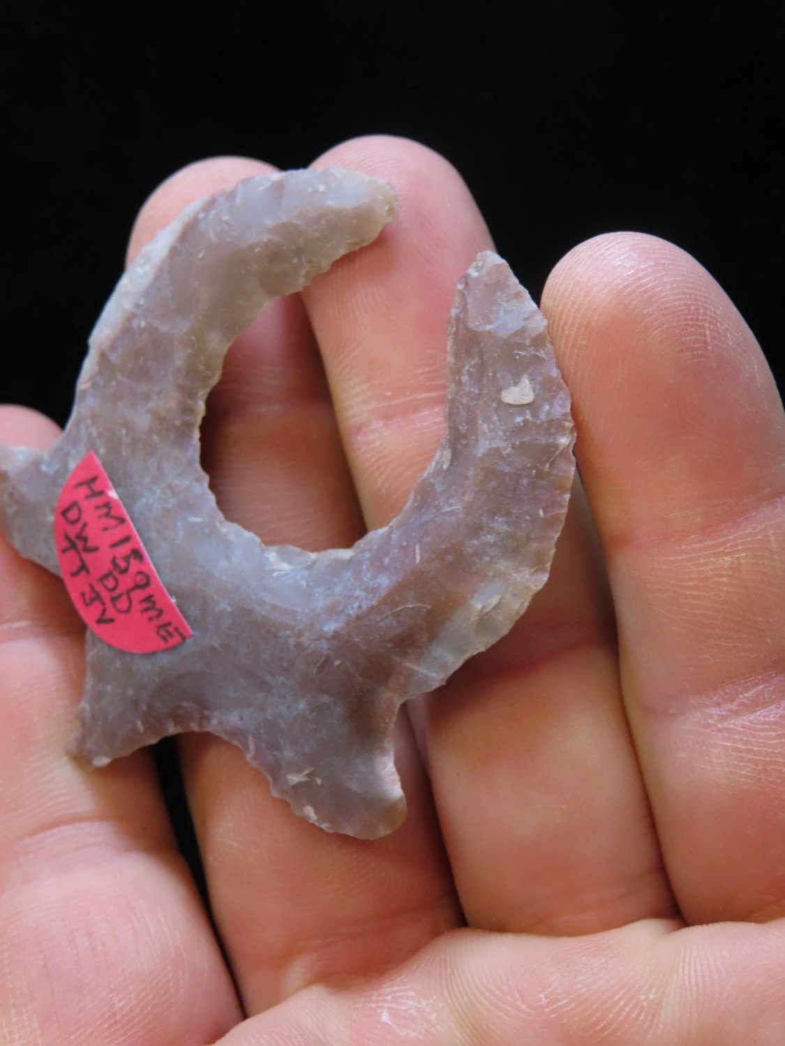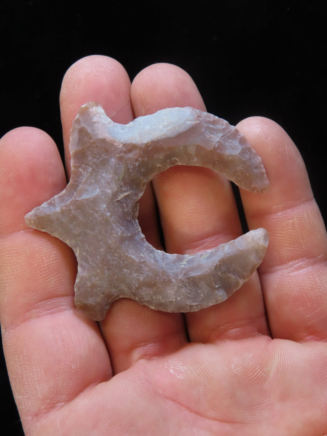 2 1/4″ Eccentric Flint Effigy, semi trranslucent chert, Mayan found in Belize EX. Herb Mangold / Tim Terwelp collection