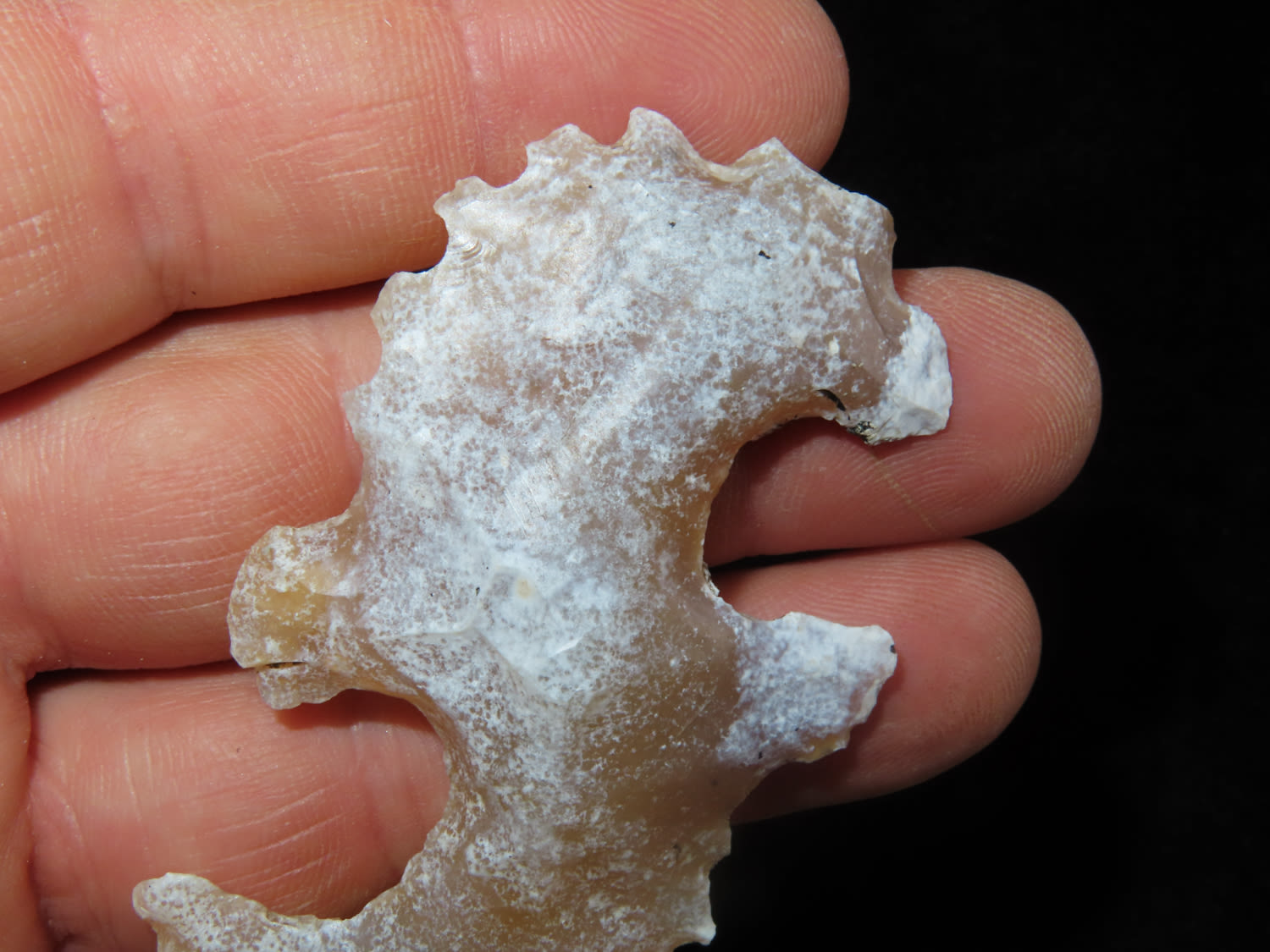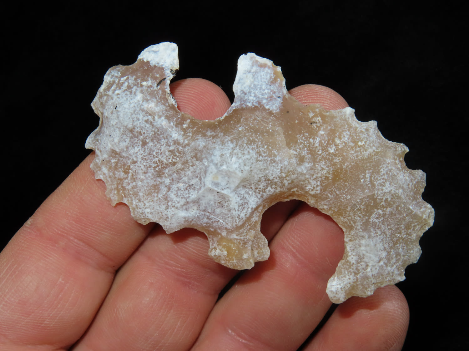 2 3/4" Heavily Serrated Eccentric Flint Effigy, semi trranslucent chert, Mayan found in Belize EX. Herb Mangold / Tim Terwelp collection