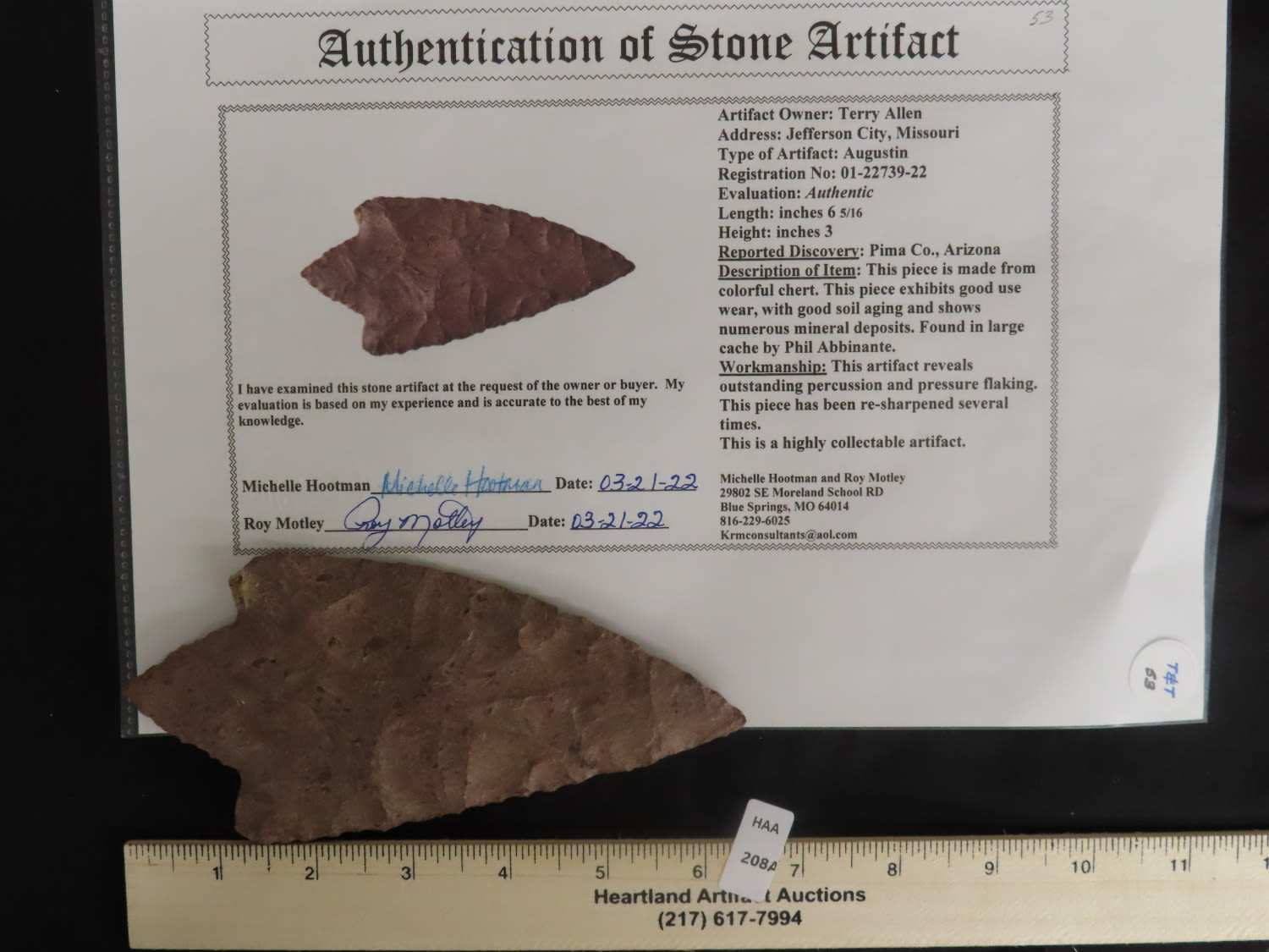 6 5/16″ Augustin Chert, Motley COA, Found in Pima Co., Arizona in large cache by Phil Abbinante