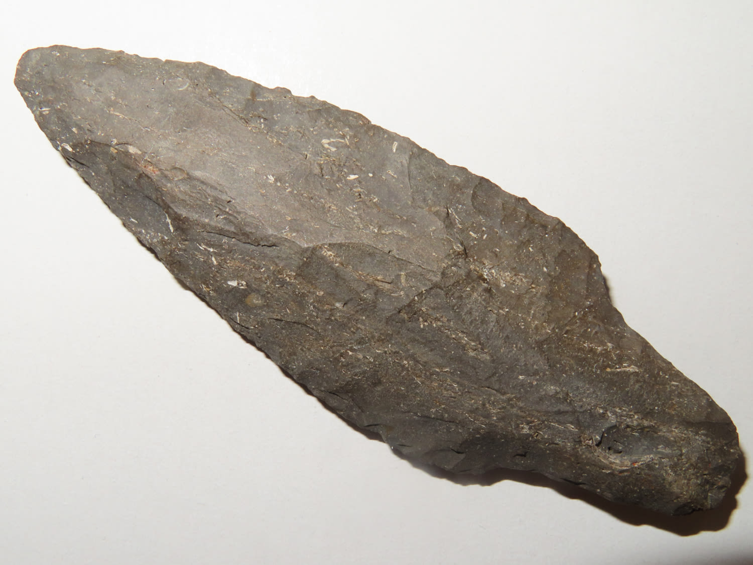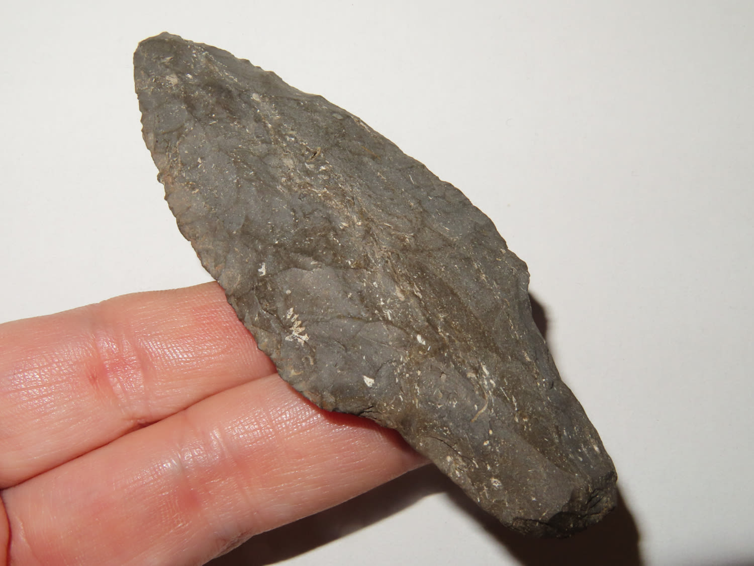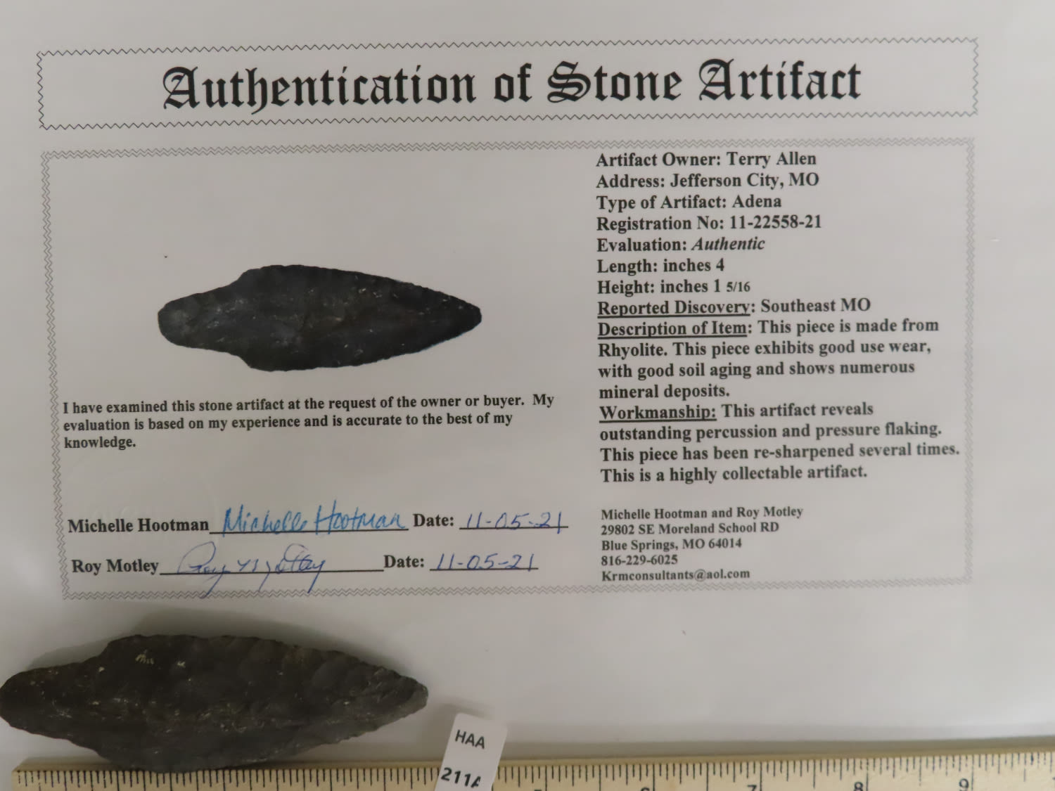 4″ Adena, Motley COA, Found in Southeast, MO; Made from Rhyolite and reveals outstanding percussion and pressure flaking.